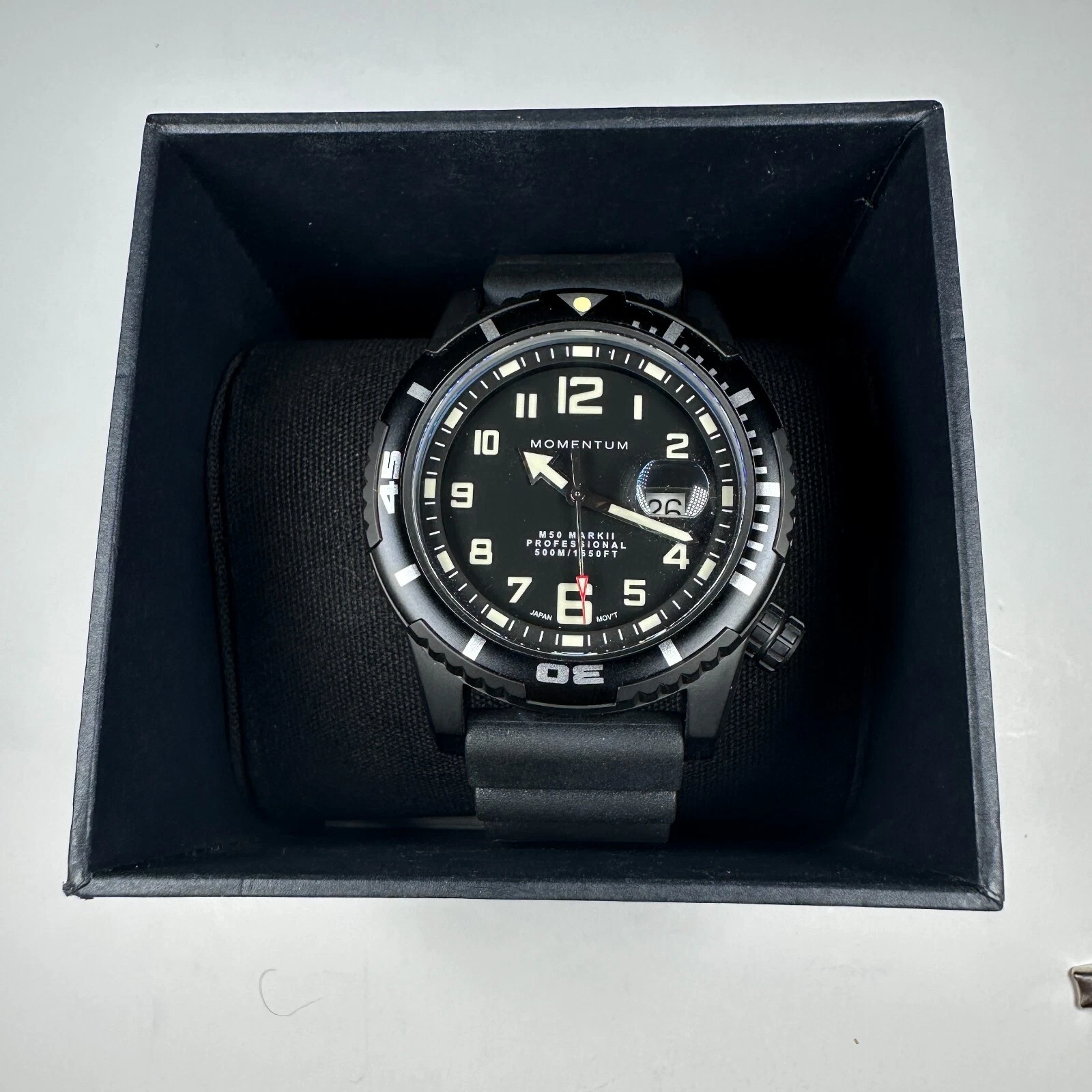 MOMENTUM M 50 MARK II DIVE WATCH LARGE BLACK DIAL W/BLACK RUBBER DIVE STRAP