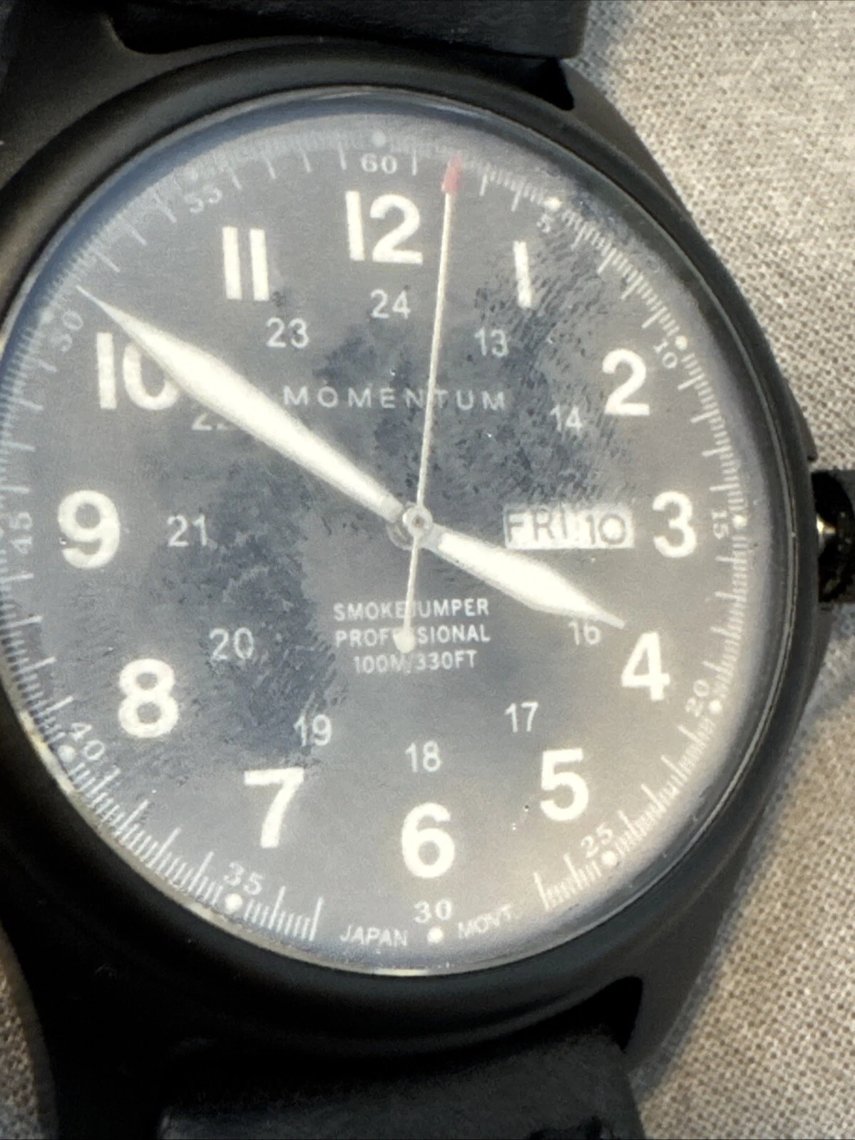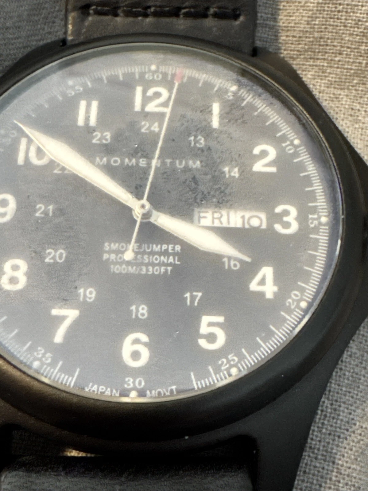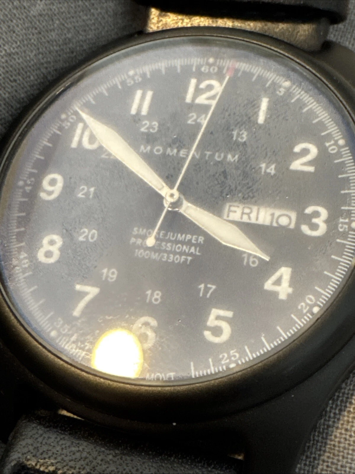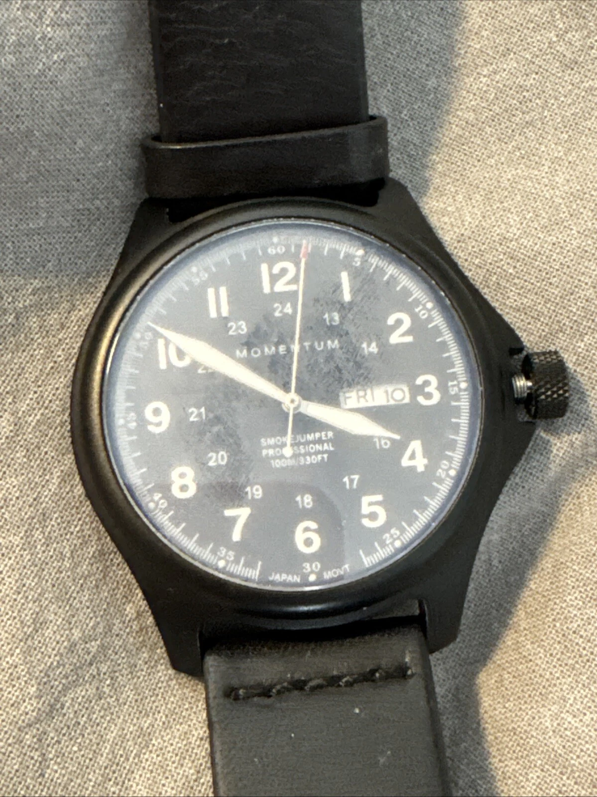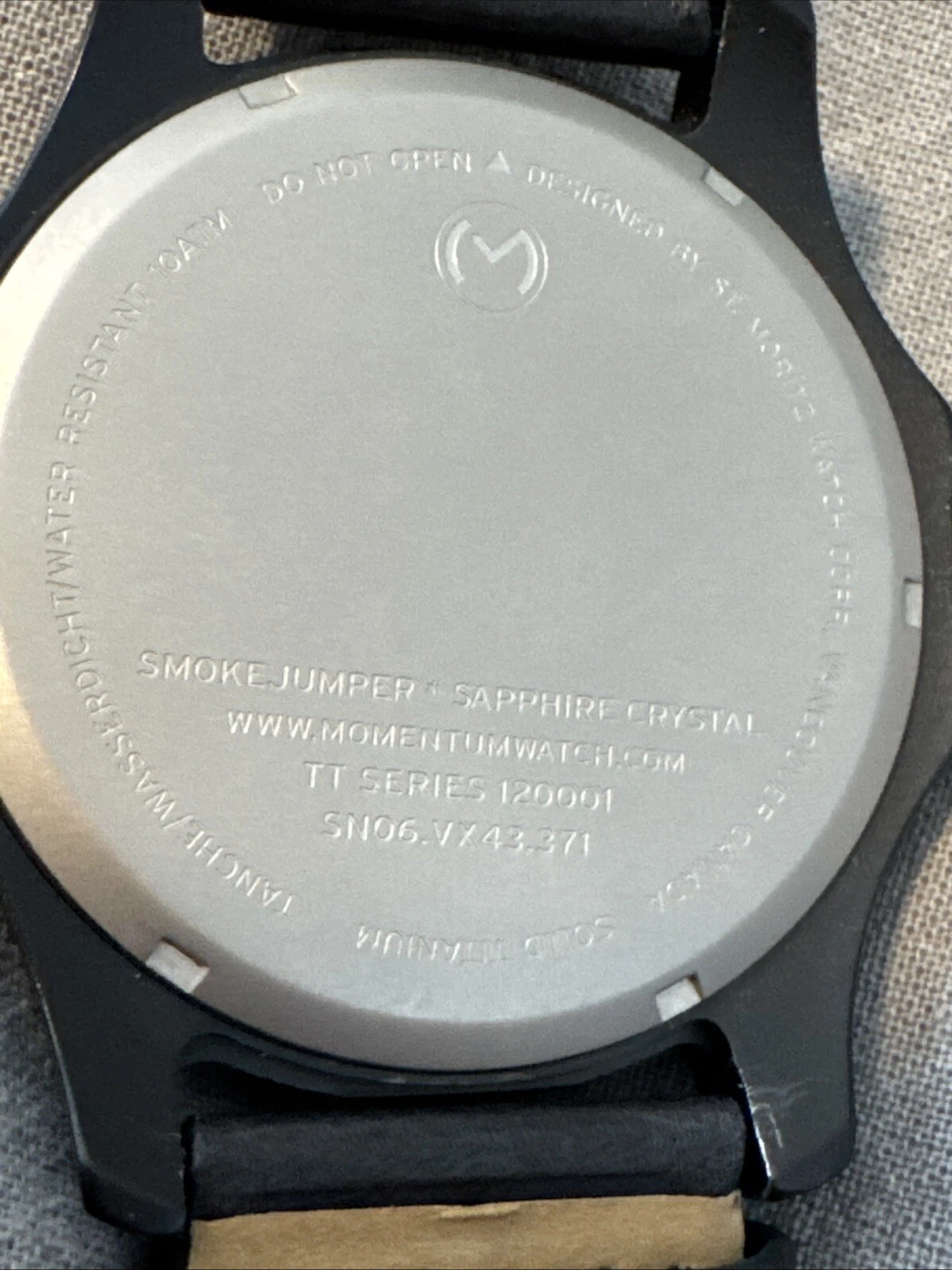 Mens Momentum Black Smokejumper 44mm Sapphire Leather Watch