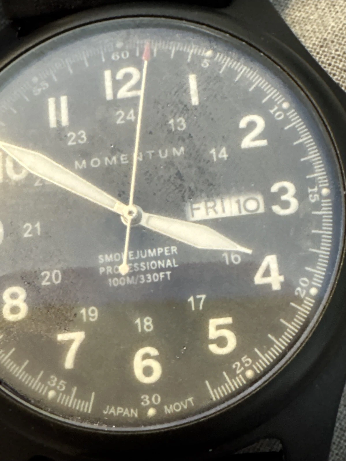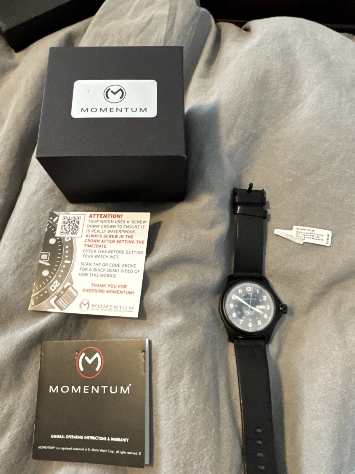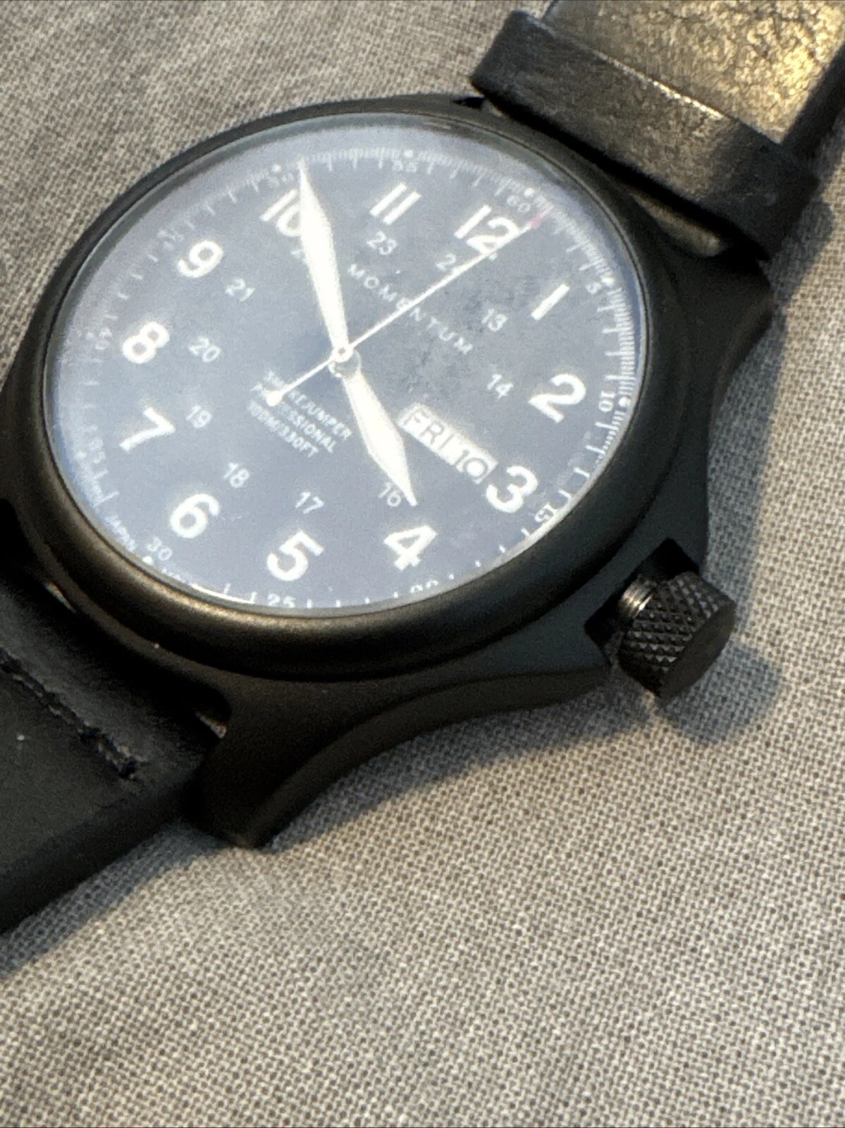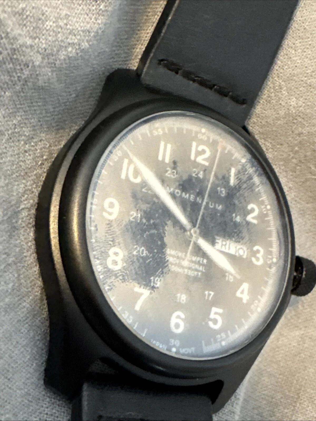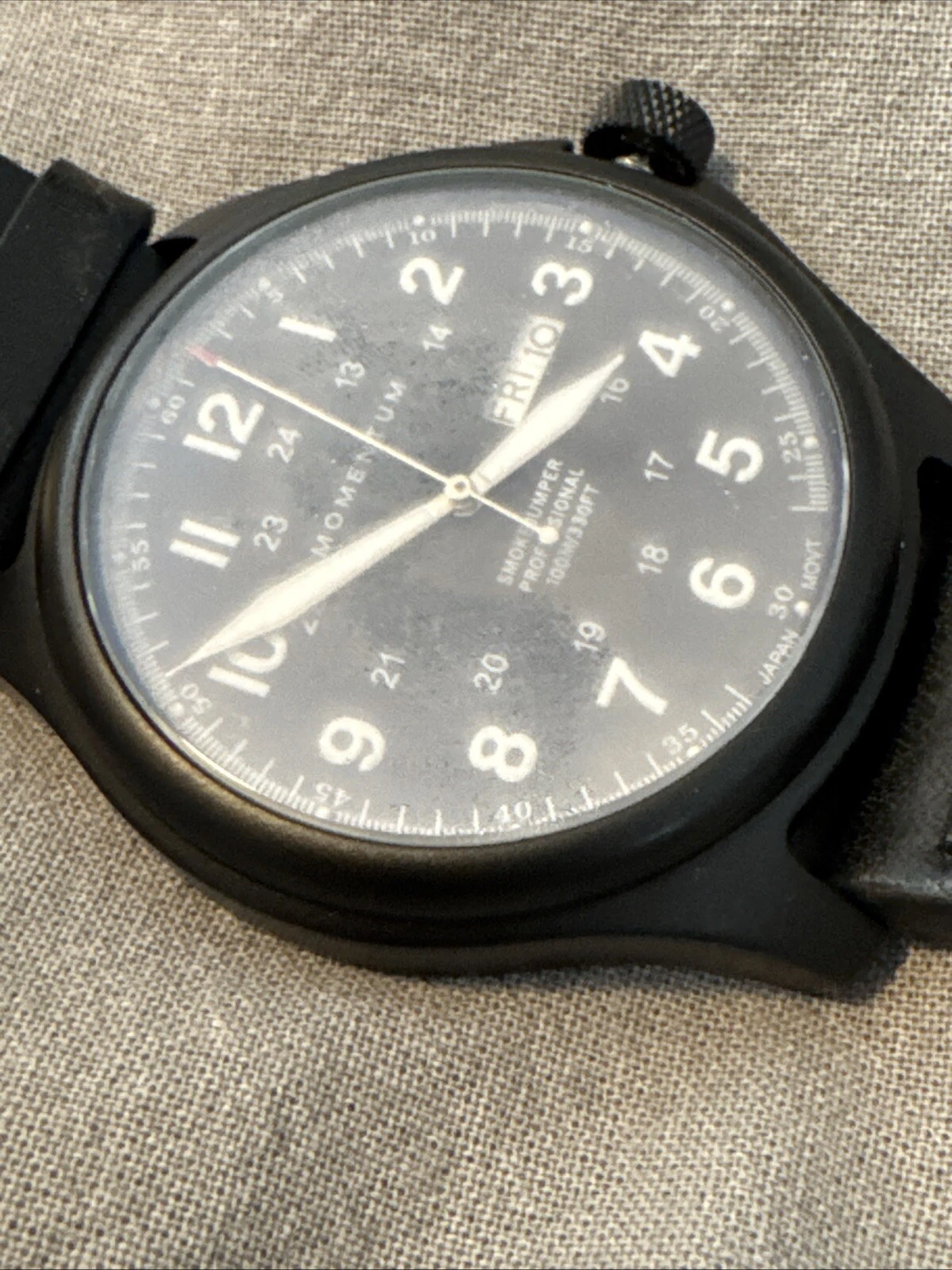 Mens Momentum Black Smokejumper 44mm Sapphire Leather Watch