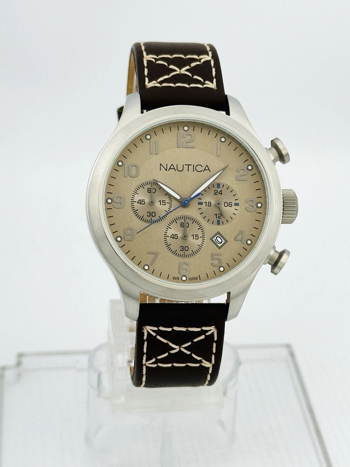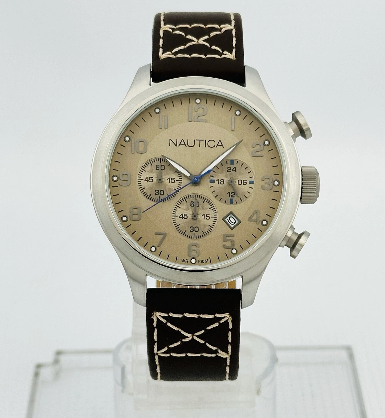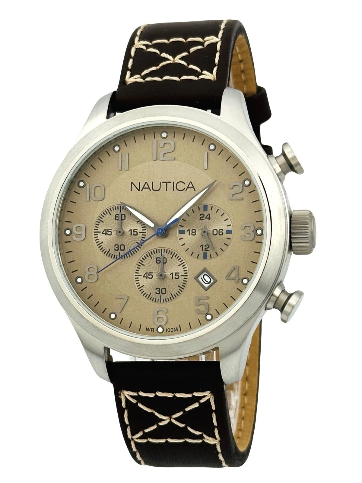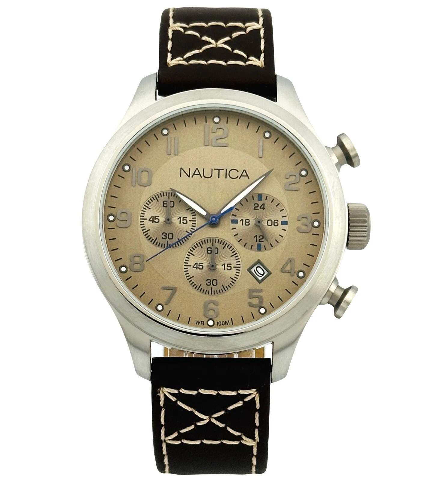 Nautica Men's A14698G Multifunction Bronze Dial Brown Leather Strap Sports Watch