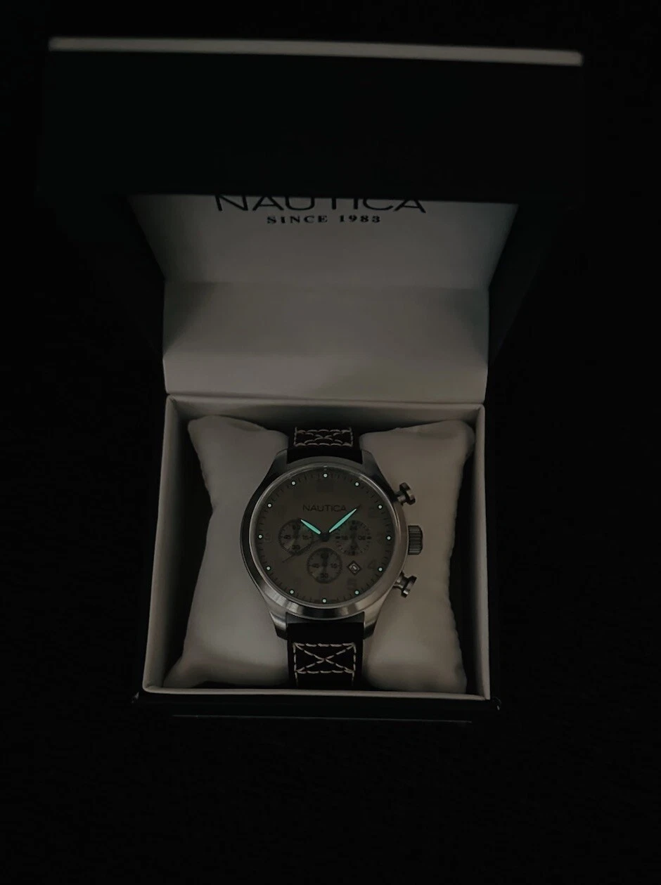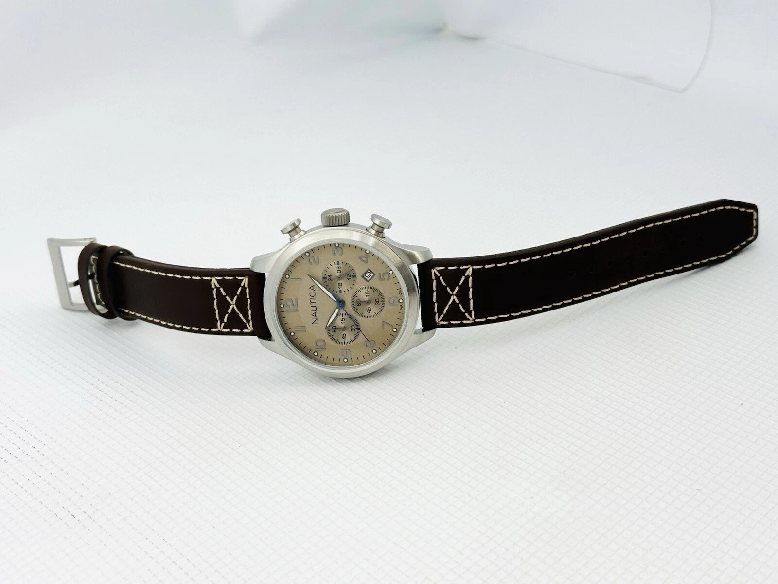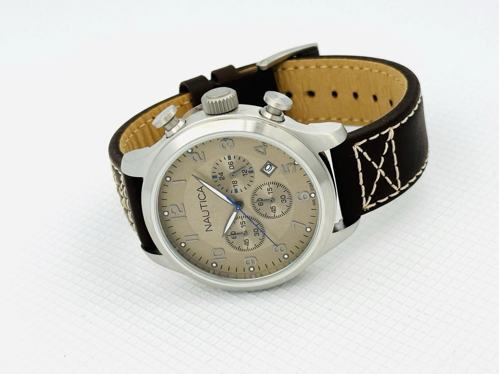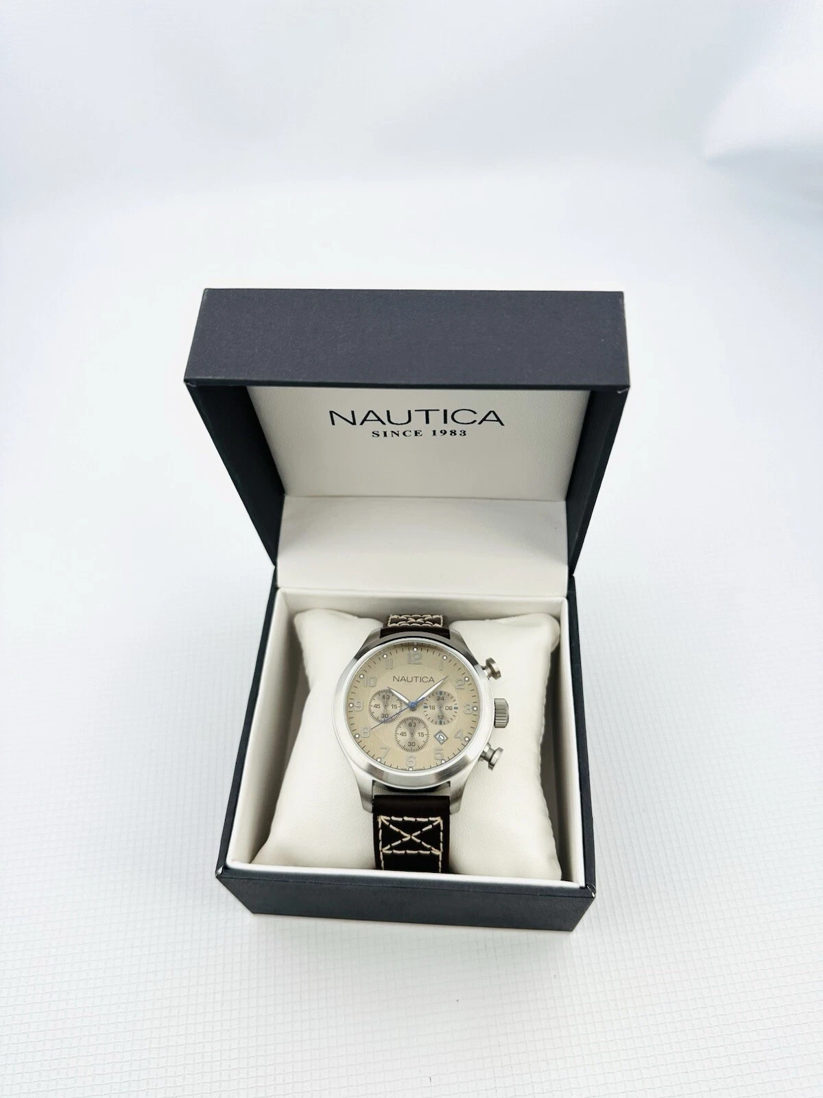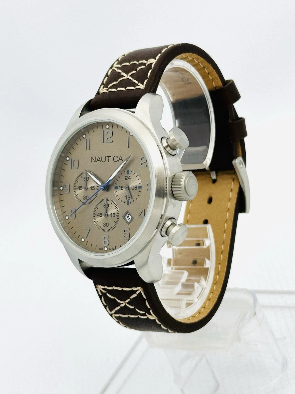 Nautica Men's A14698G Multifunction Bronze Dial Brown Leather Strap Sports Watch