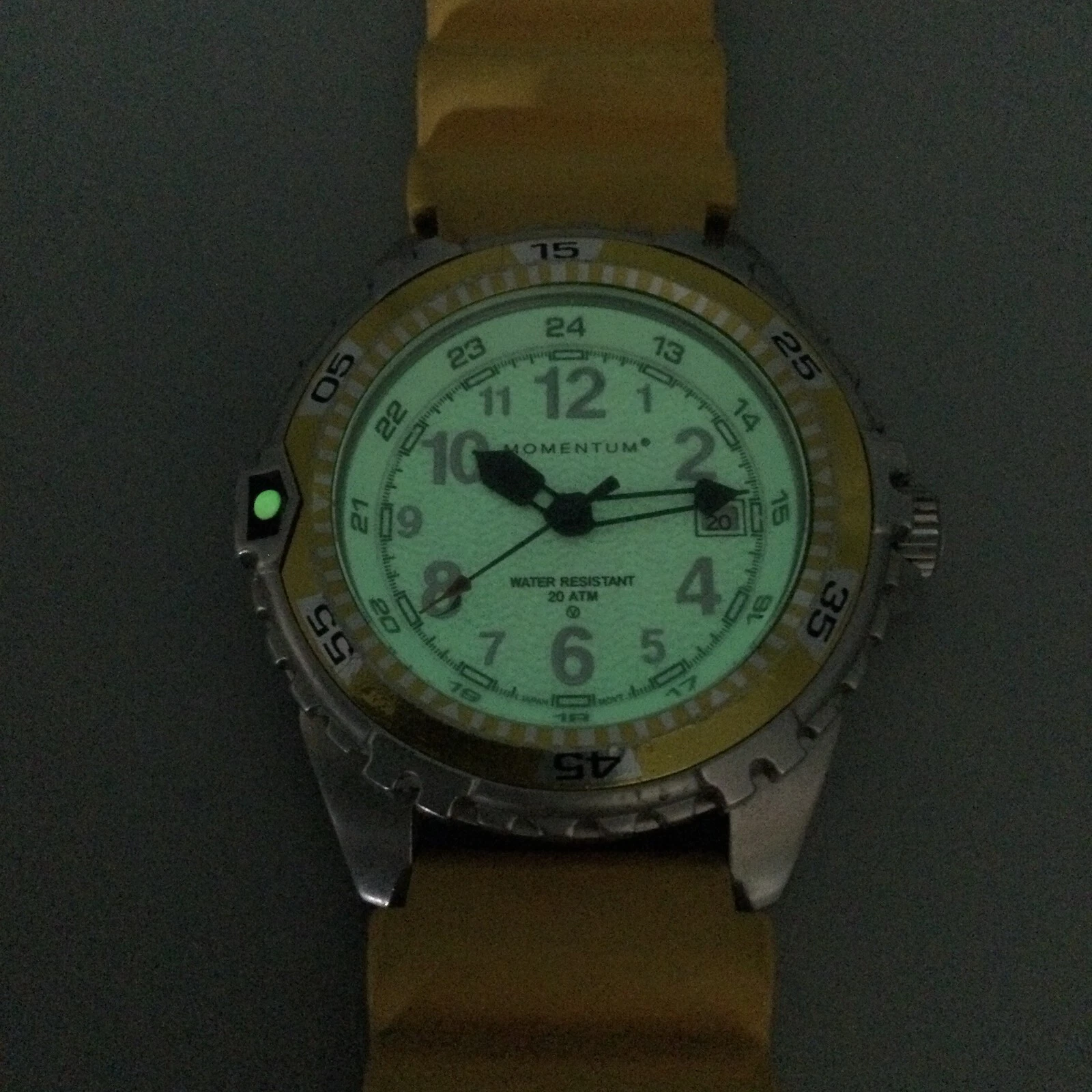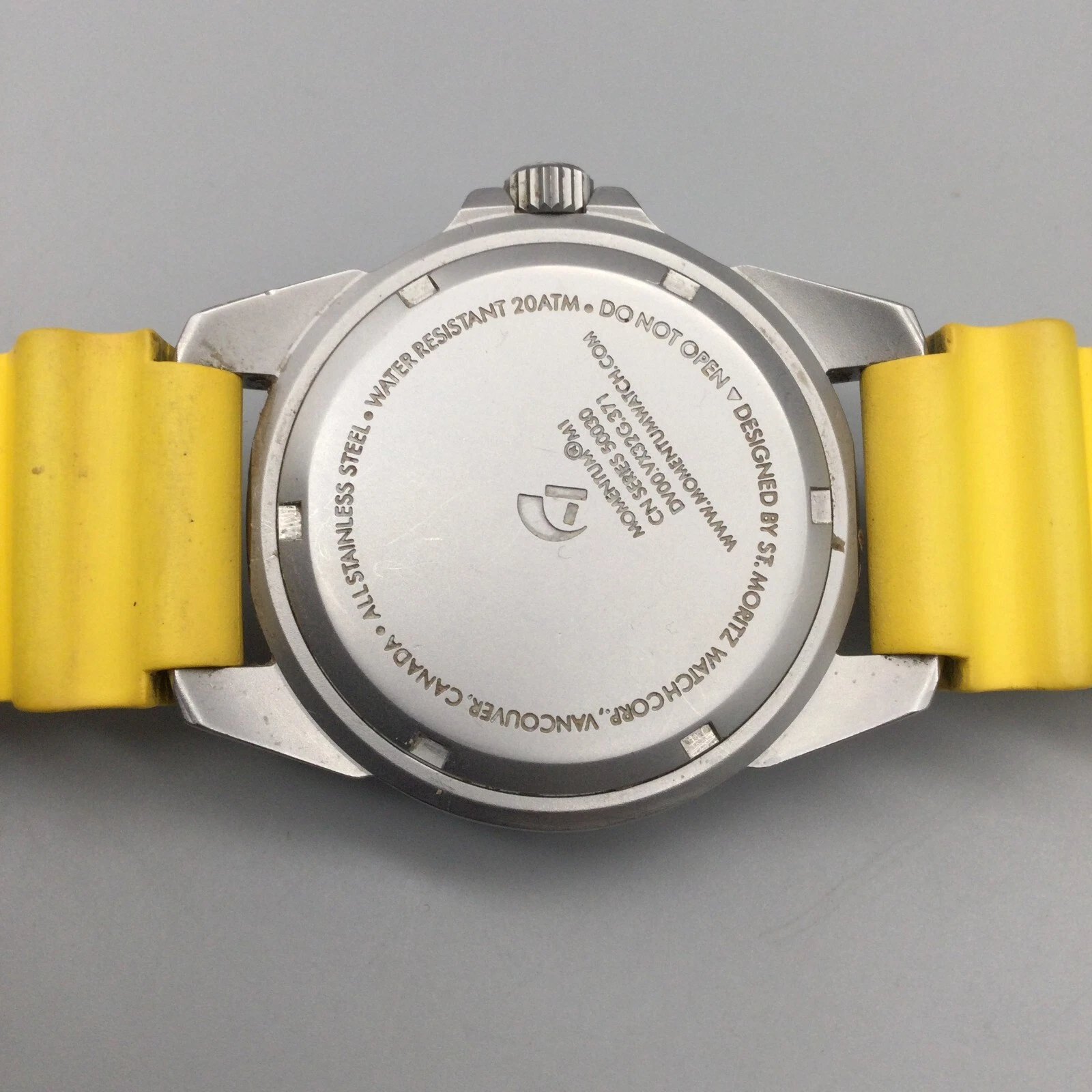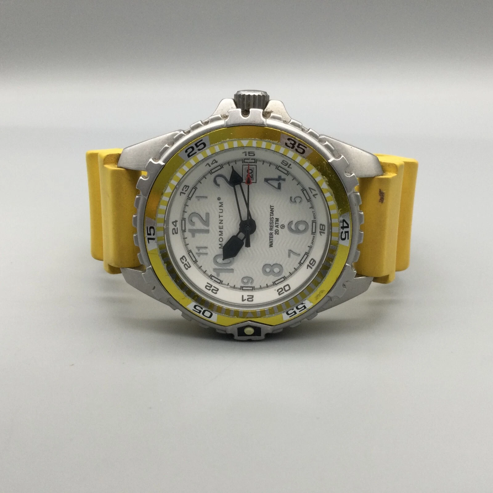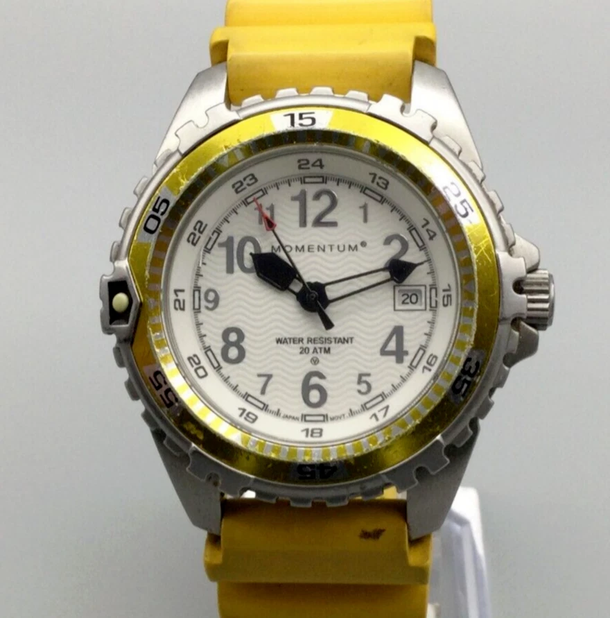 Momentum Splash Watch Men 40mm Silver Tone Yellow Band Date New Battery
