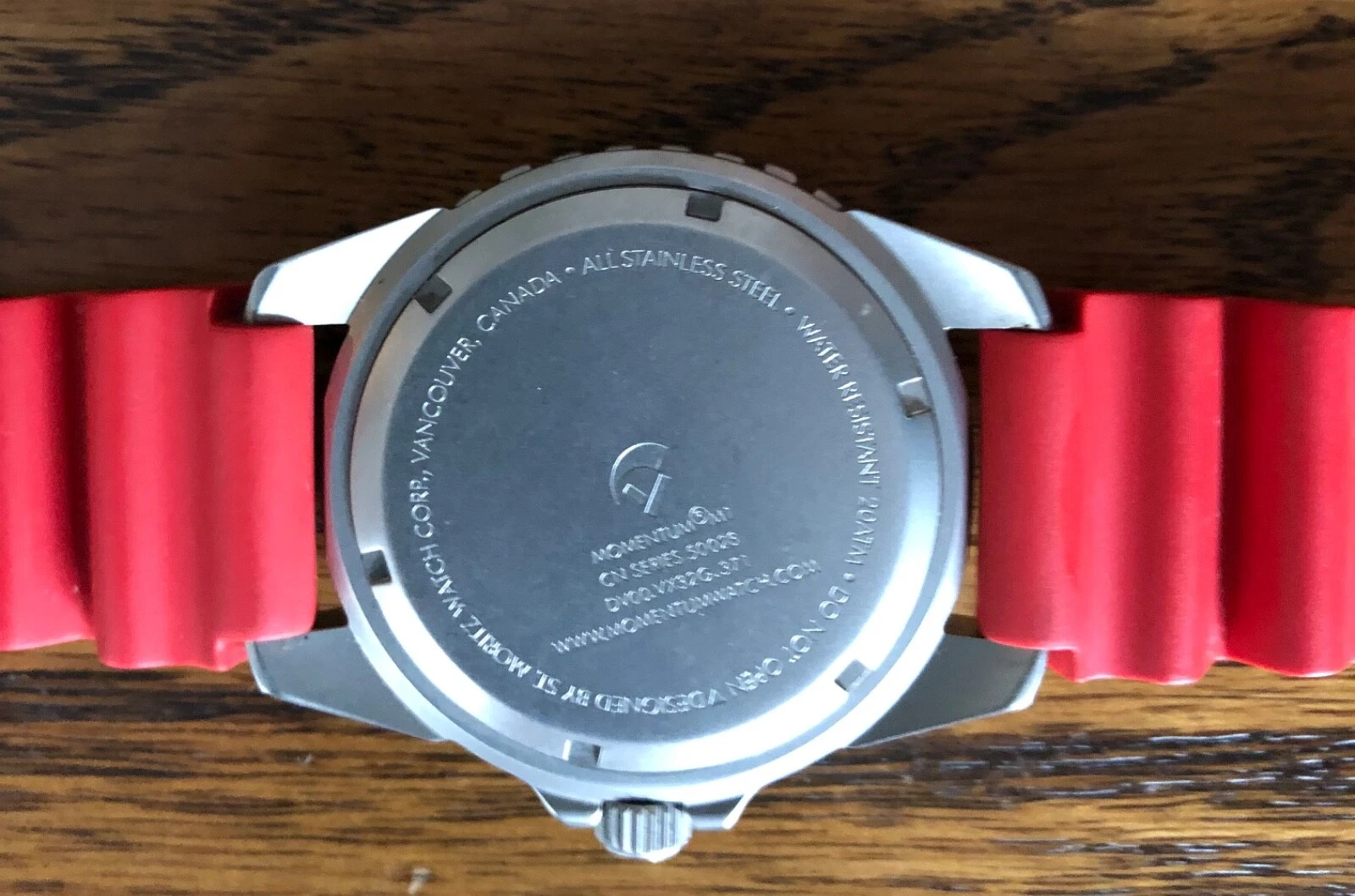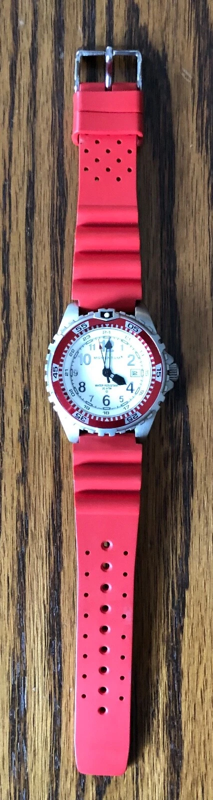 Vintage Momentum M1 Men's Divers Watch with Red Rubber Band Luminescent Dial
