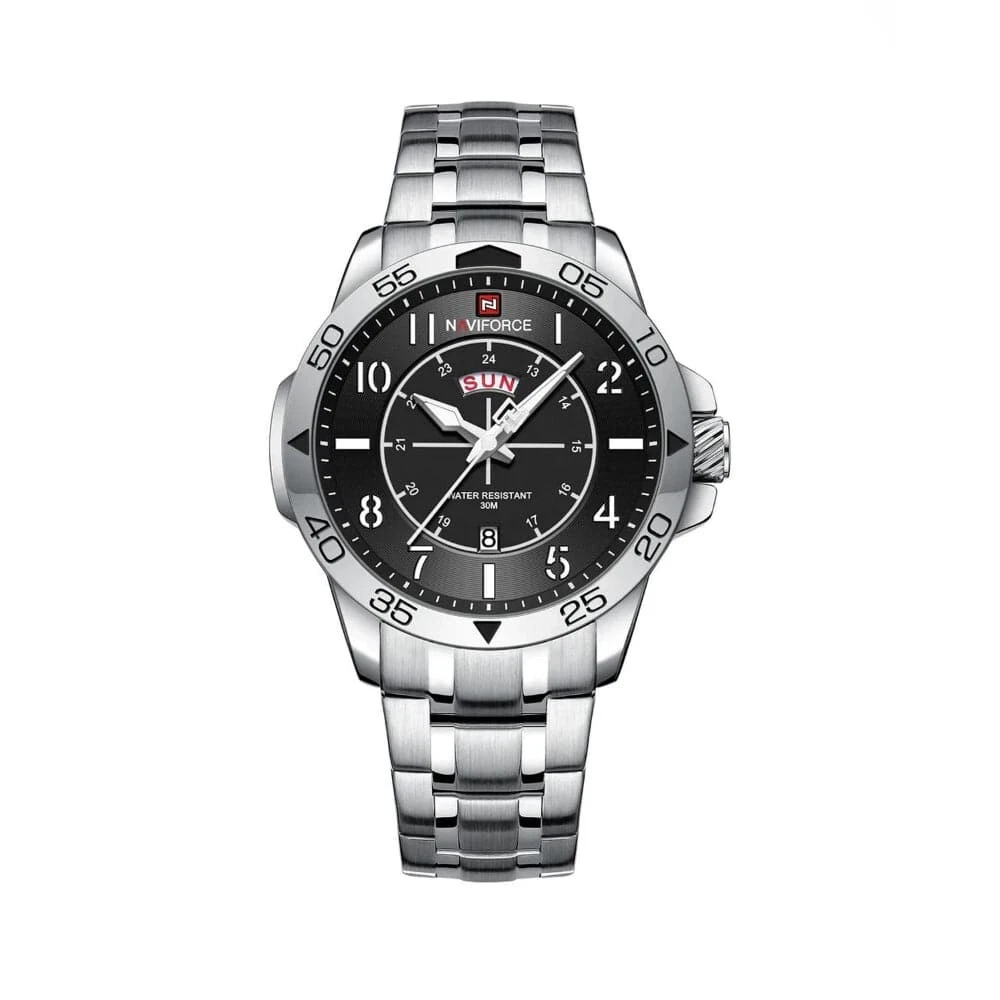 Naviforce Black Dial Silver Stainless Steel Strap Men Watch NF9204S S/B/S