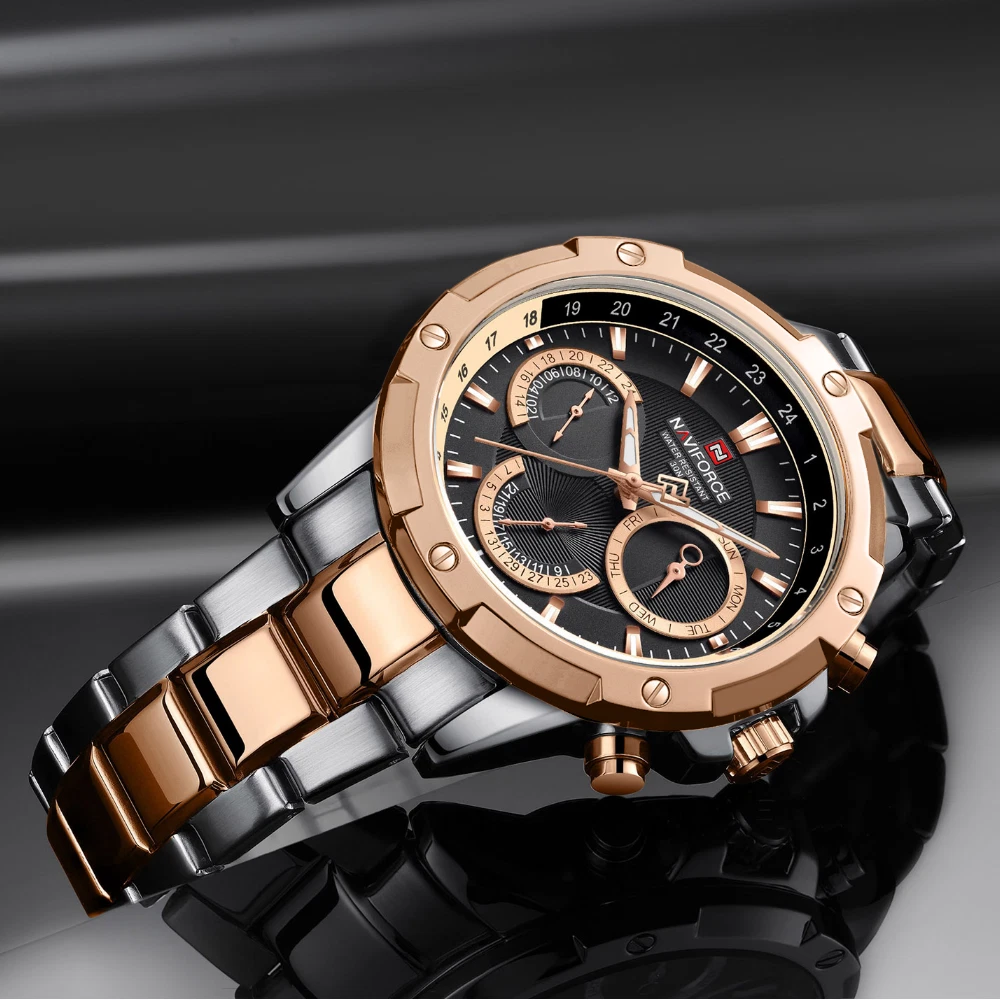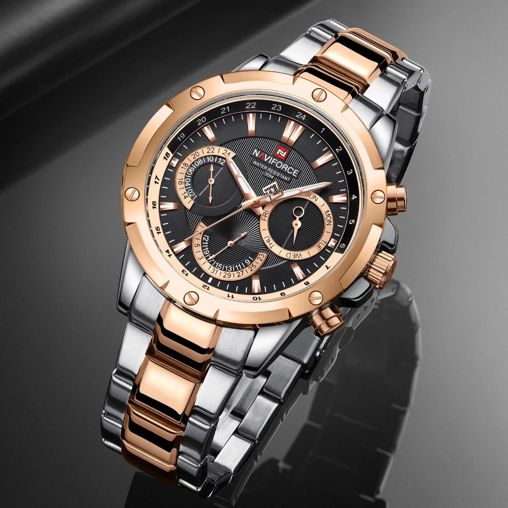 Naviforce Chronograph Two-Tone Stainless Steel Strap Men Watch NF9196S S/RG/B