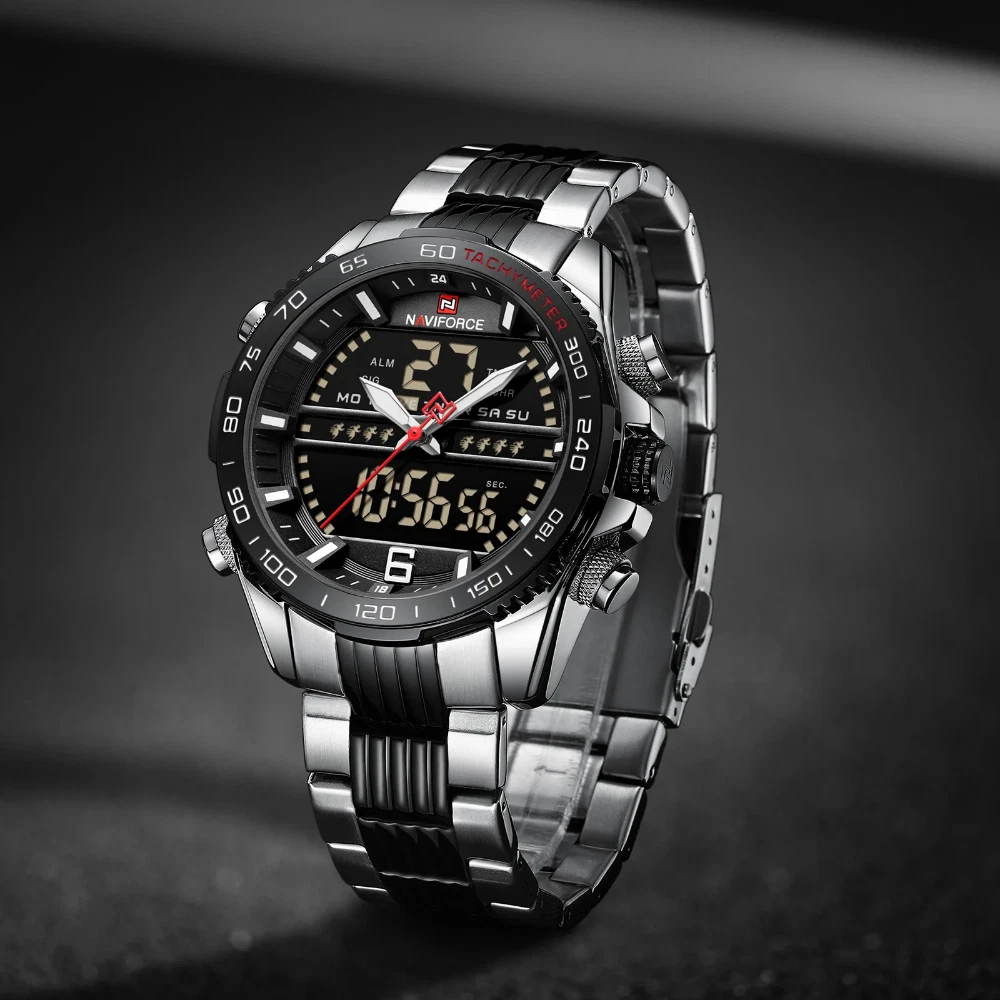Naviforce Digital Black Dial Silver Stainless Steel Men Watch NF9195S S/B/B
