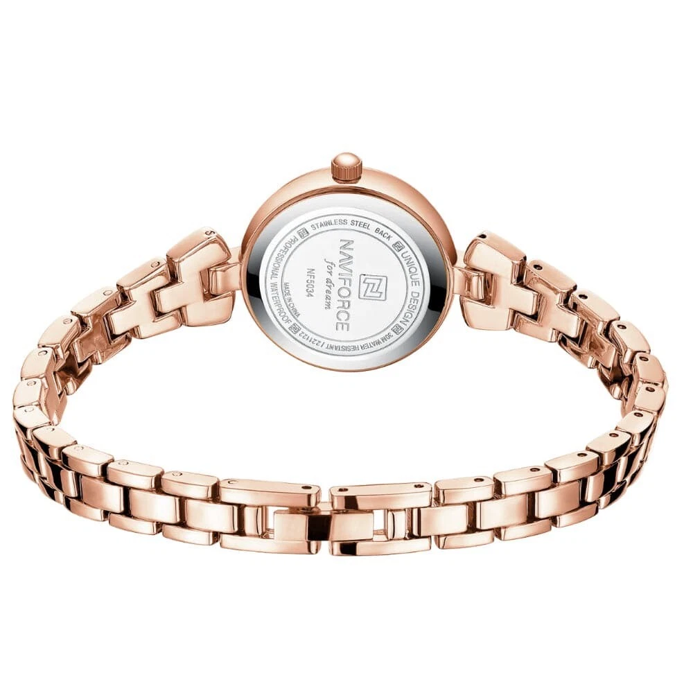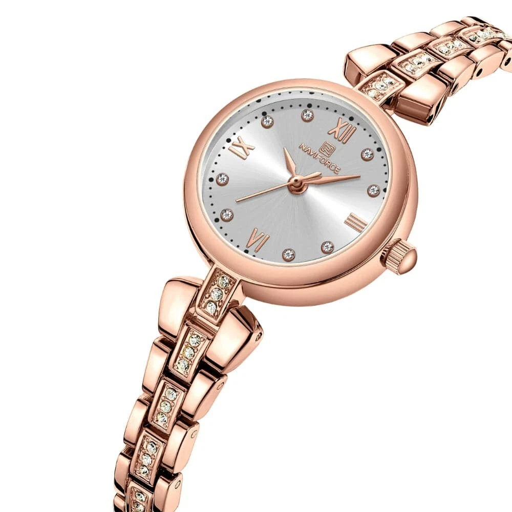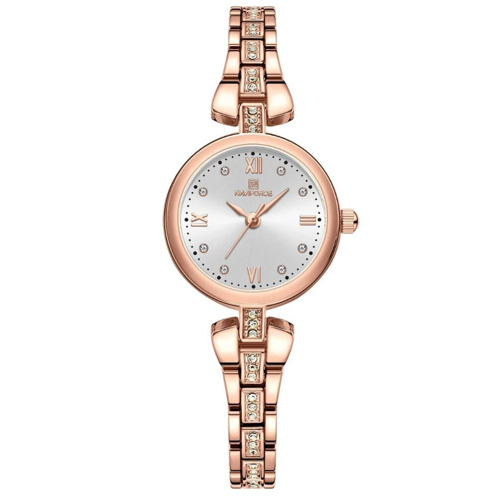 Naviforce Silver Dial Rose Gold Stainless Steel Strap Women Watch NF5034 RG/W