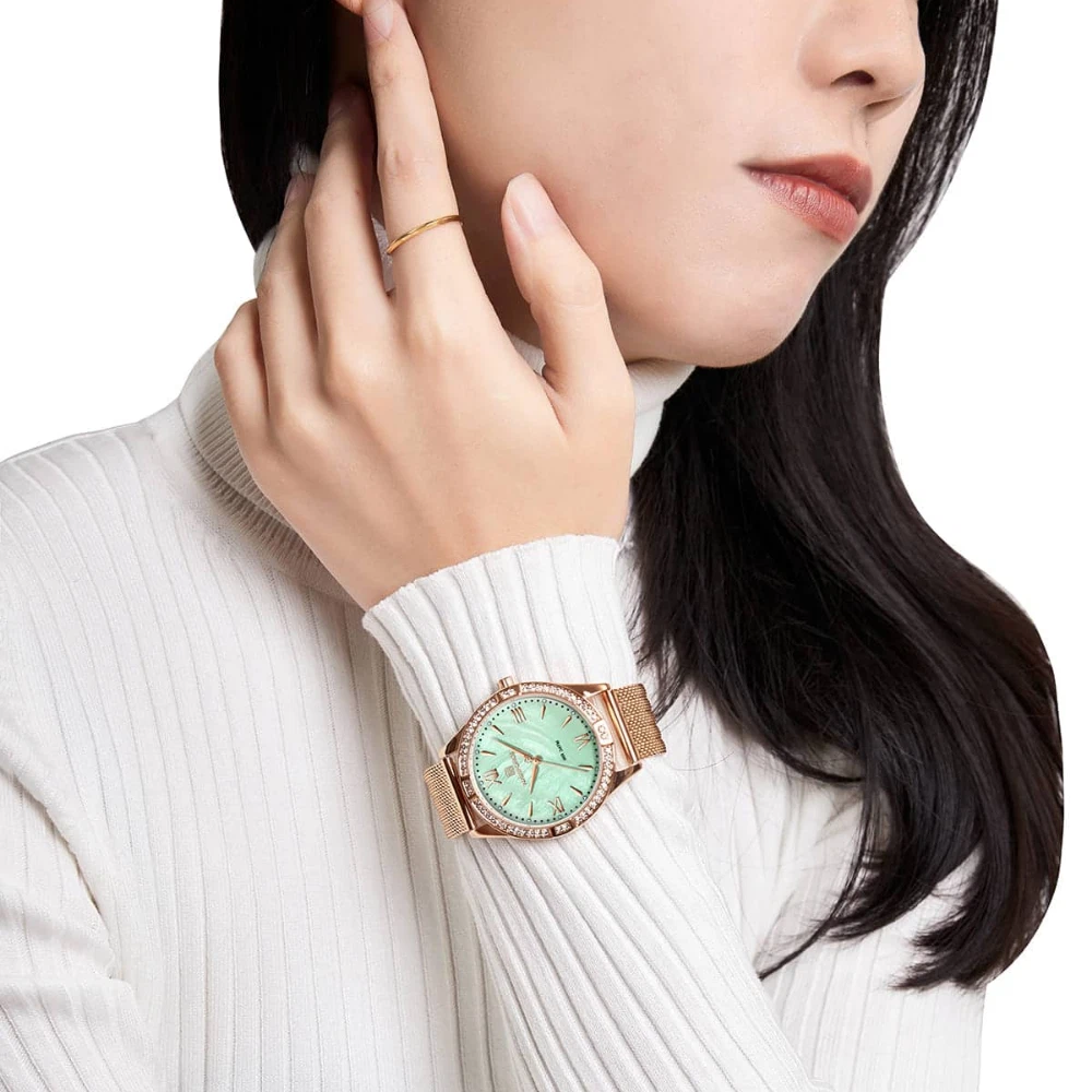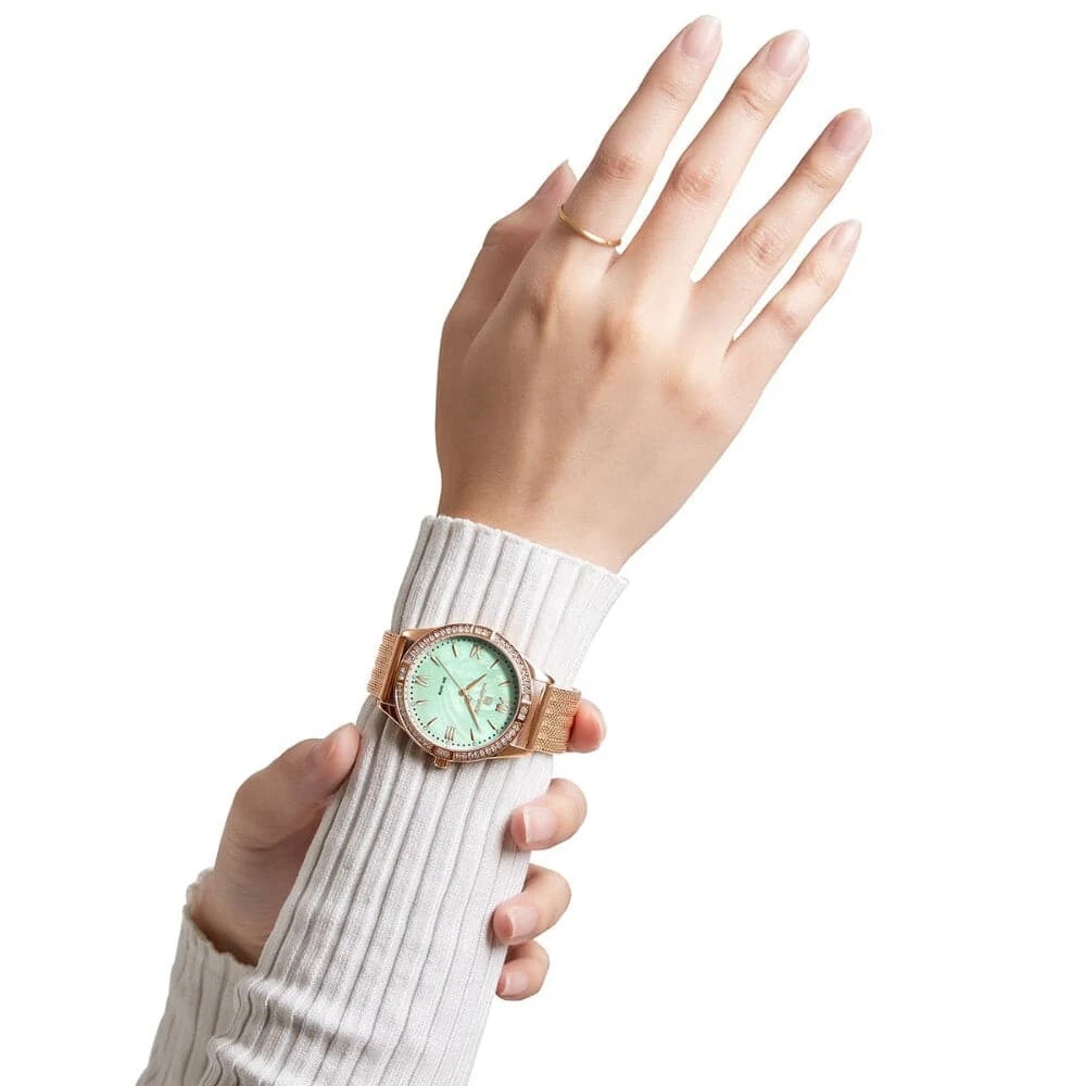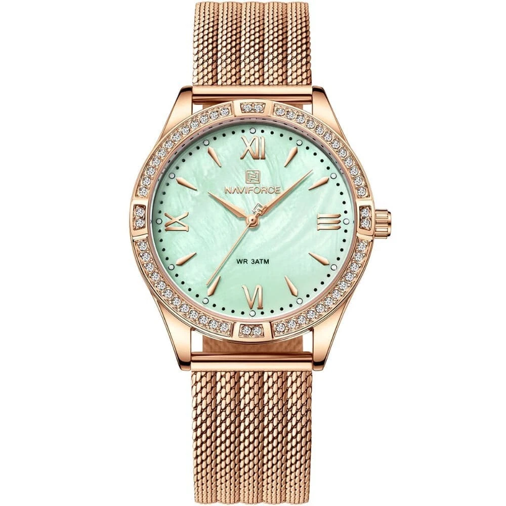 Naviforce Green Dial Rose Gold Milanese Strap Women Watch NF5028 RG/GN