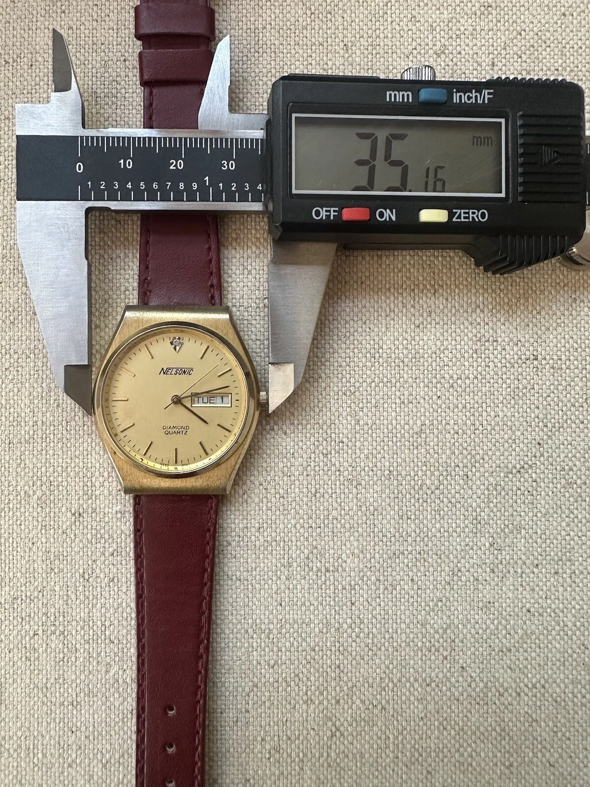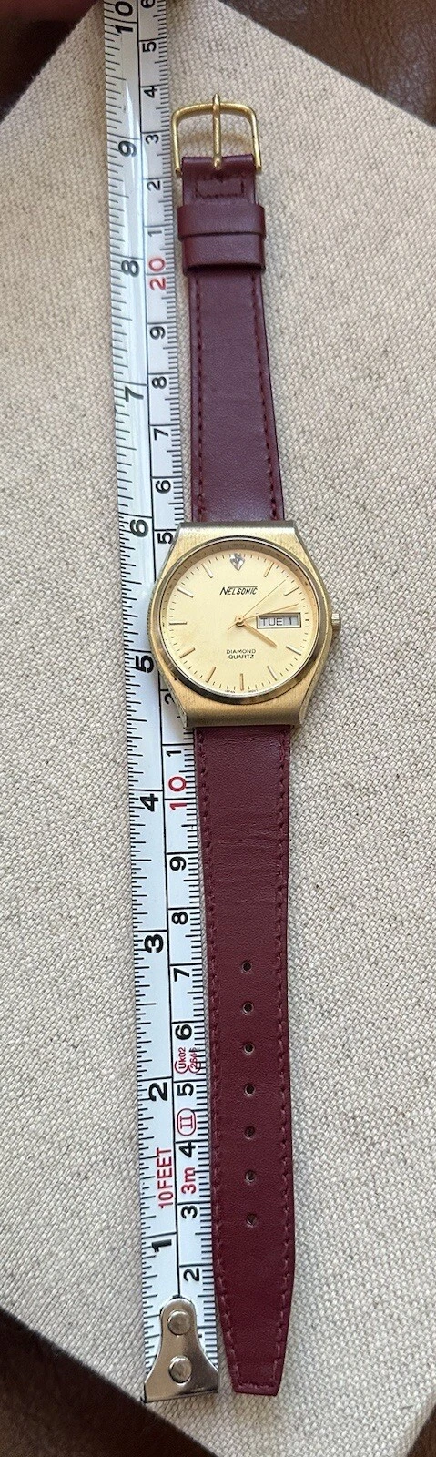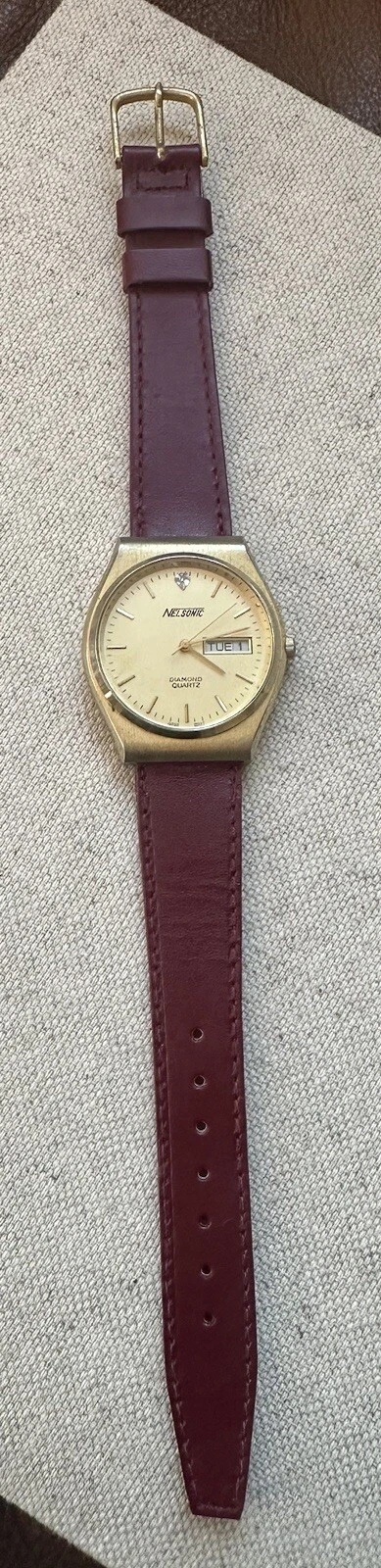 Vintage Nelsonic Diamond Quartz Day Date Analog Q512GD New Battery