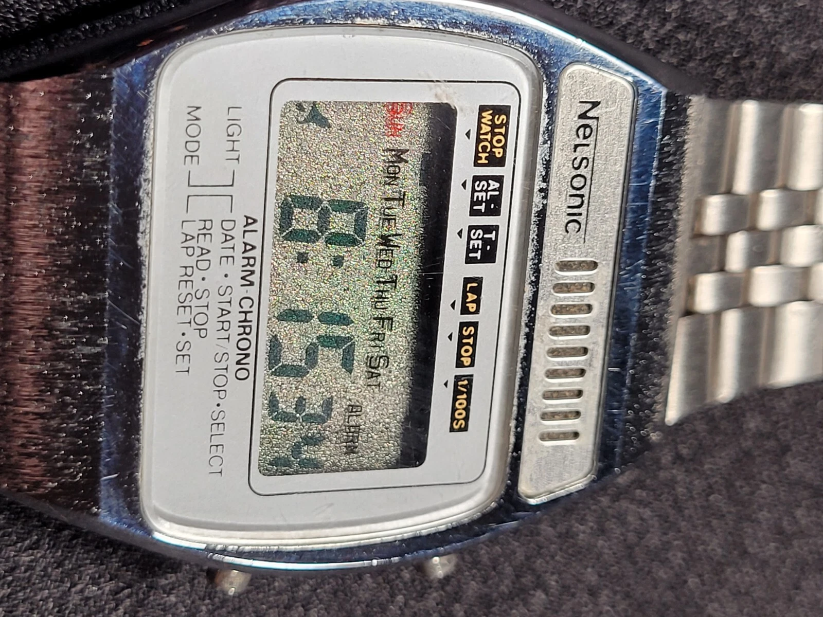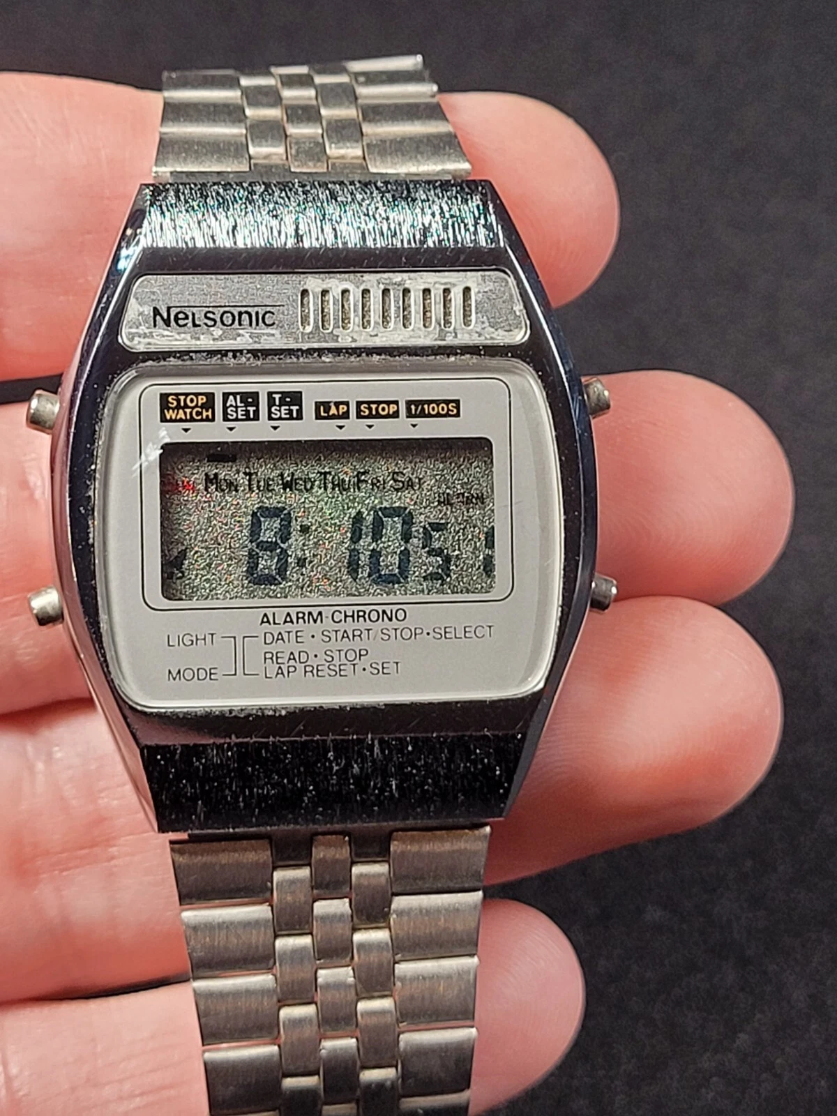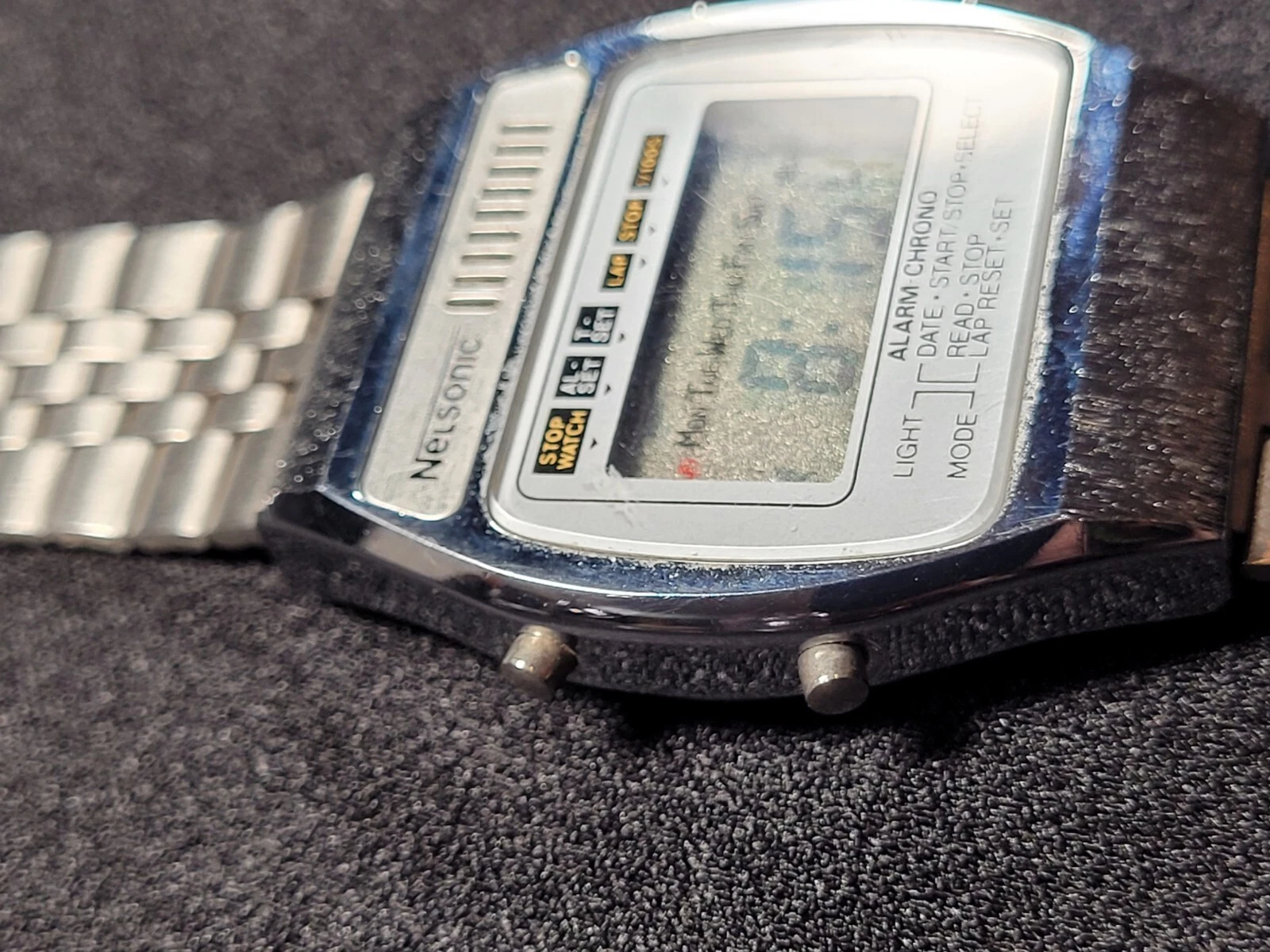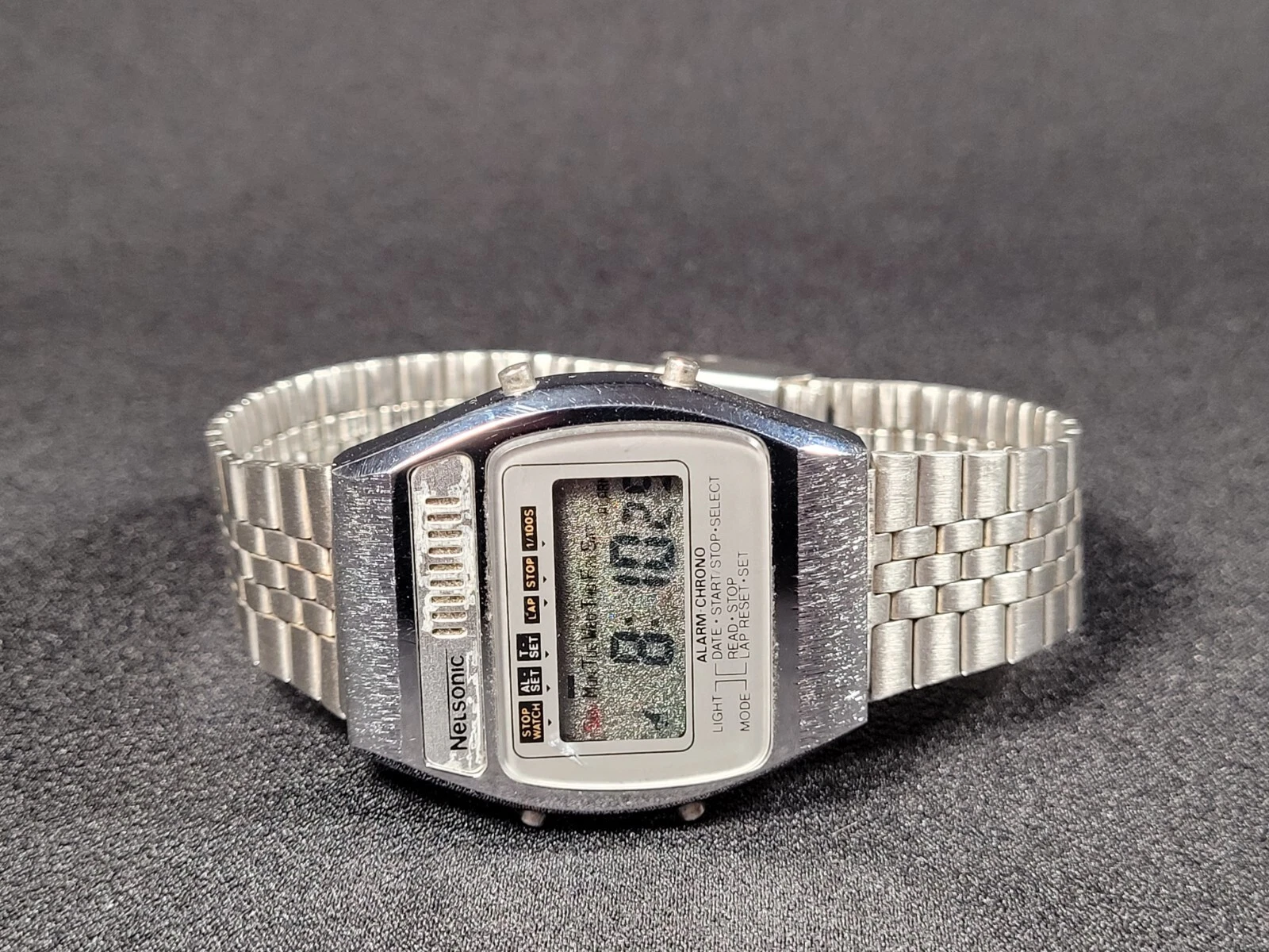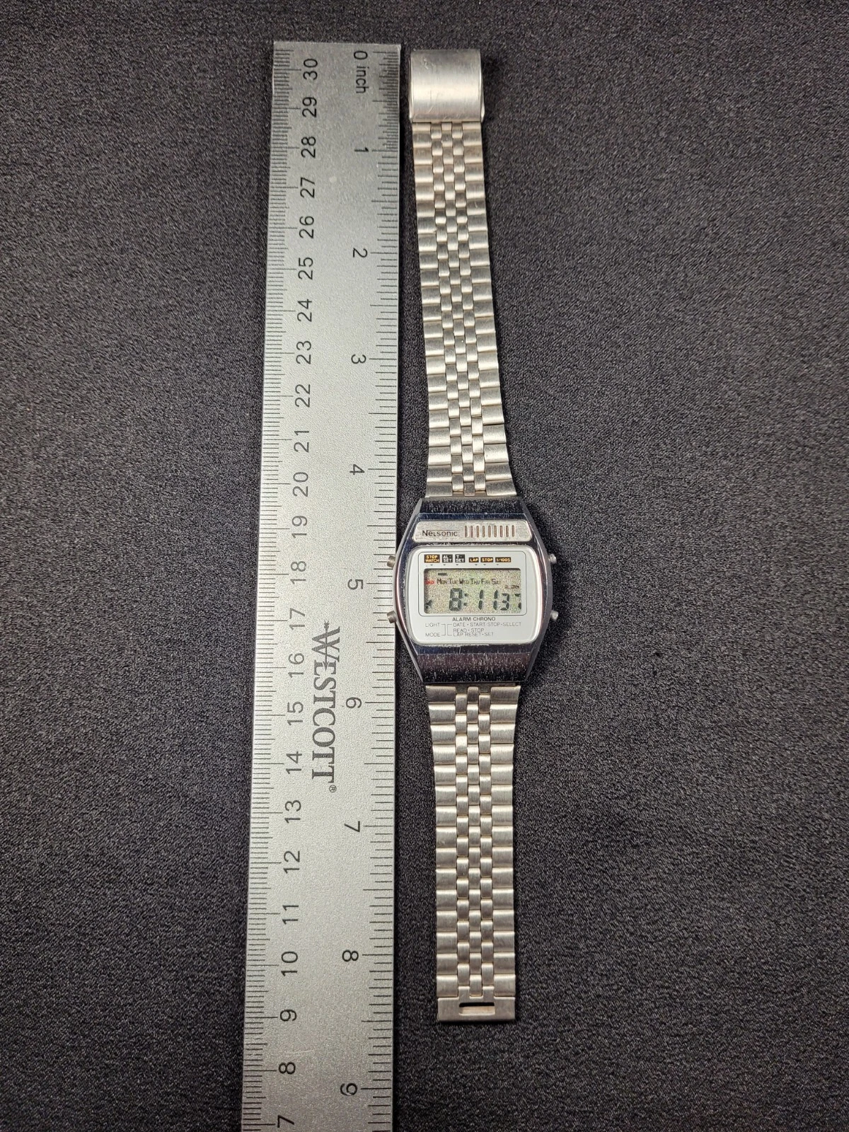 Vintage Nelsonic Alarm Chrono Wrist Watch Works With Fresh Battery I-15295