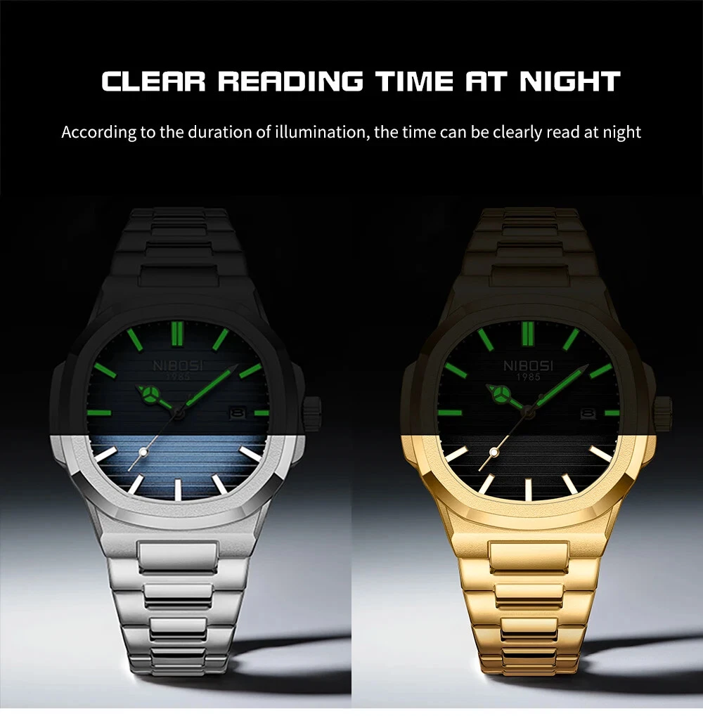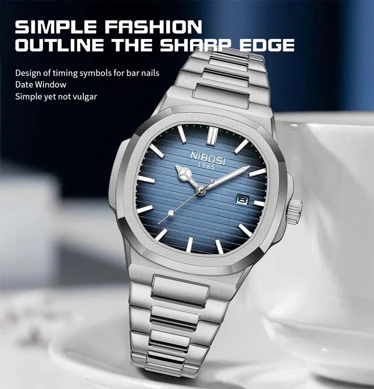 NIBOSI Luxury Men Gent Wristwatch Waterproof Luminous Date Men's Watches BLUE