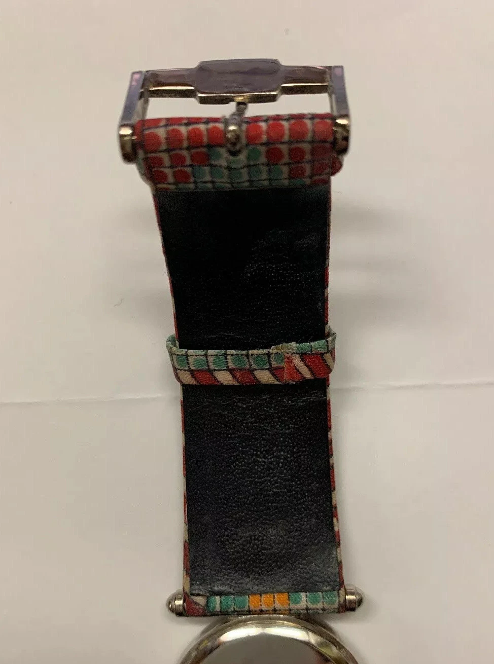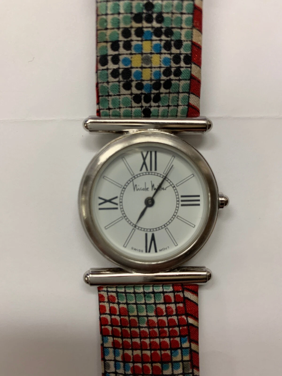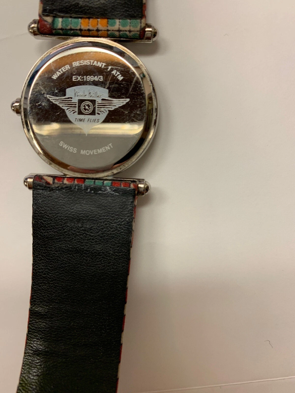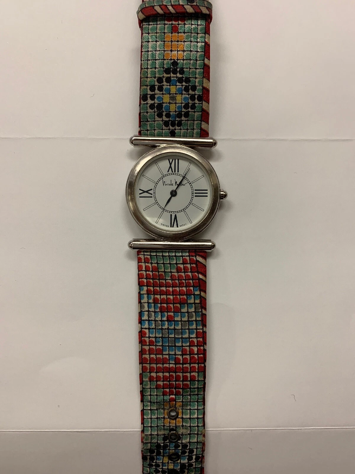 NICOLE MILLER “Time Flies” Silvertone 90’s Watch Swiss Movement Mosaic Pattern