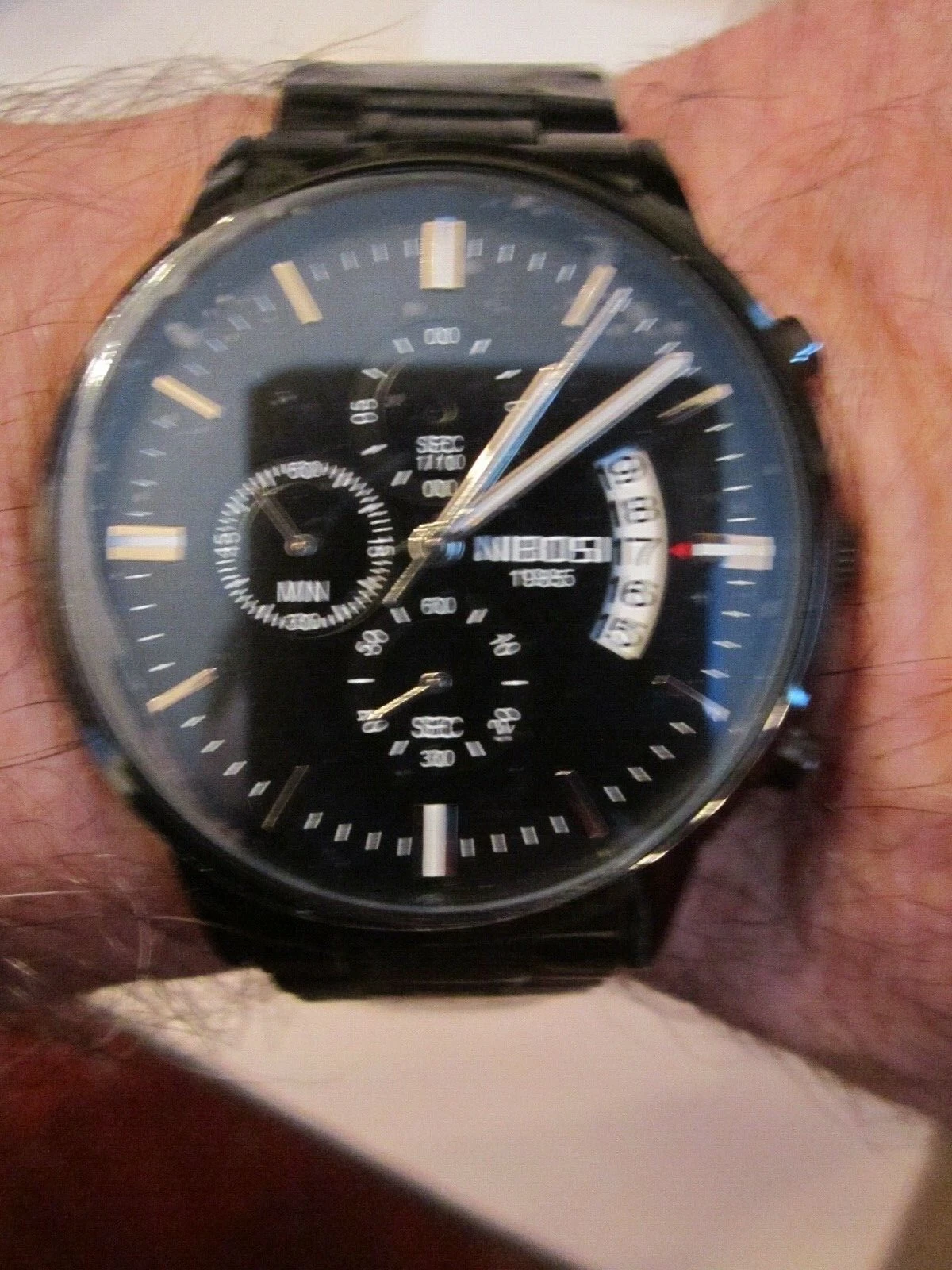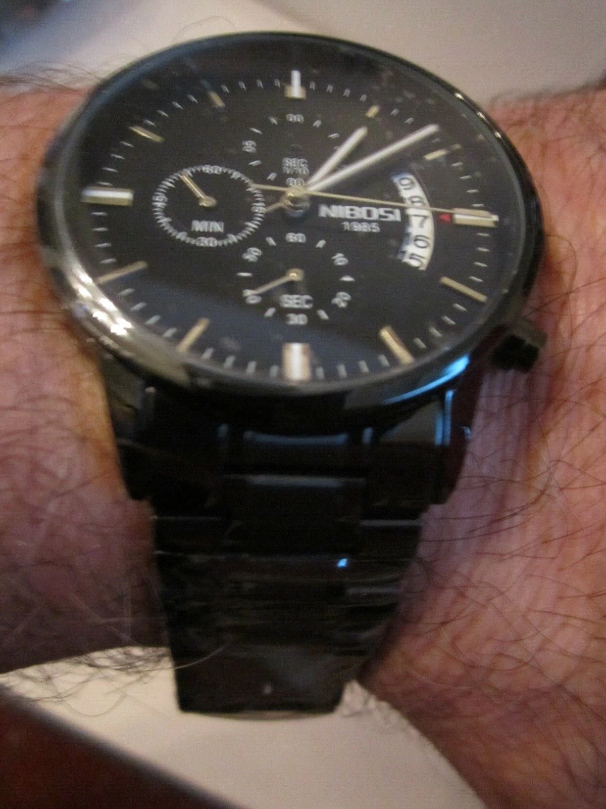 NIBOSI 1985 QUARTZ WATCH - BLACK METAL NI2309 - HEAVY CASE -BBA-31