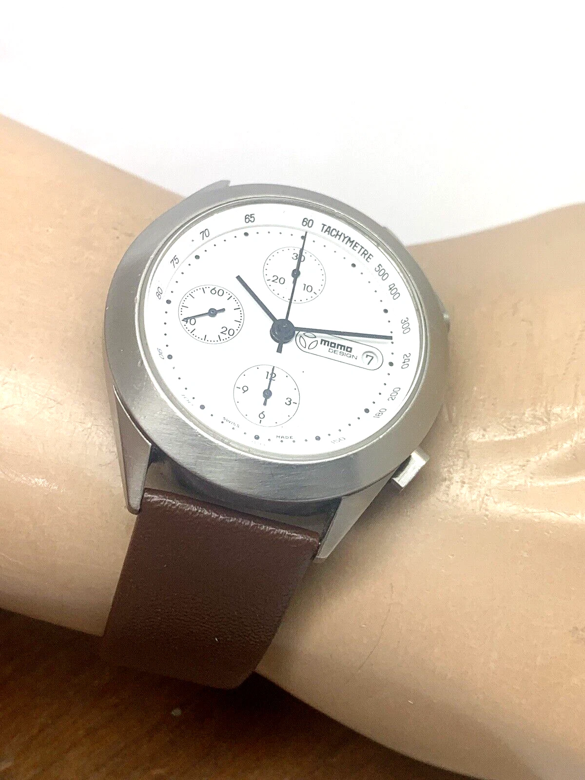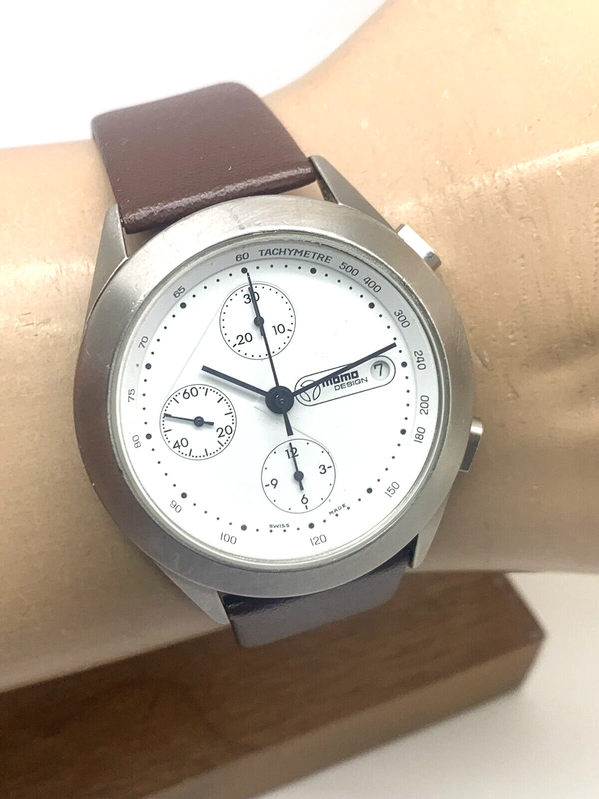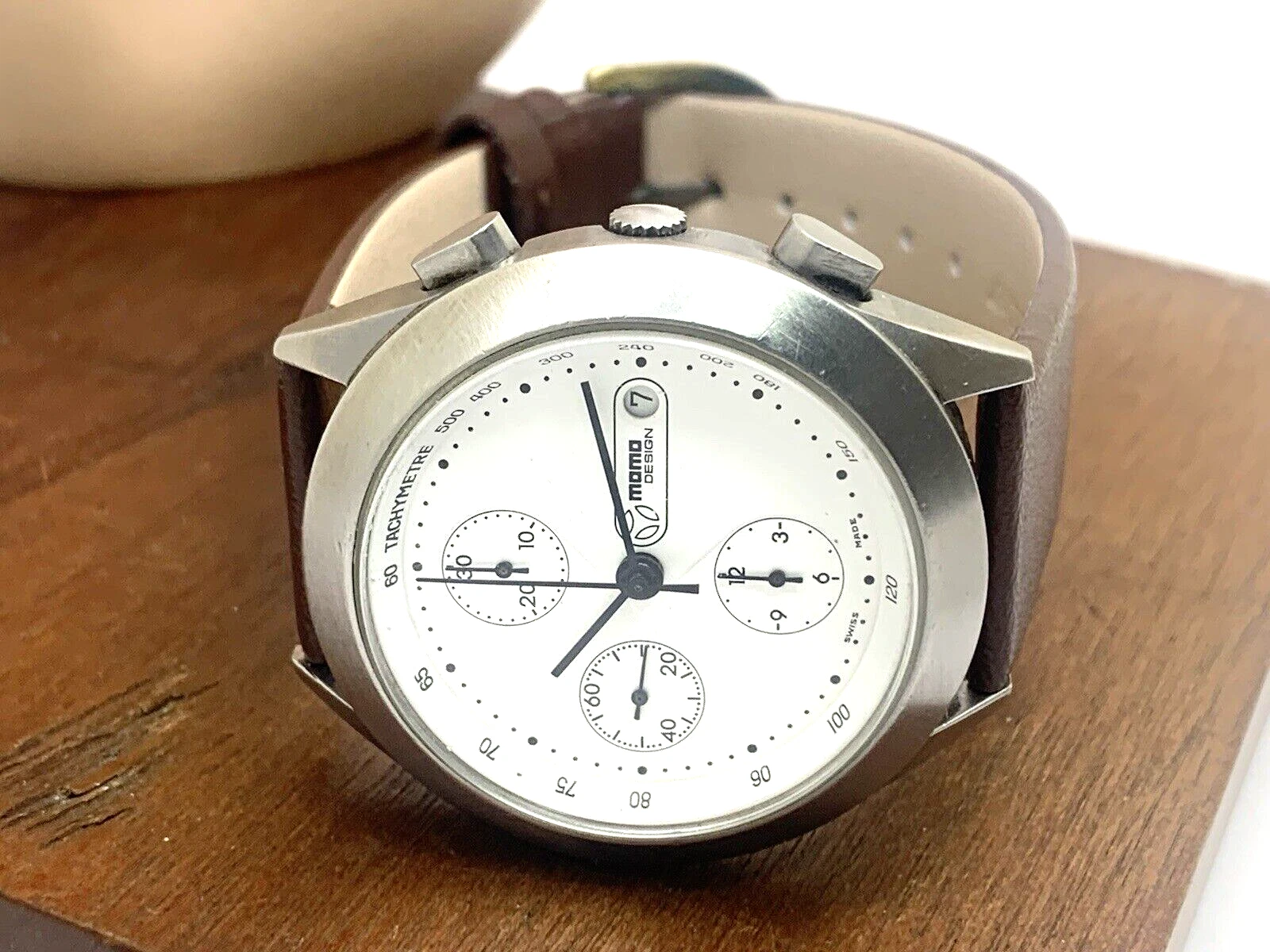 Momo Design Men's Watch Swiss Automatic Chronograph White Dial Leather Band 40mm