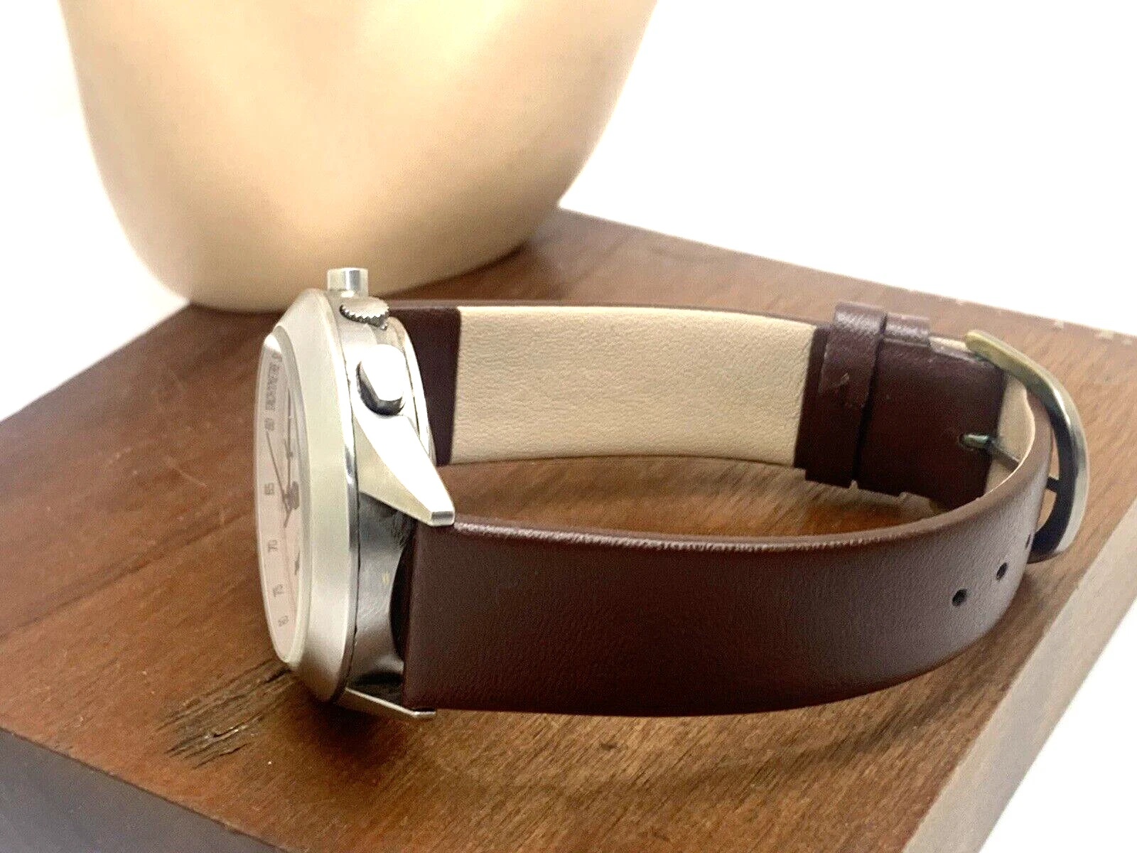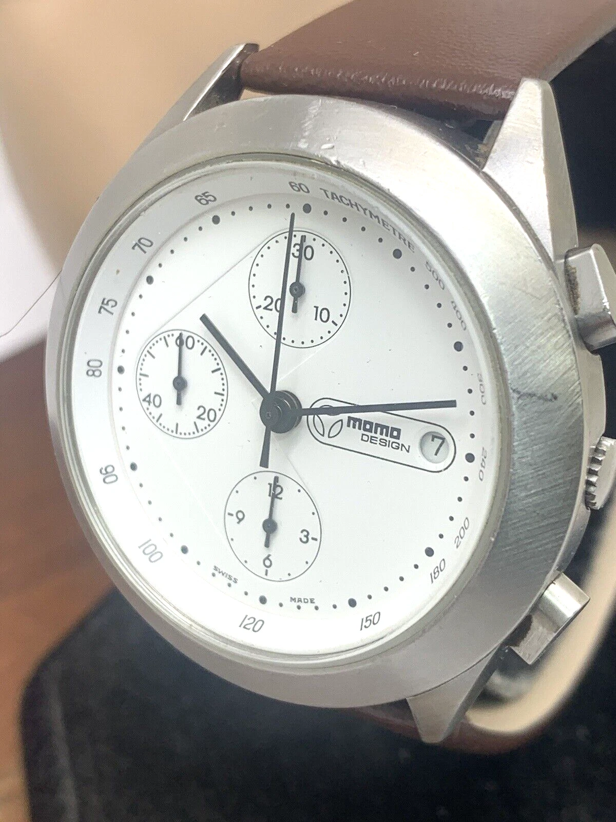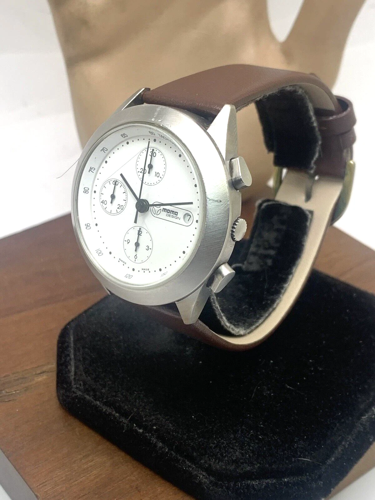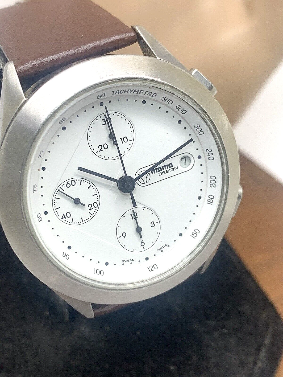 Momo Design Men's Watch Swiss Automatic Chronograph White Dial Leather Band 40mm