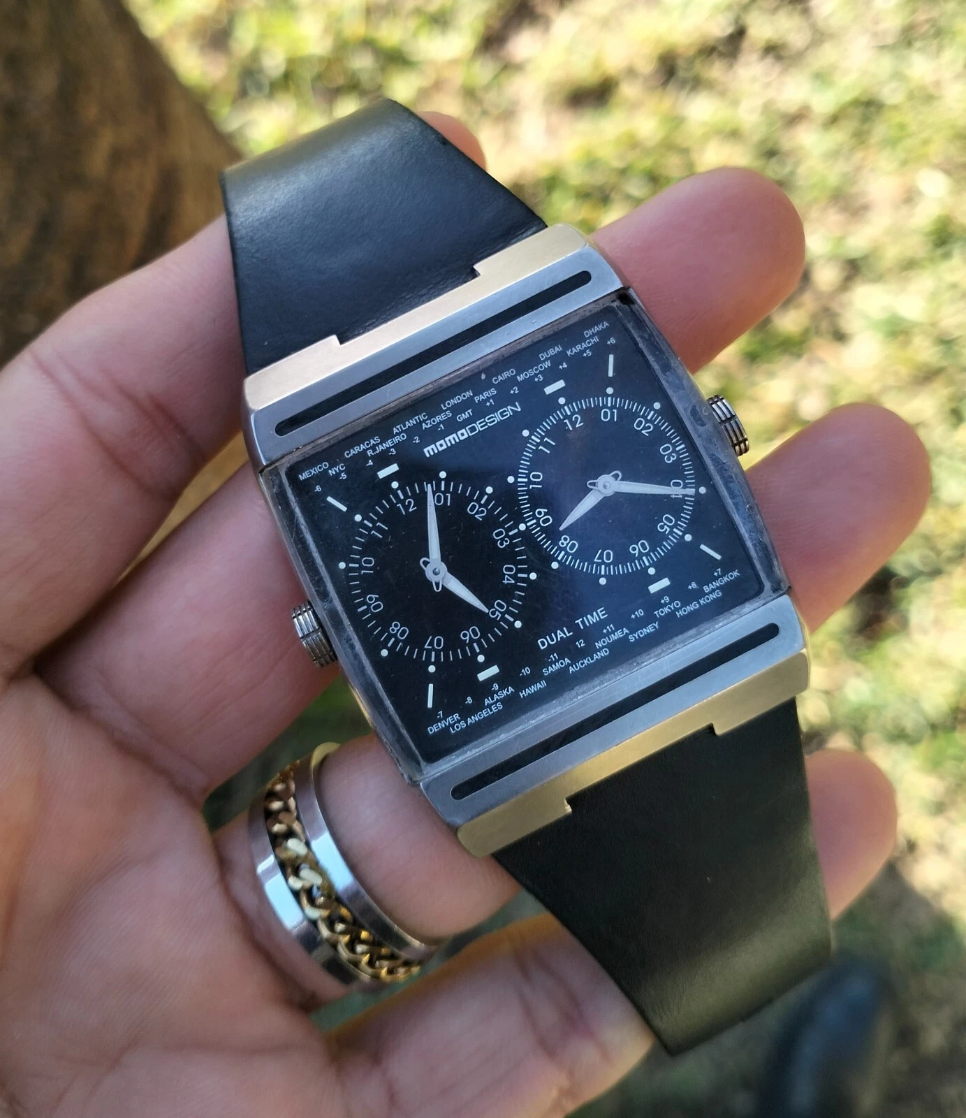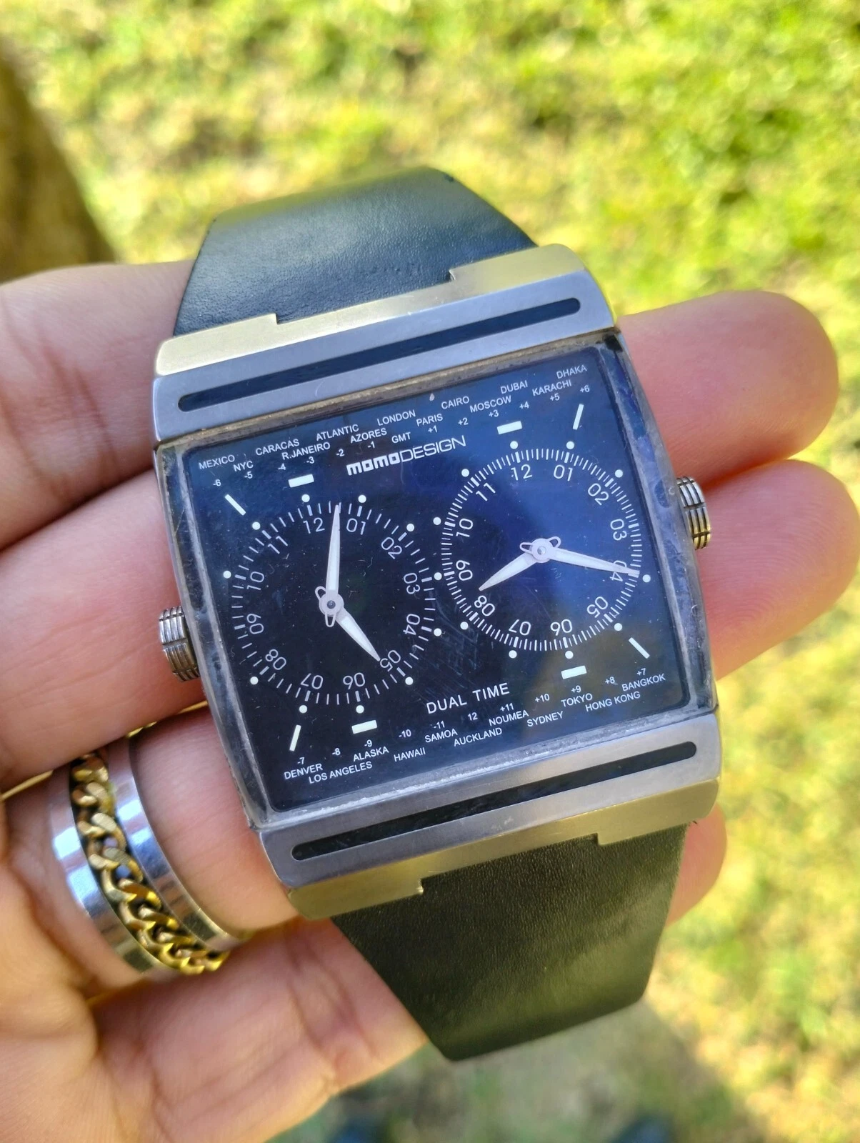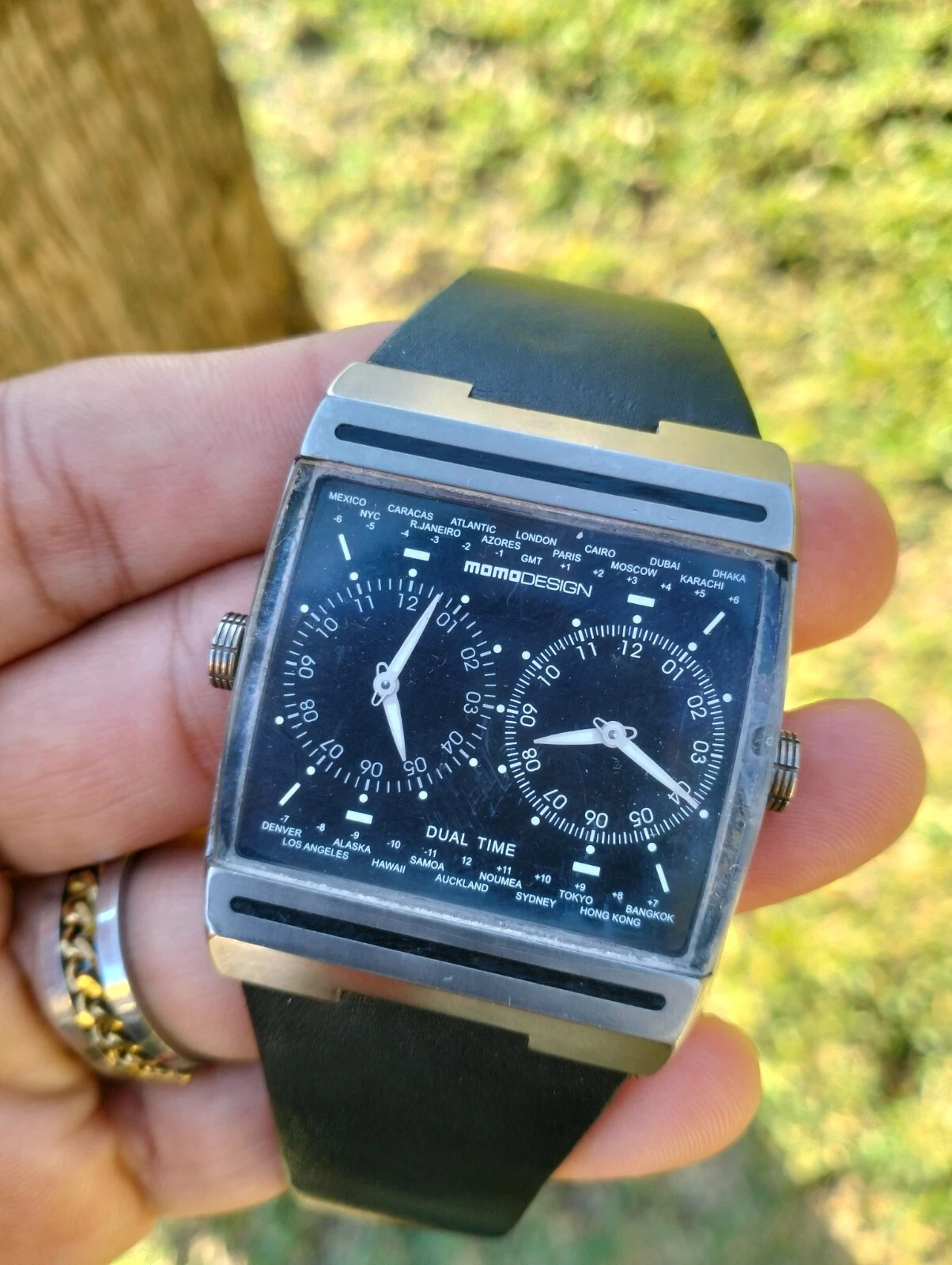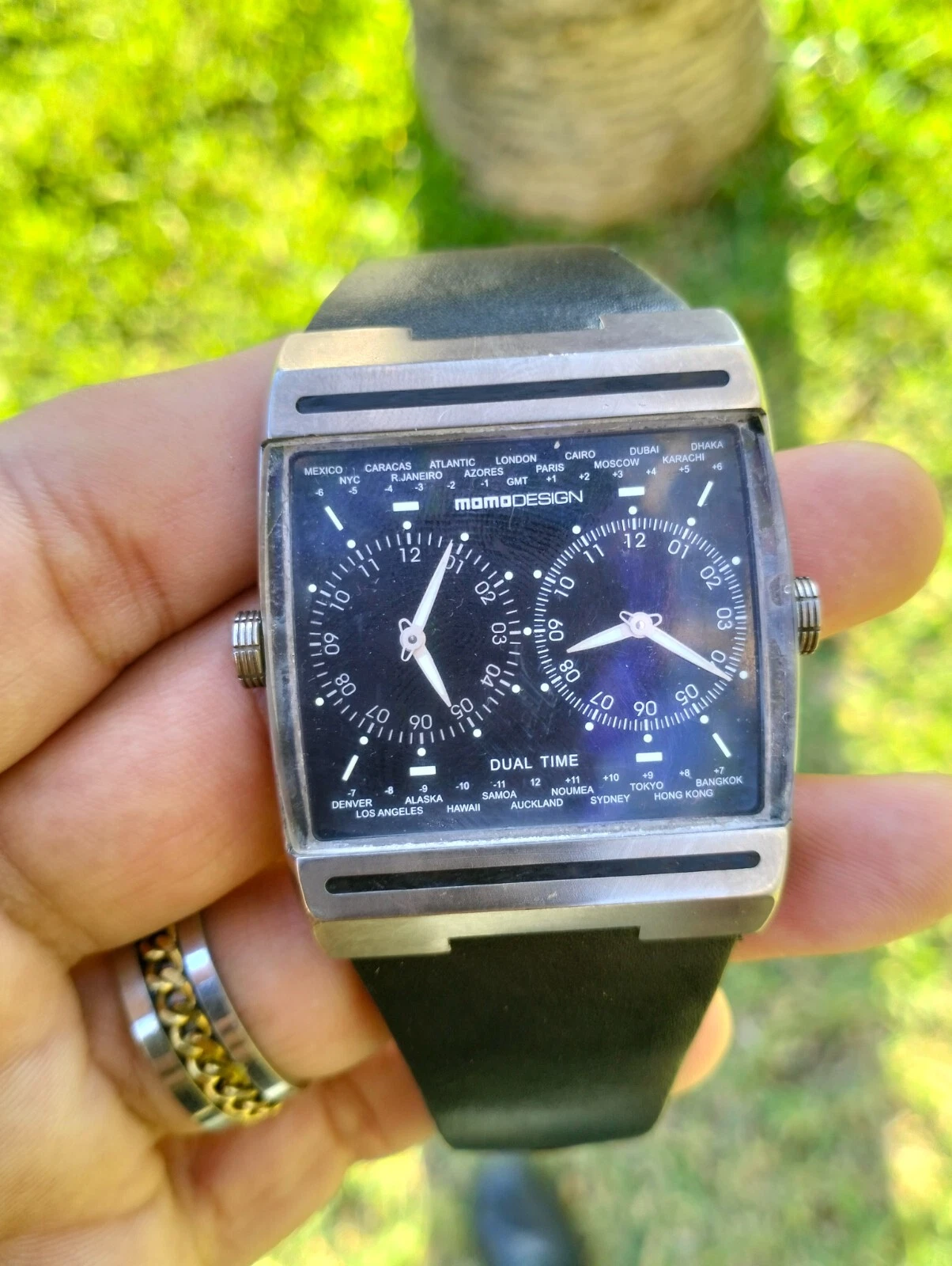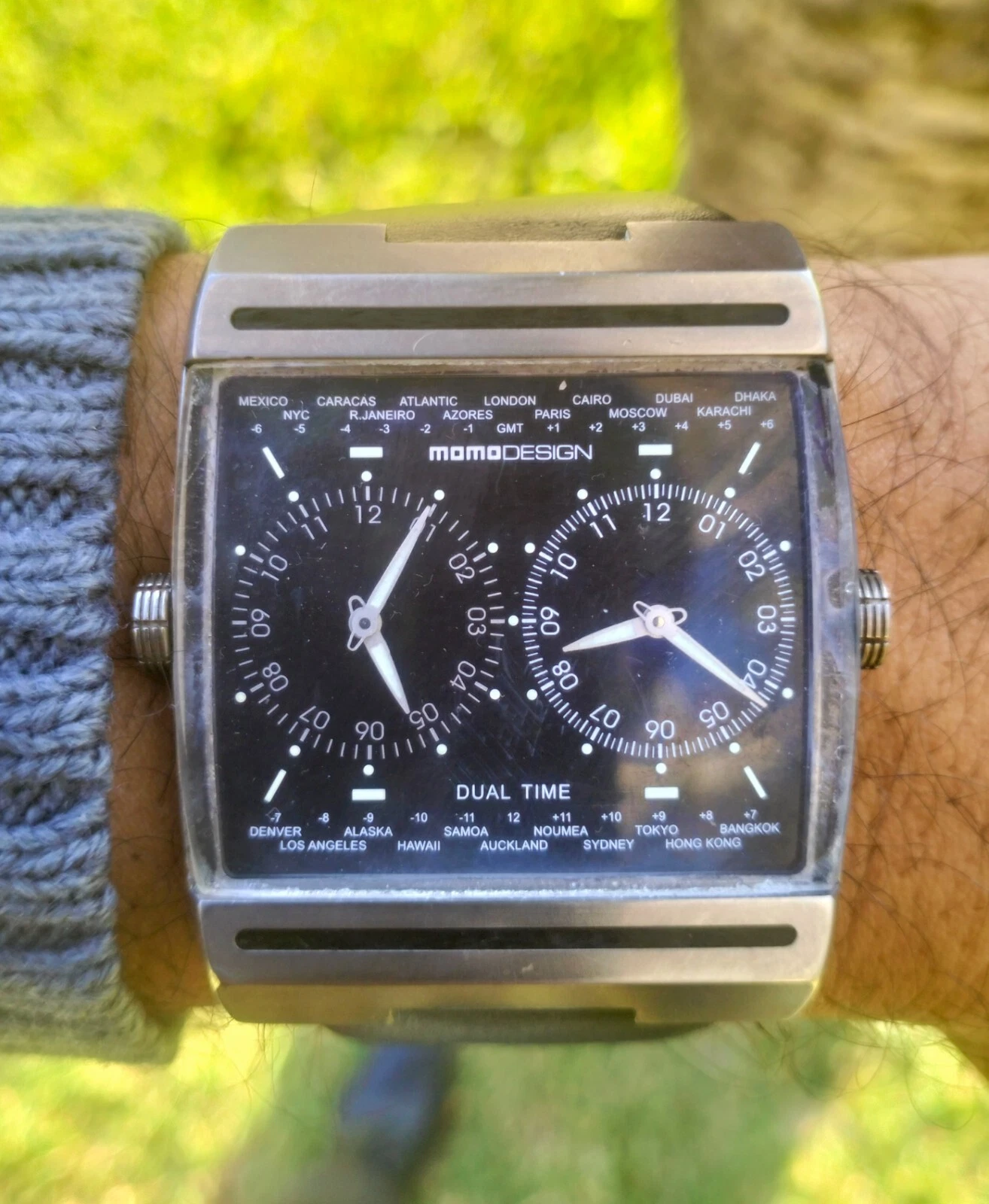 MomoDesign Mens Watch MD-077 Dual Face/Swiss Movement Titanuim World GMT Italy