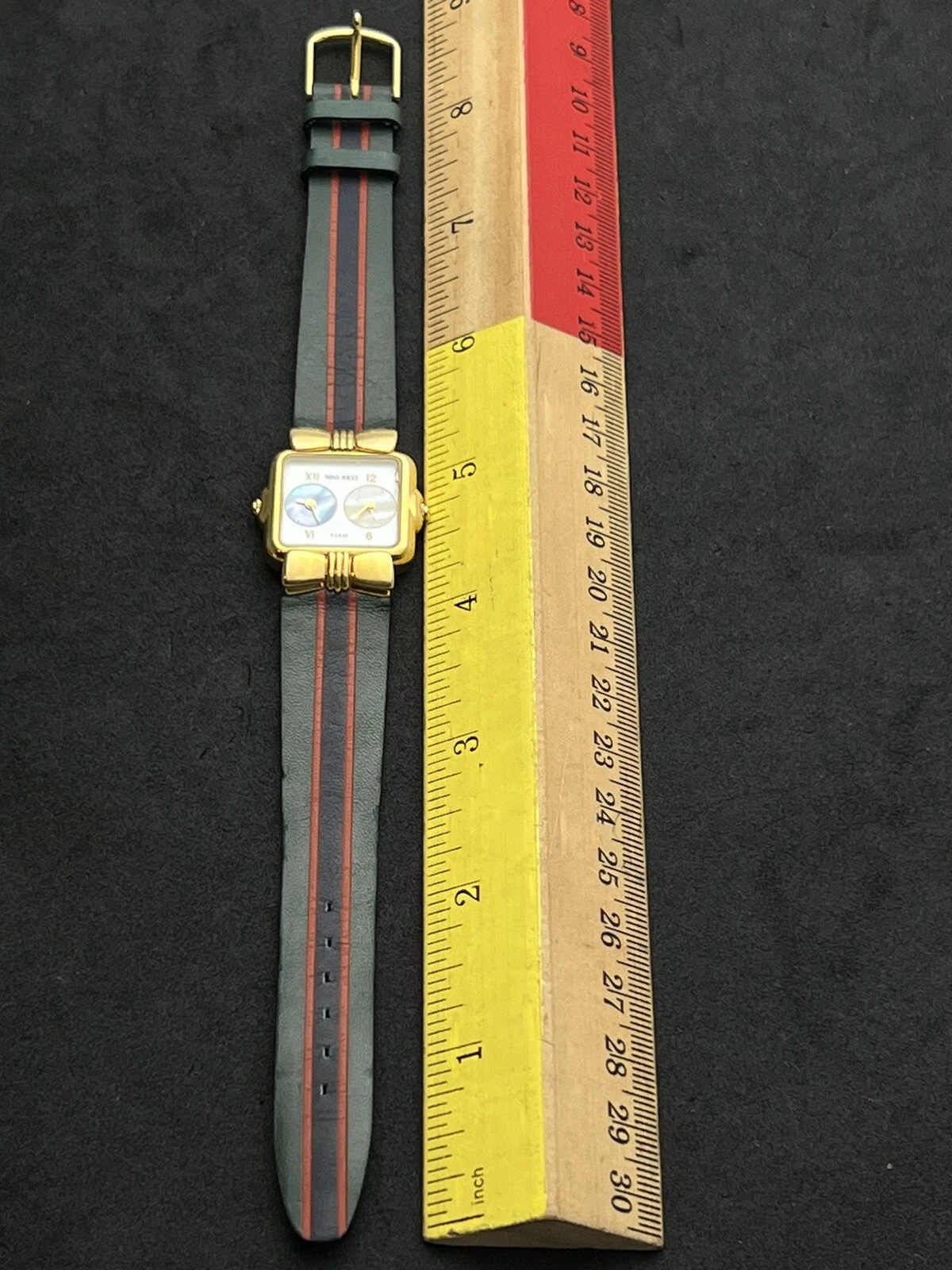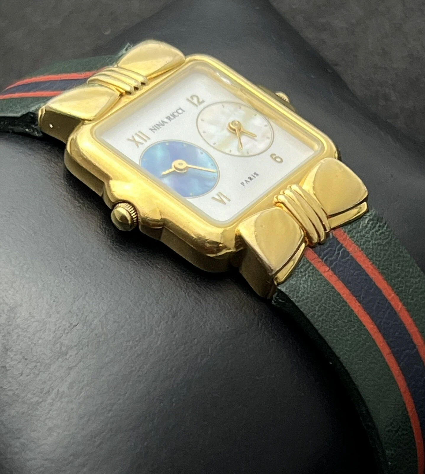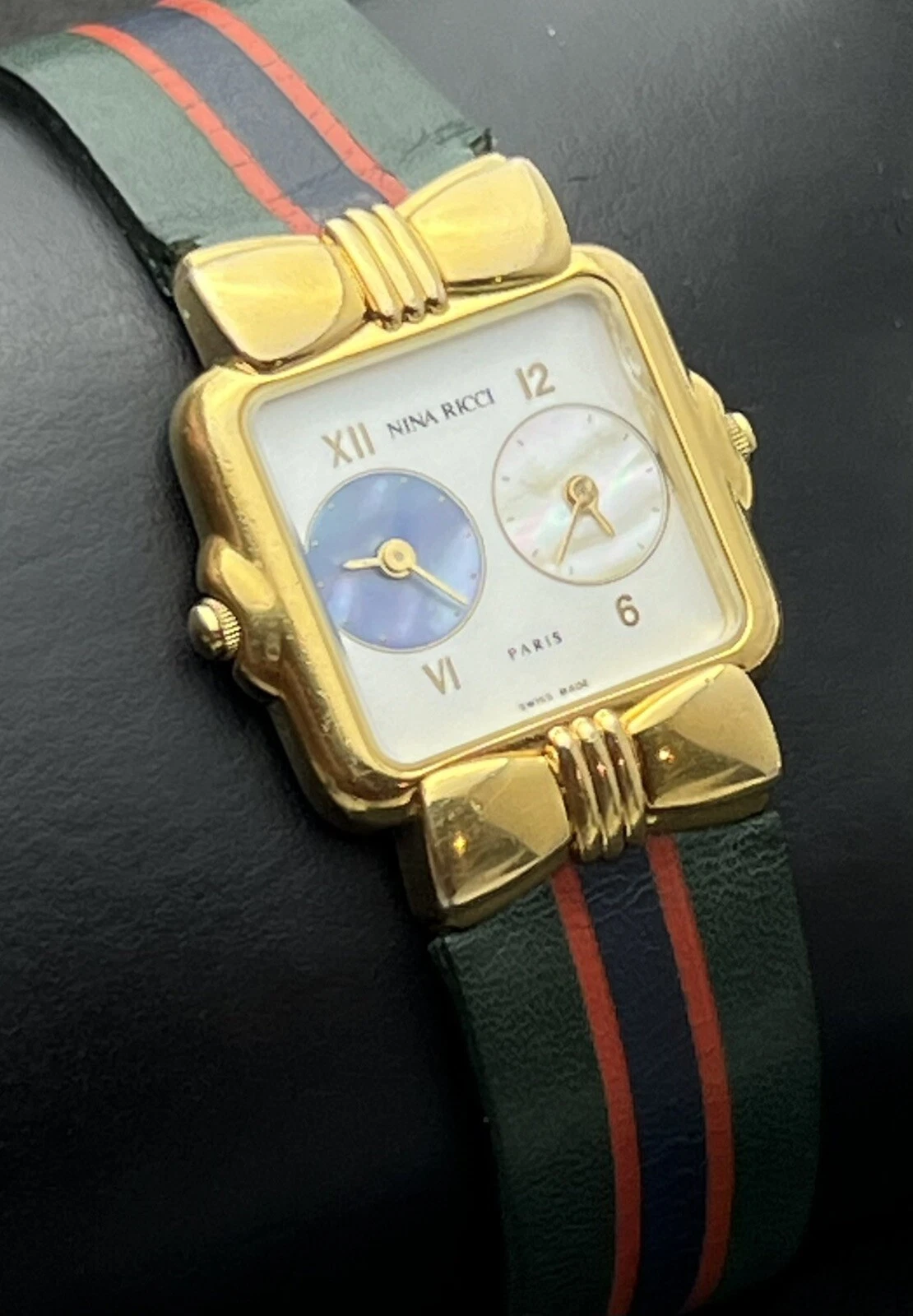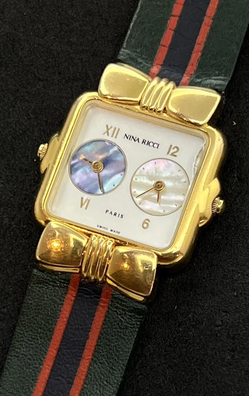 Vintage NINA RICCI Dual Time Women’s 24mm Swiss Quartz Watch 7 Jewels Gold MOP