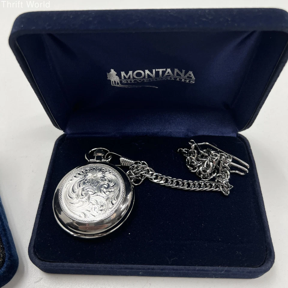 Lot of Two IOP Montana Silversmiths Floral Silver Tone Pocket Watches Not Tested