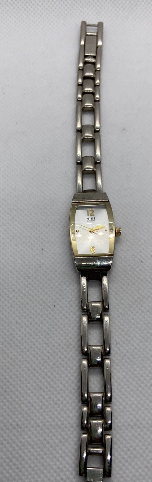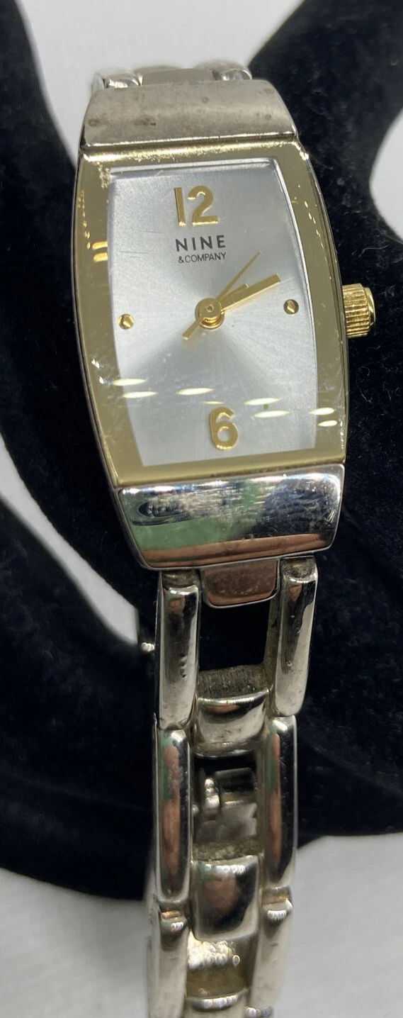 Nine & Co. Ladies Watch New Battery Silver Gold Tone Rectangle Shape