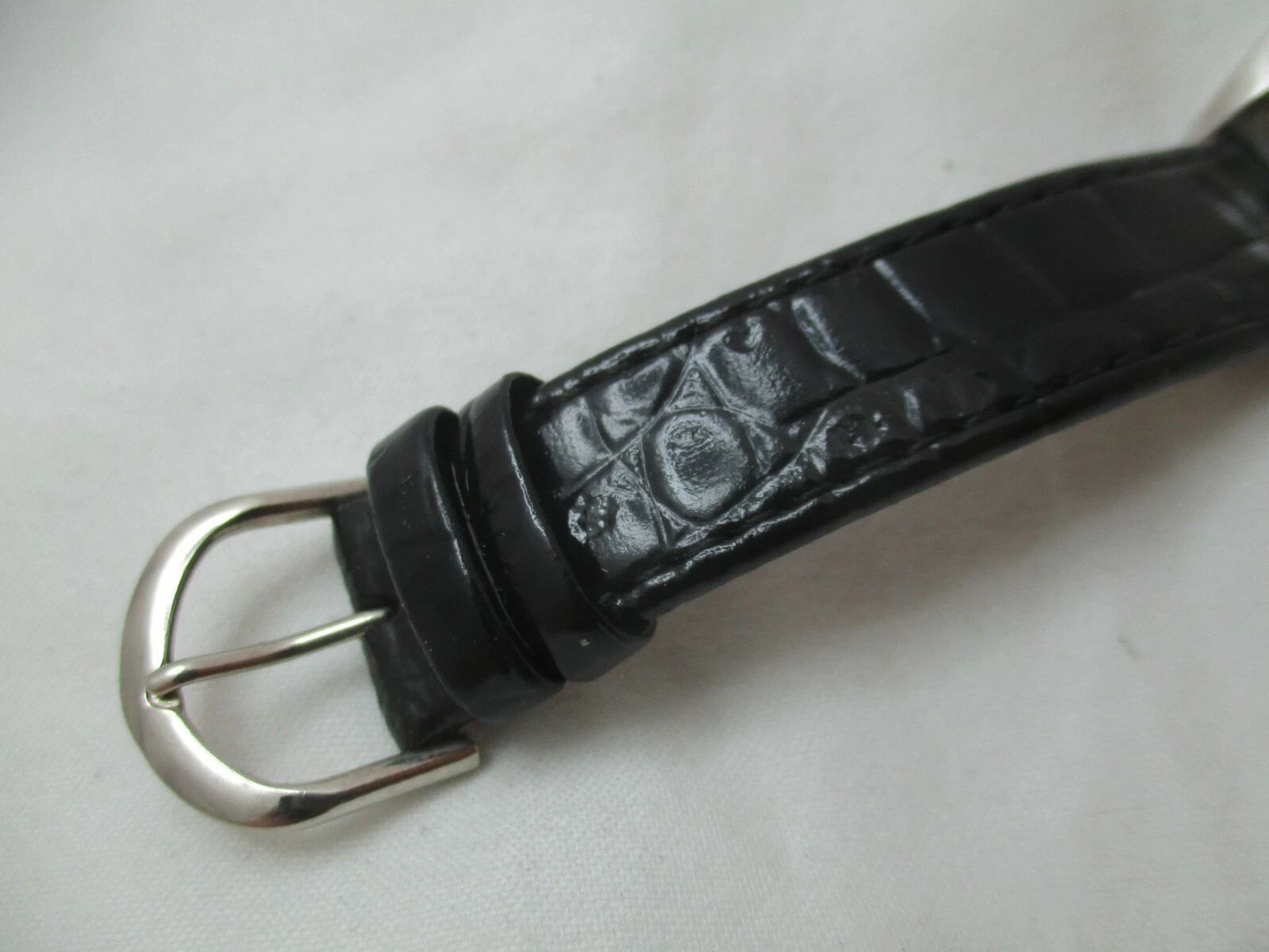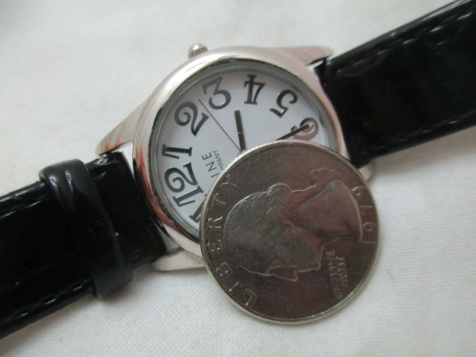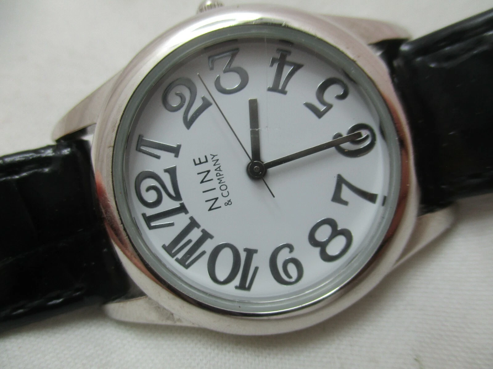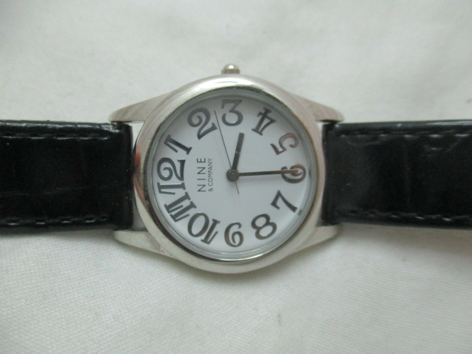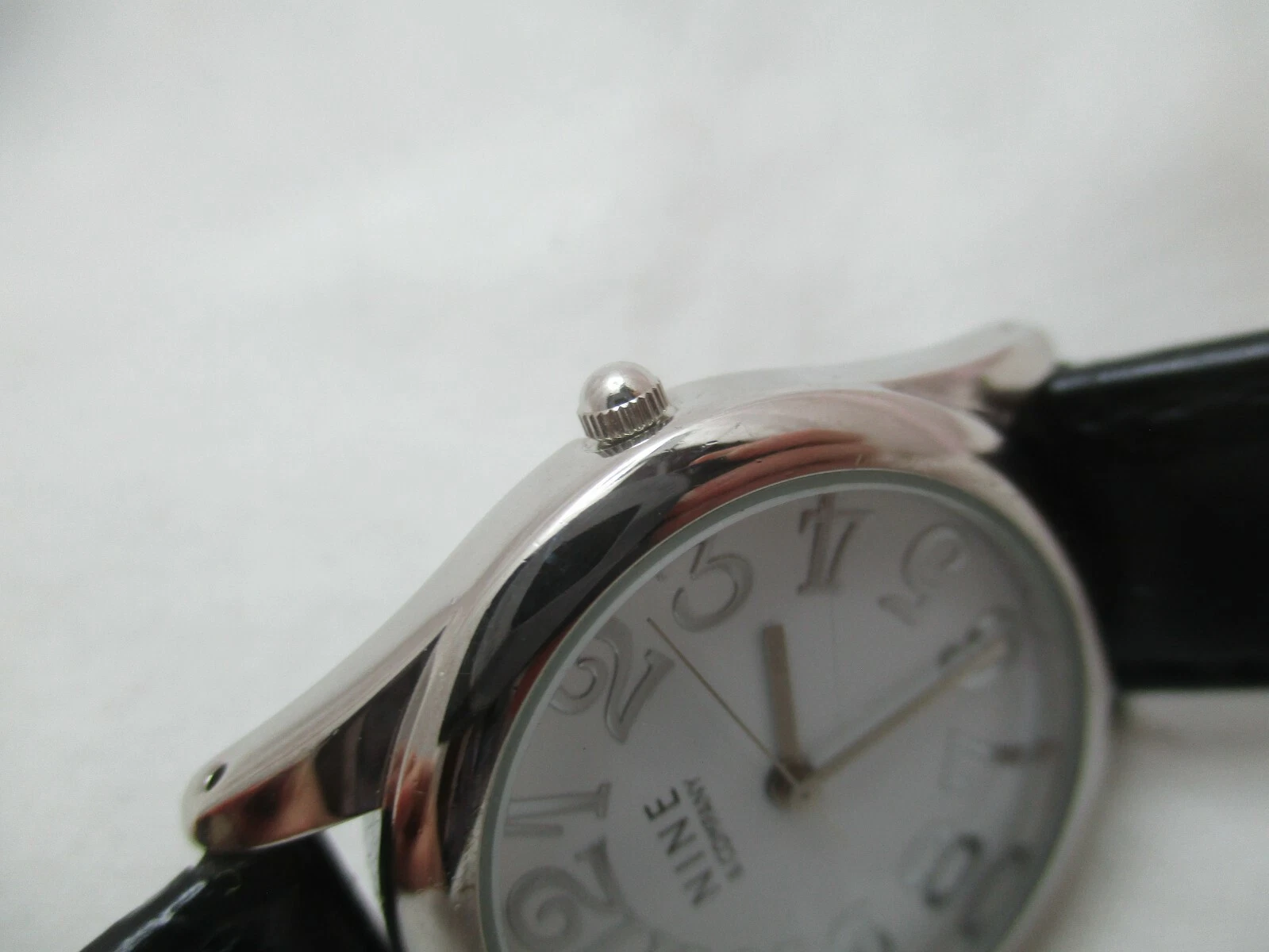 Nine & Company Watch Black Buckle Band Round White Face Silver Tone