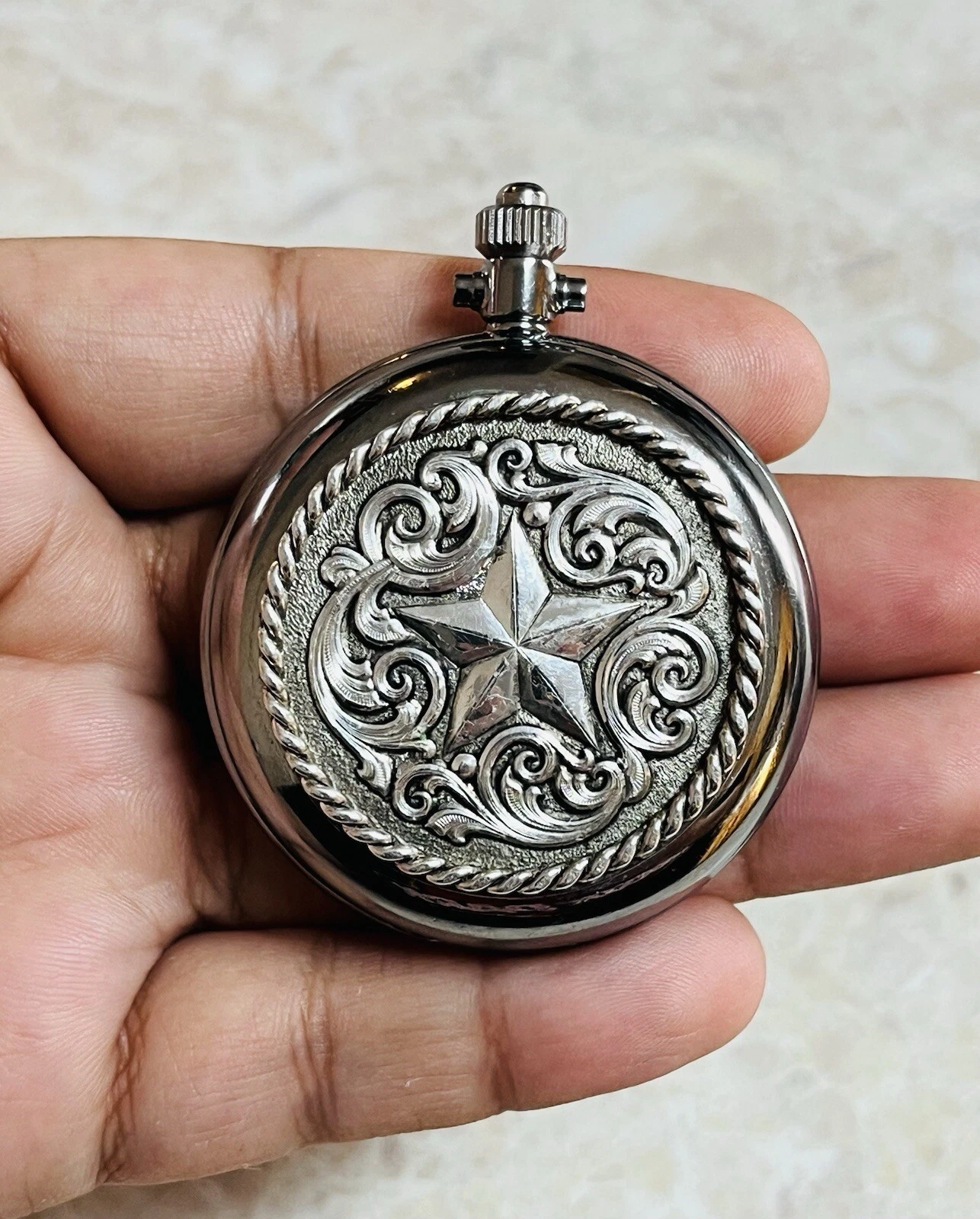 Montana Silversmiths Western Silver Plate Pocket Watch