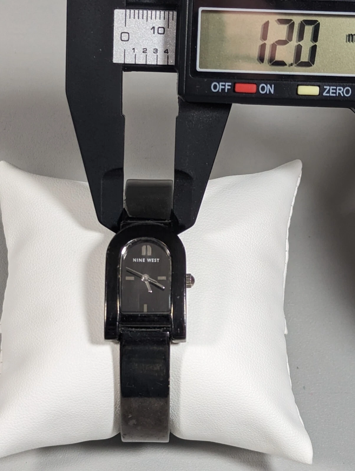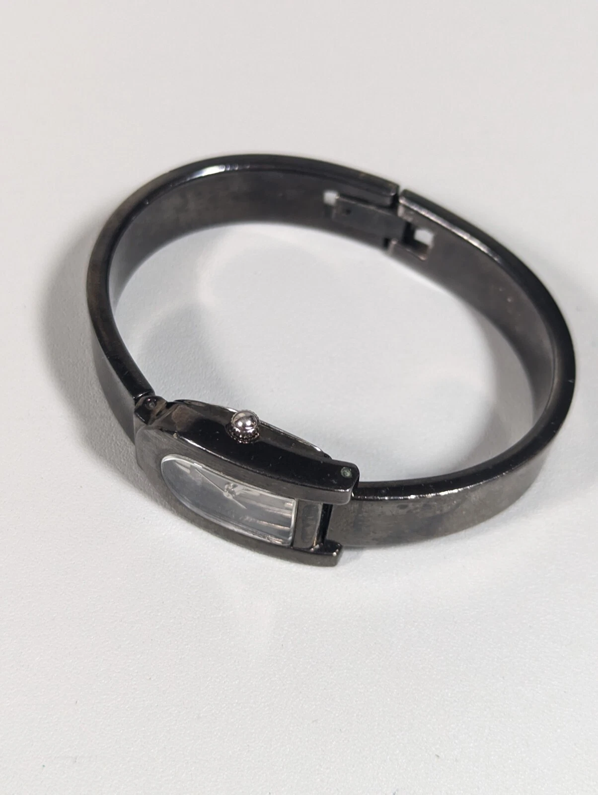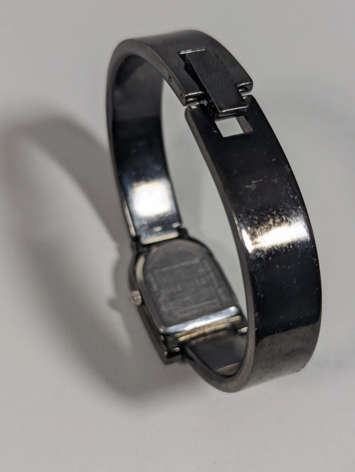 Nine West Black Horse Shoe Shape Case Hinge Bracelet Band Watch 6.5 Inch