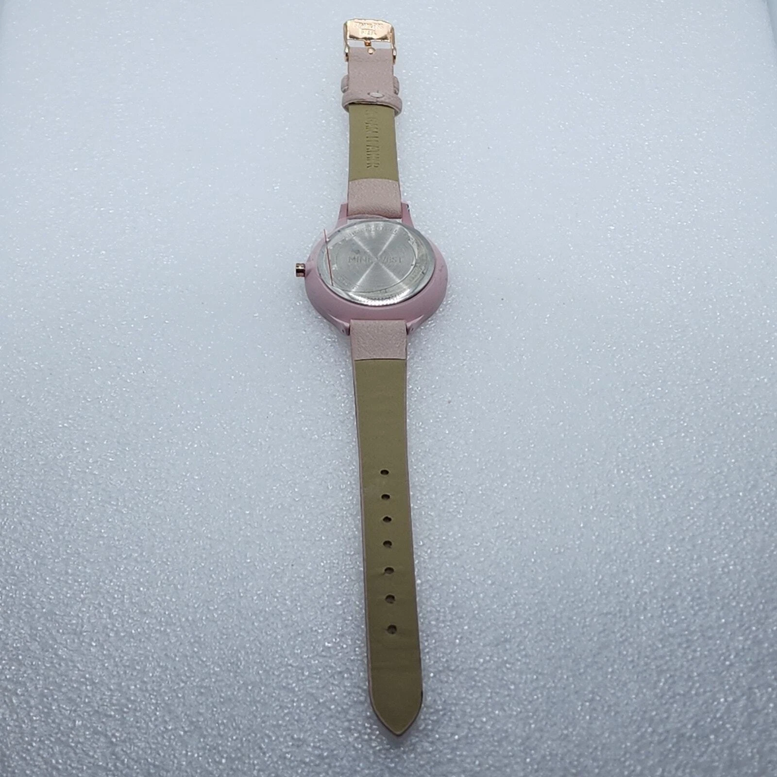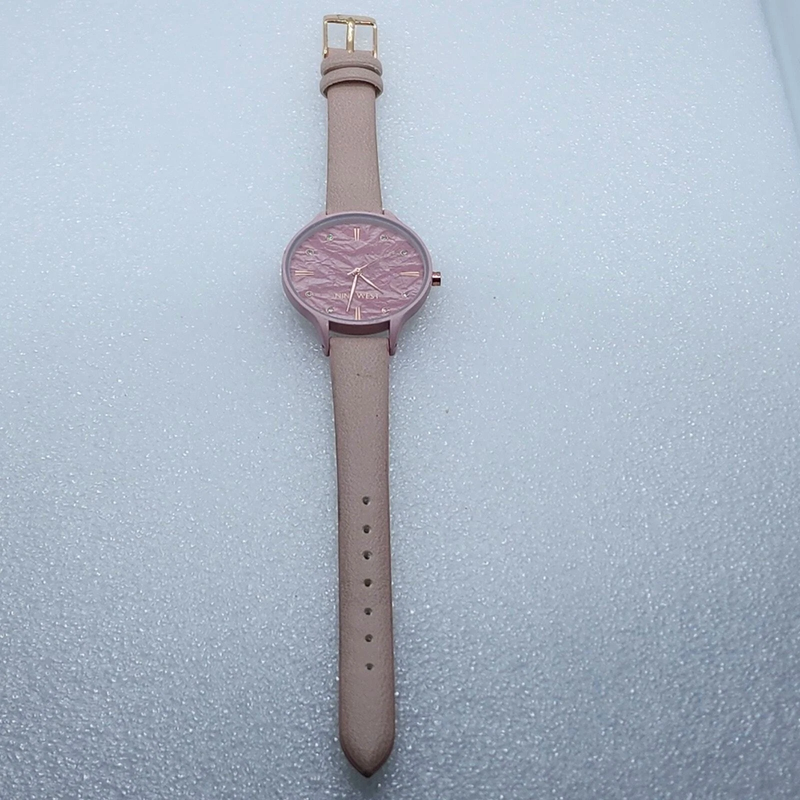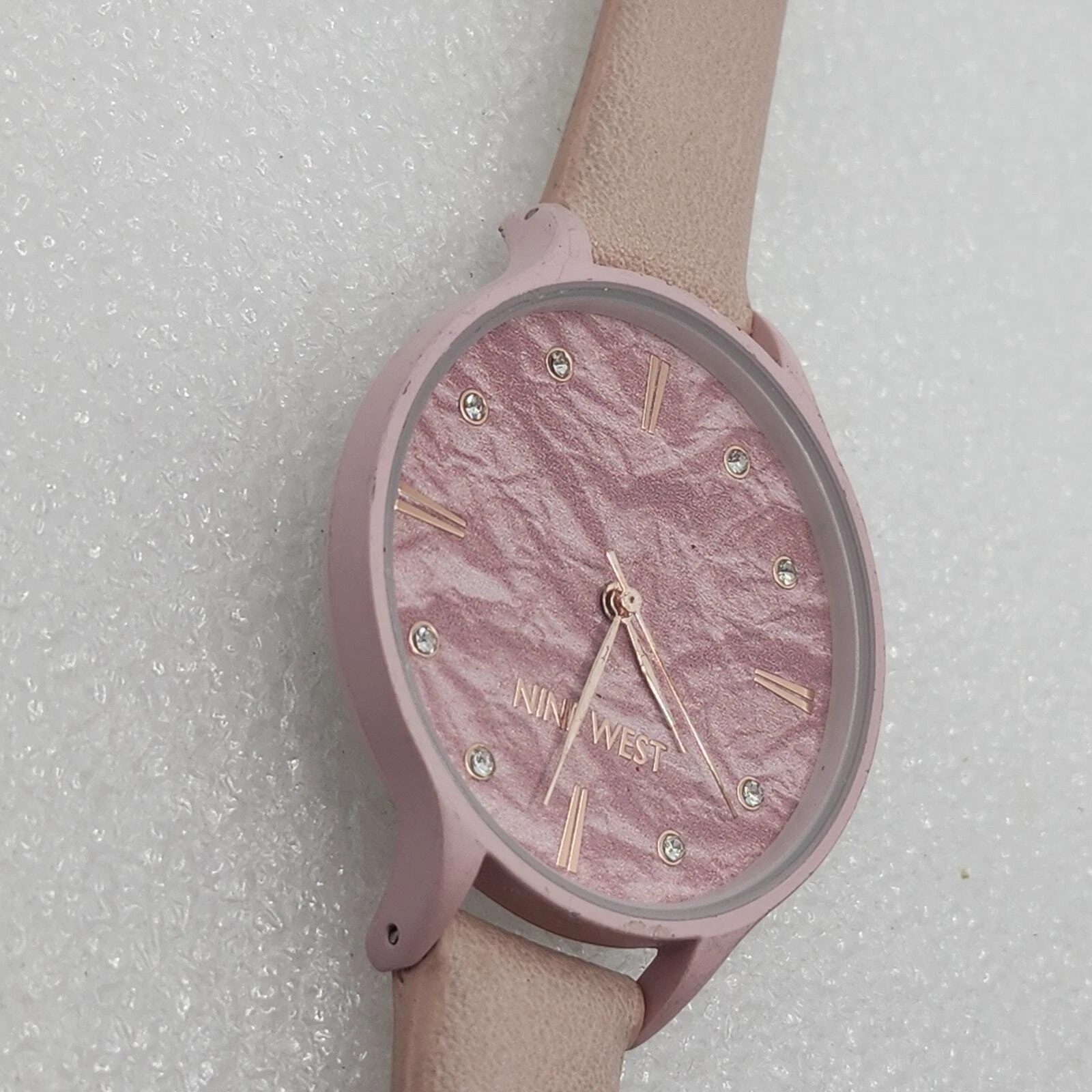 Nine West Pink Carnation Rose Pedal Paper Mache Dial Crystal Accent 36mm Watch