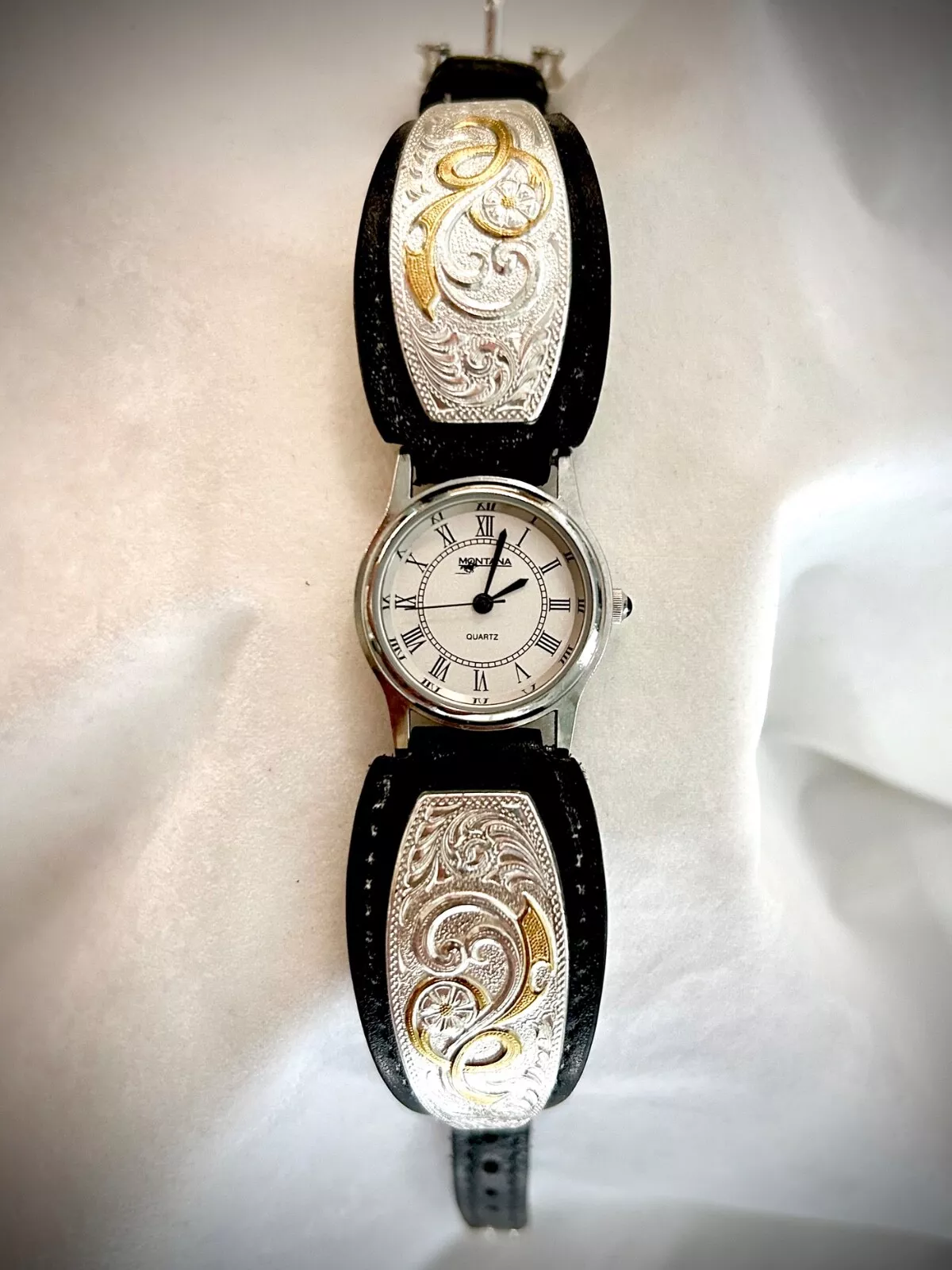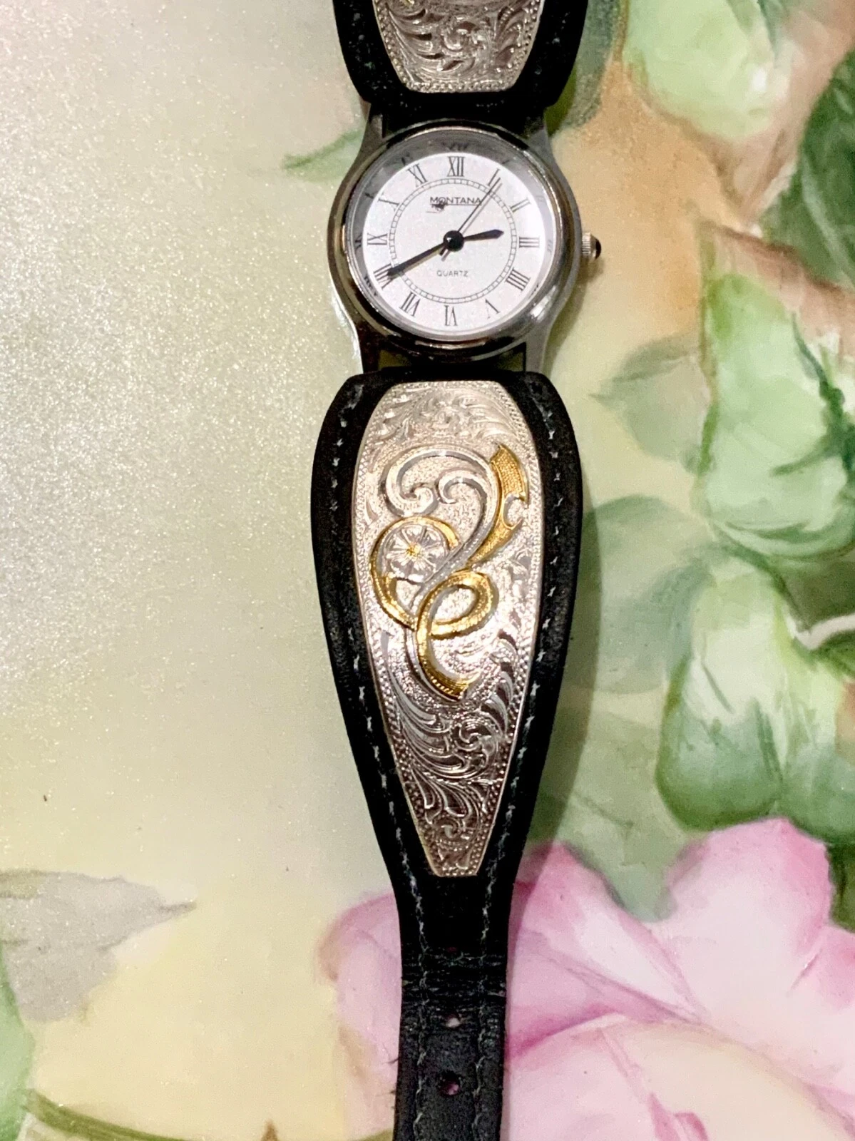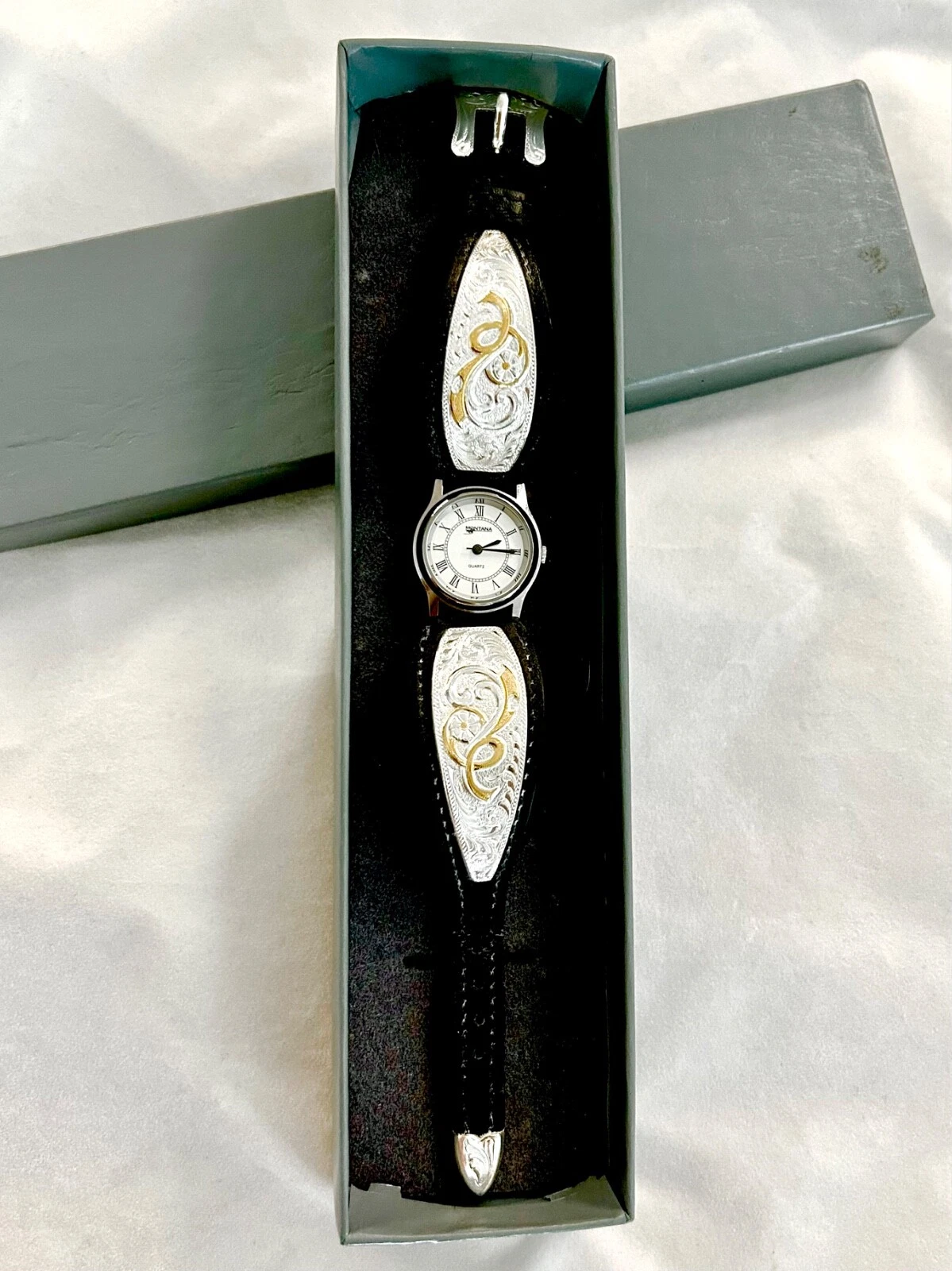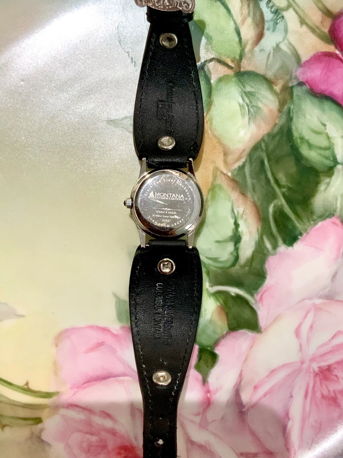 Montana Silversmiths Watch Leather Band Silver Plate Crystal Clear Glass