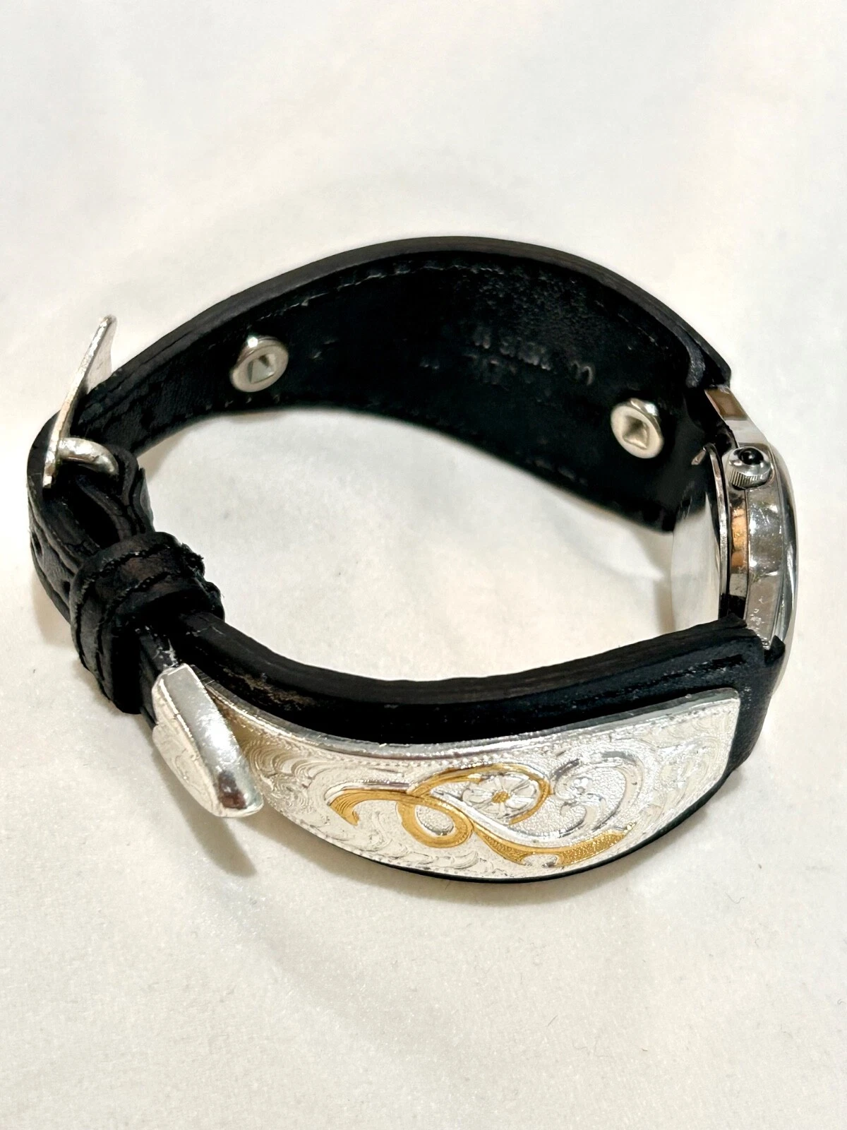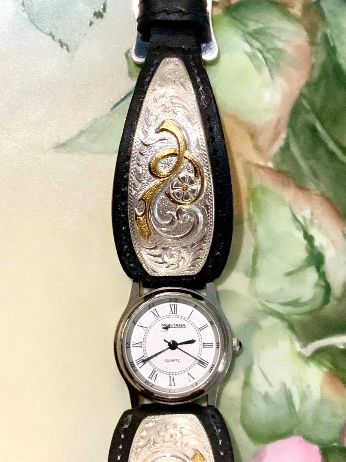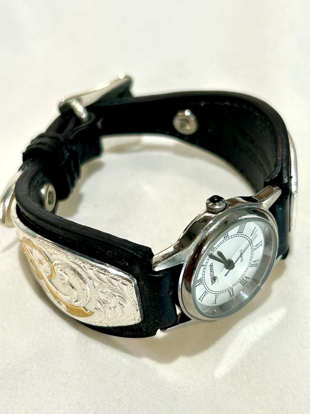 Montana Silversmiths Watch Leather Band Silver Plate Crystal Clear Glass