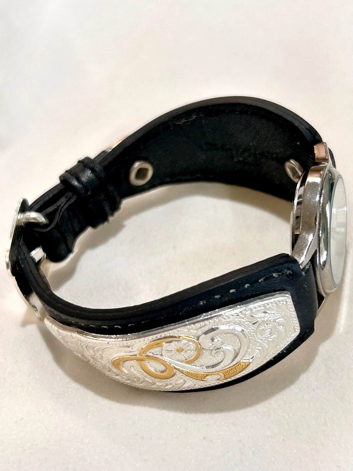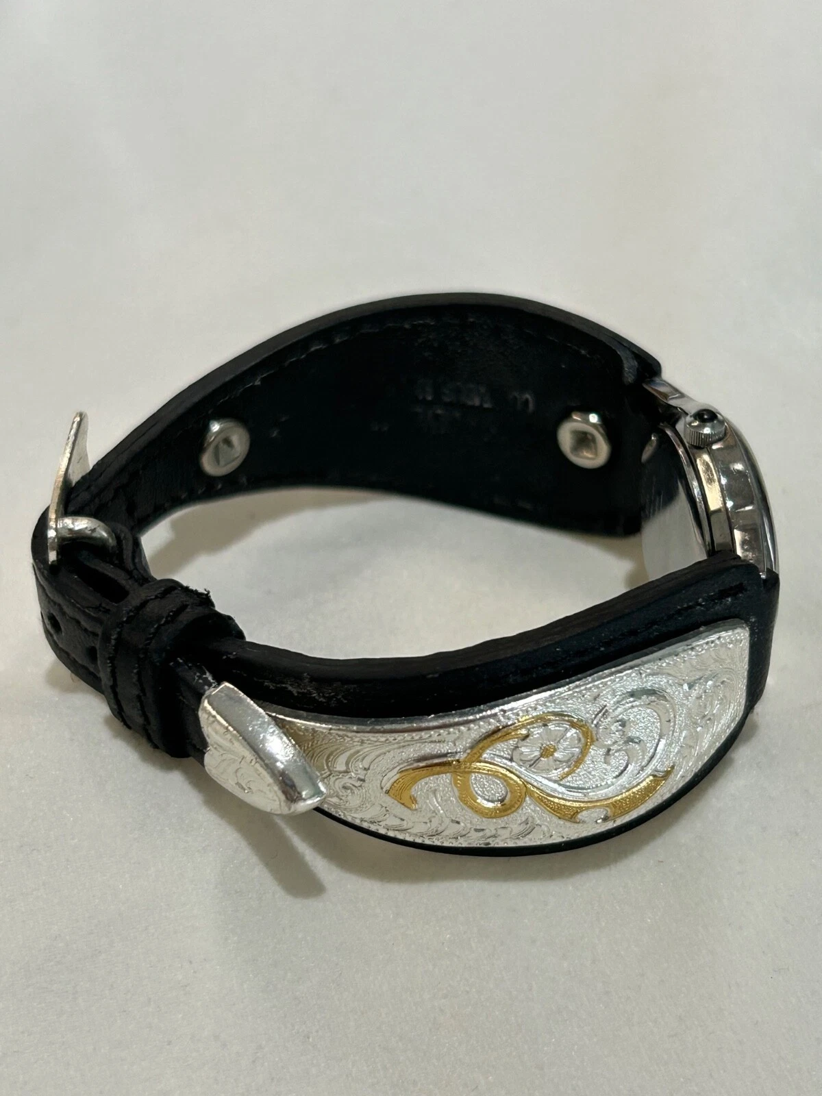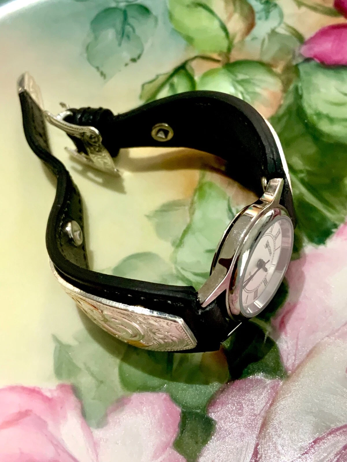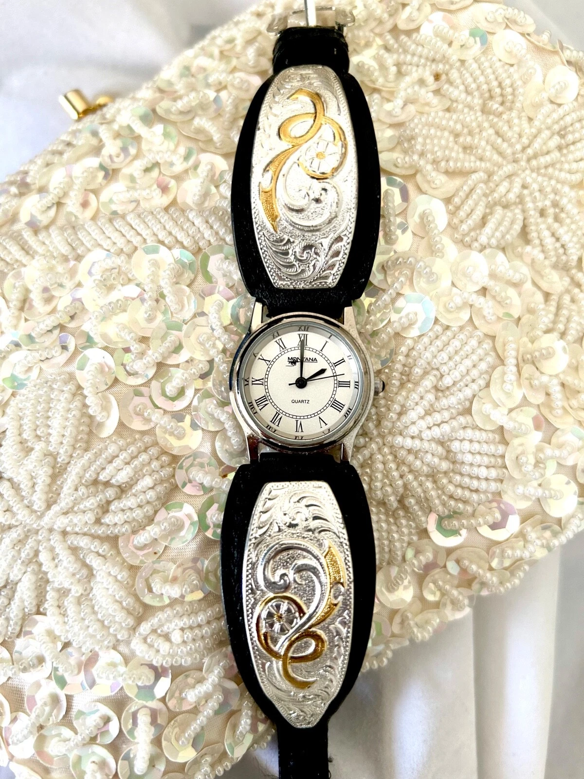 Montana Silversmiths Watch Leather Band Silver Plate Crystal Clear Glass
