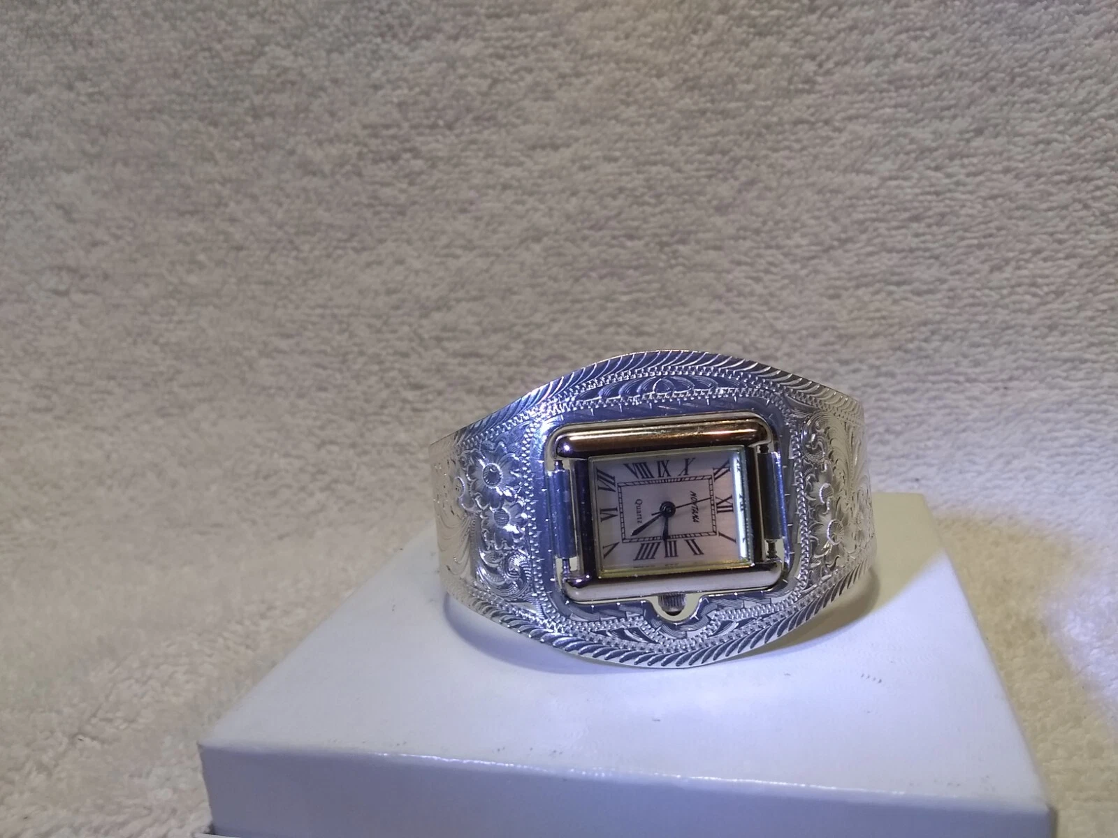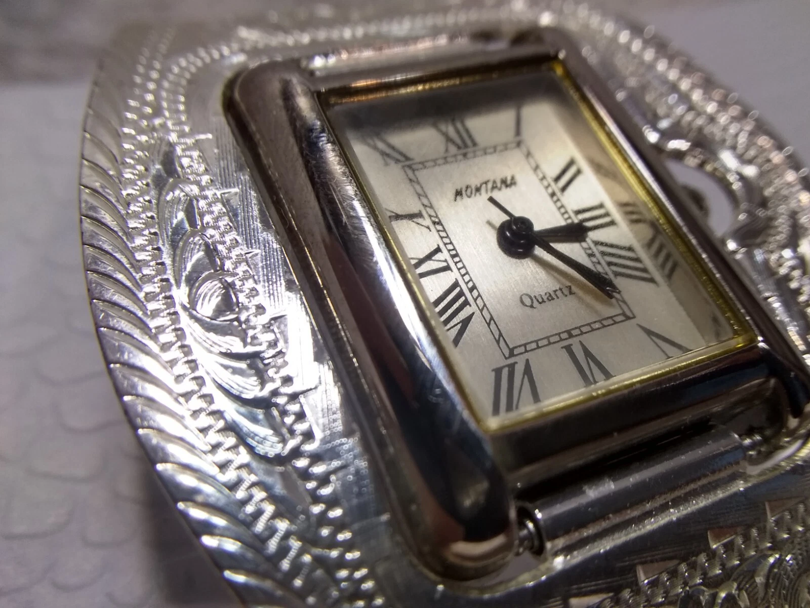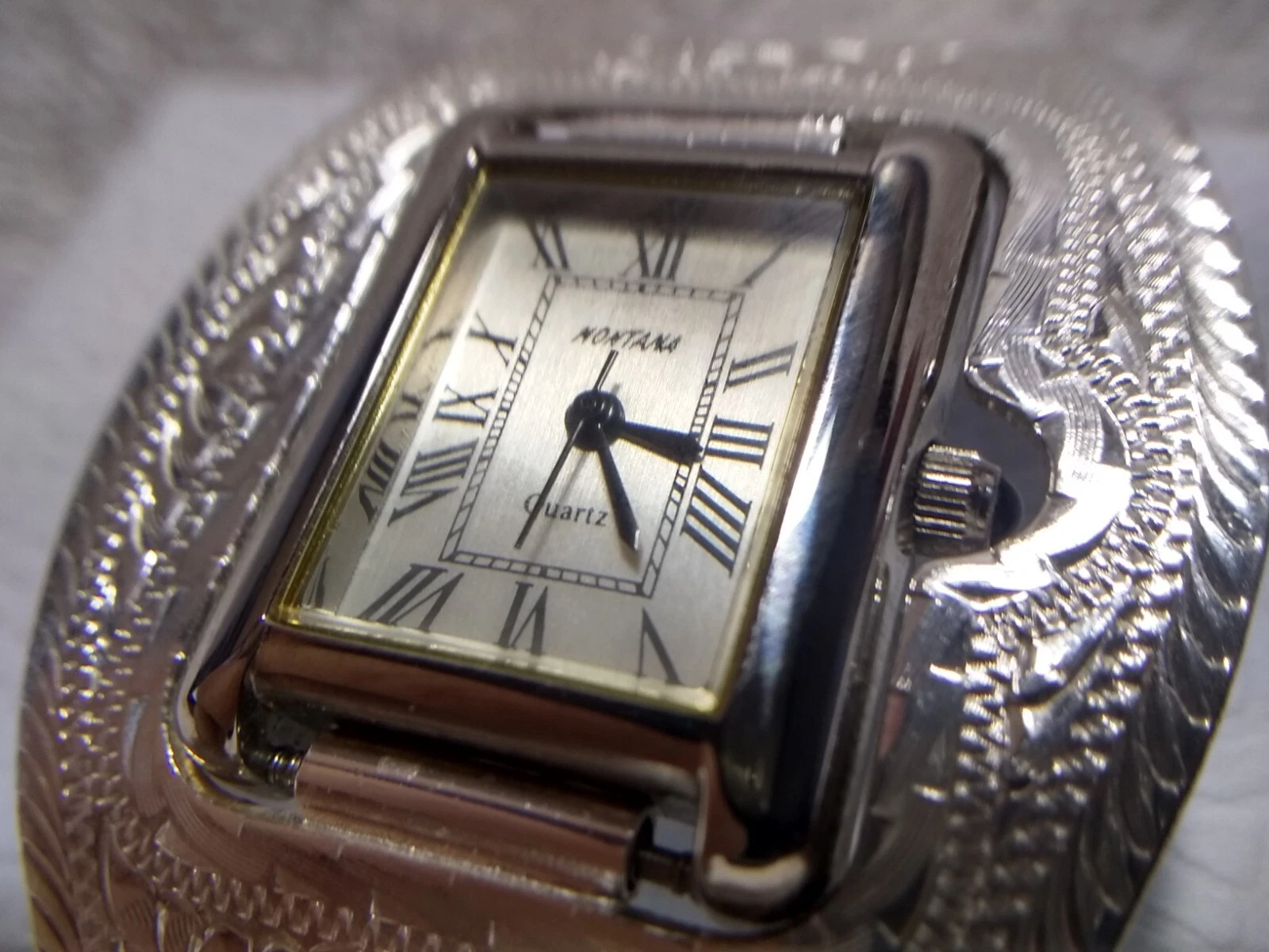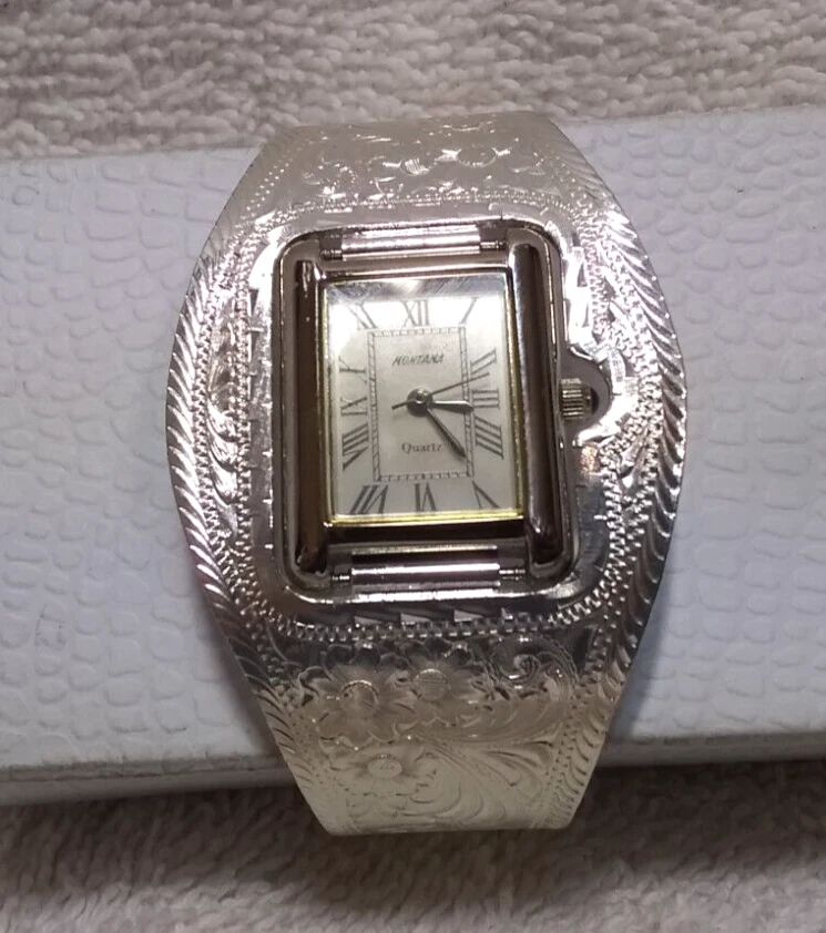 Montana Silversmiths Cuff Watch Silver Flower Filigree New Bat CLR Excellent !!