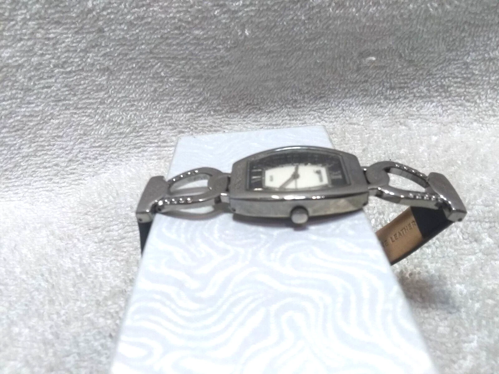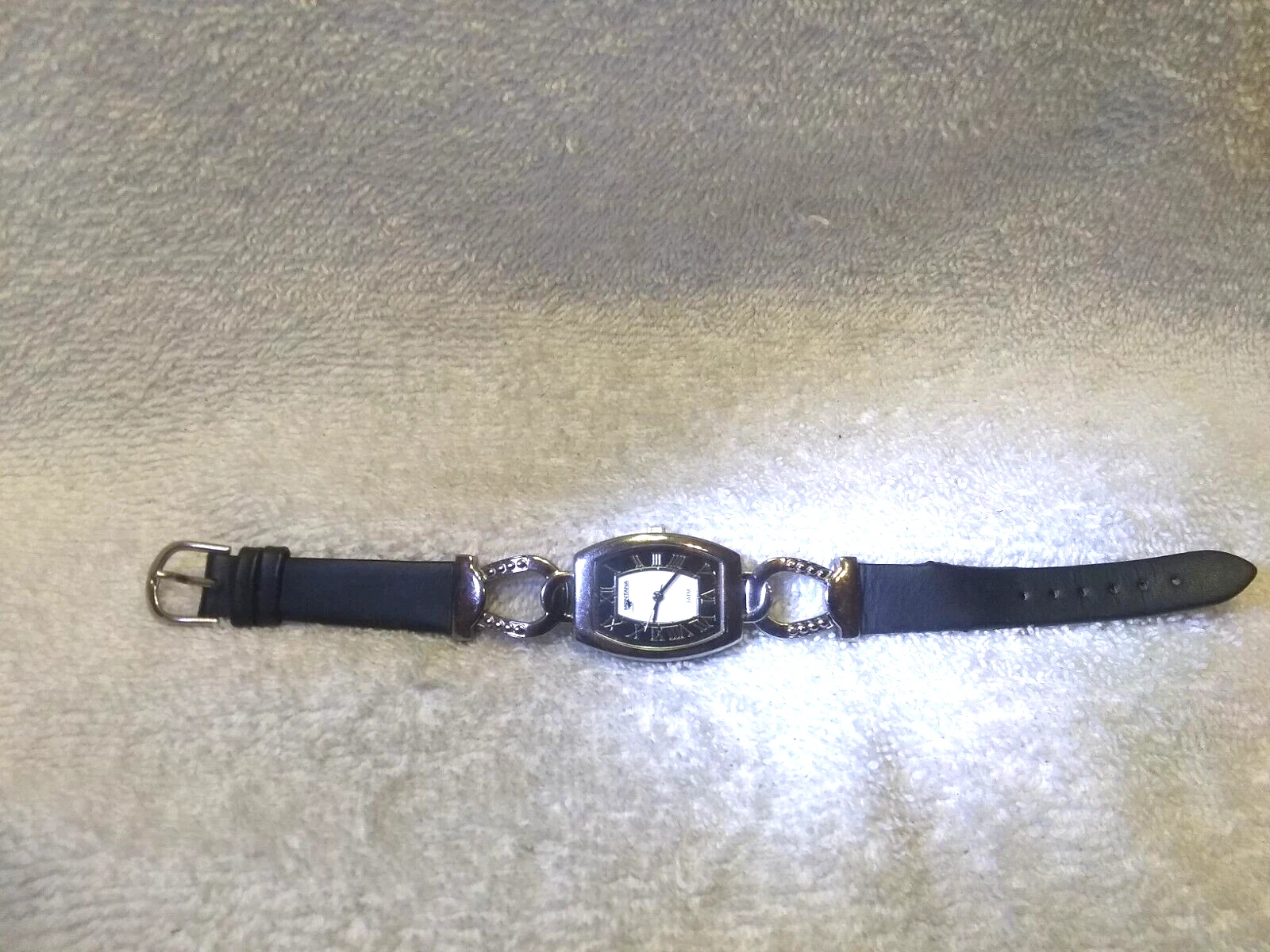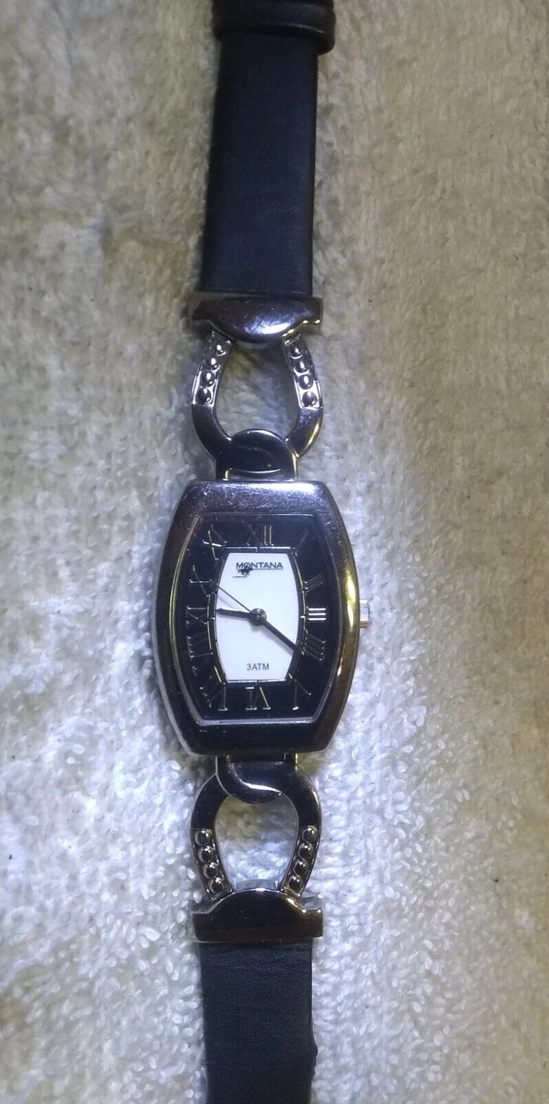 Montana Silversmiths Watch Horseshoe Links Black Leather Band New Bat Great !!!