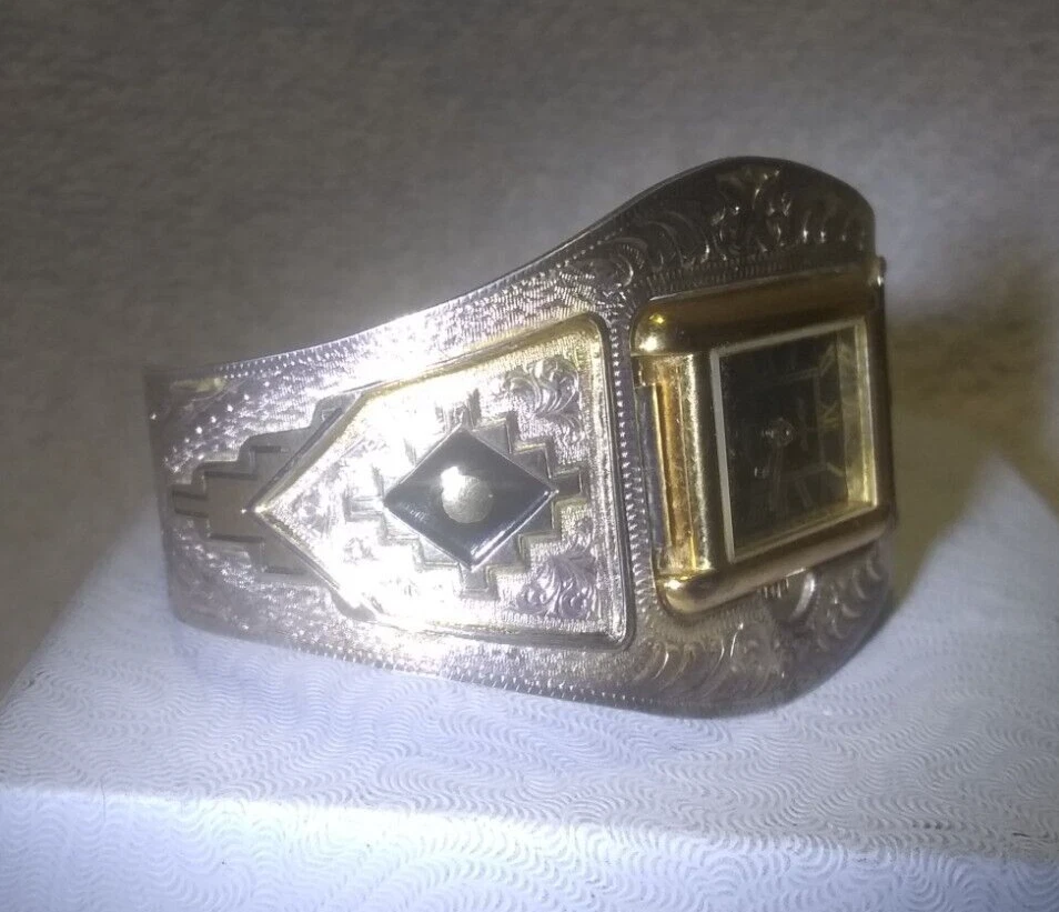 Montana Silversmiths Cuff Watch Southwest Aztec Western Gold New Bat Great 1