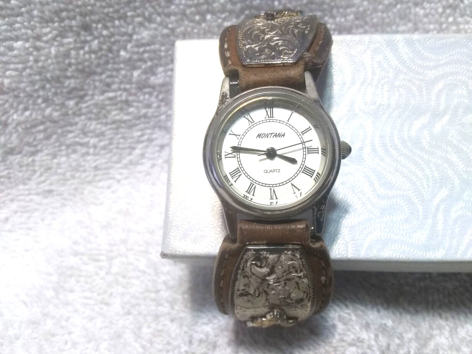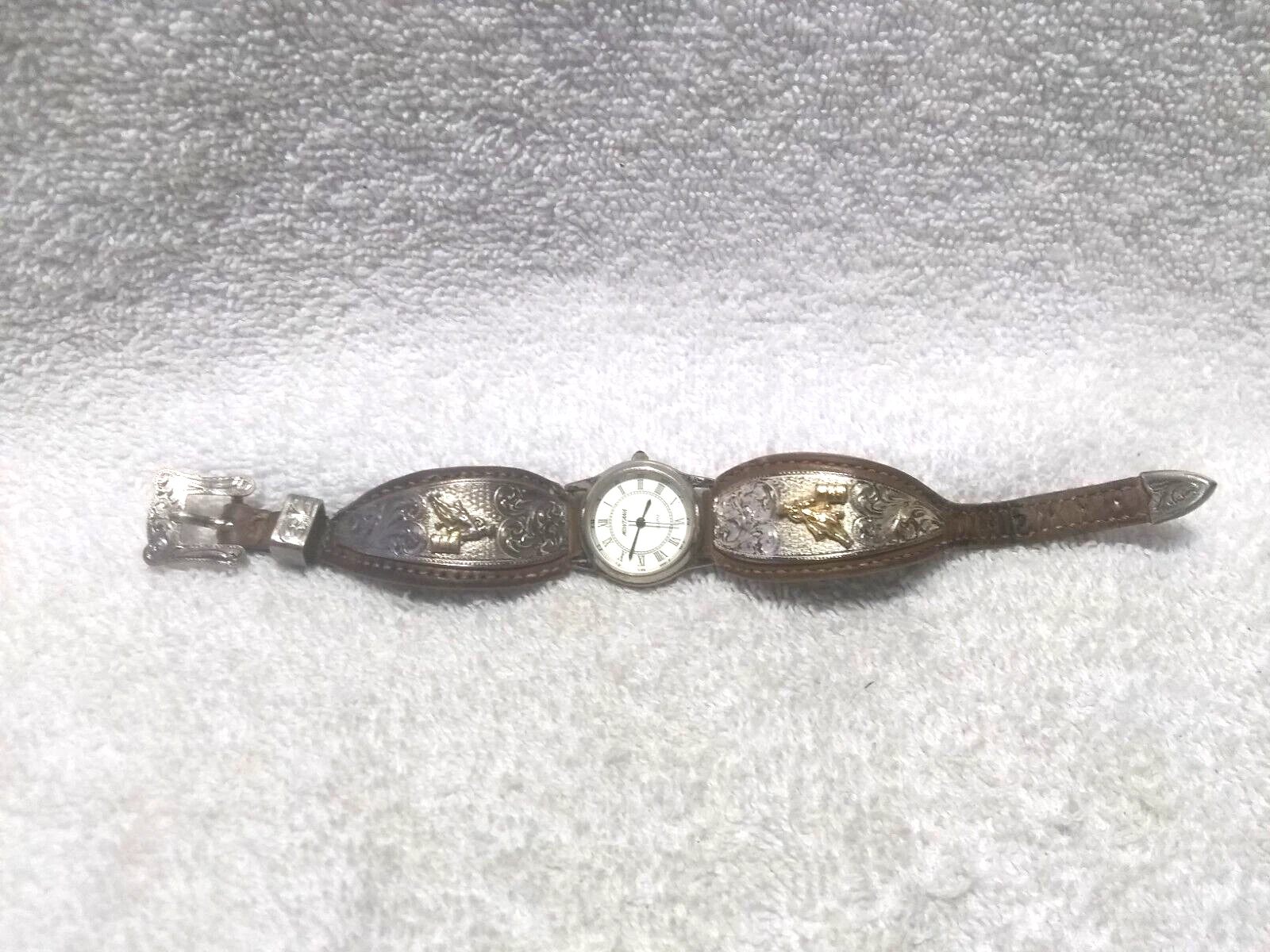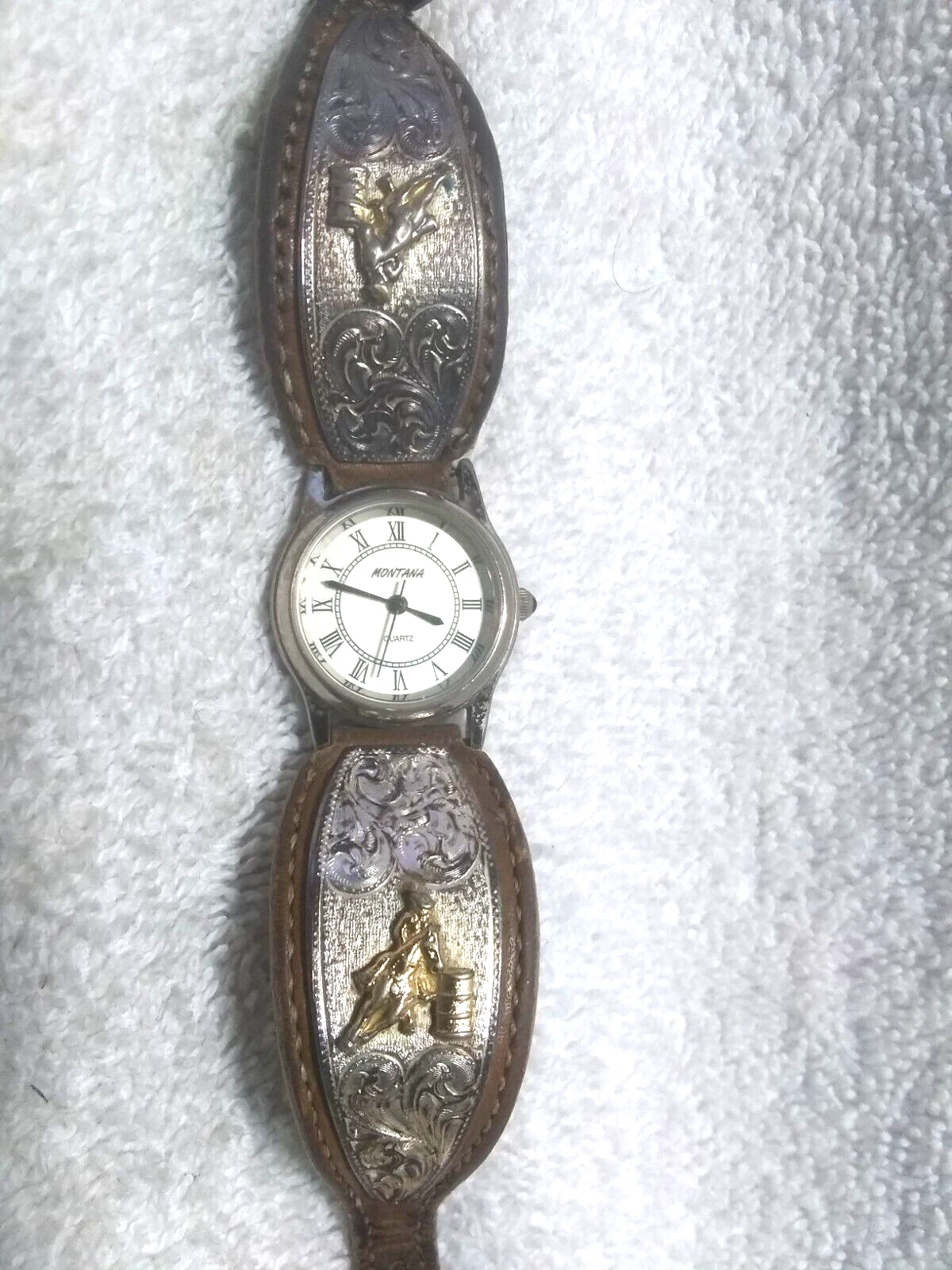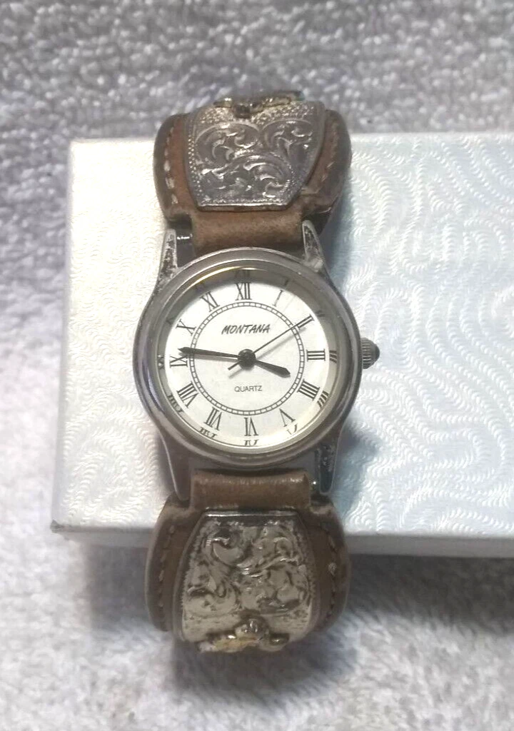 Montana Silversmiths Watch Barrel Race Brown Leather Silver Gold New Bat Vintage