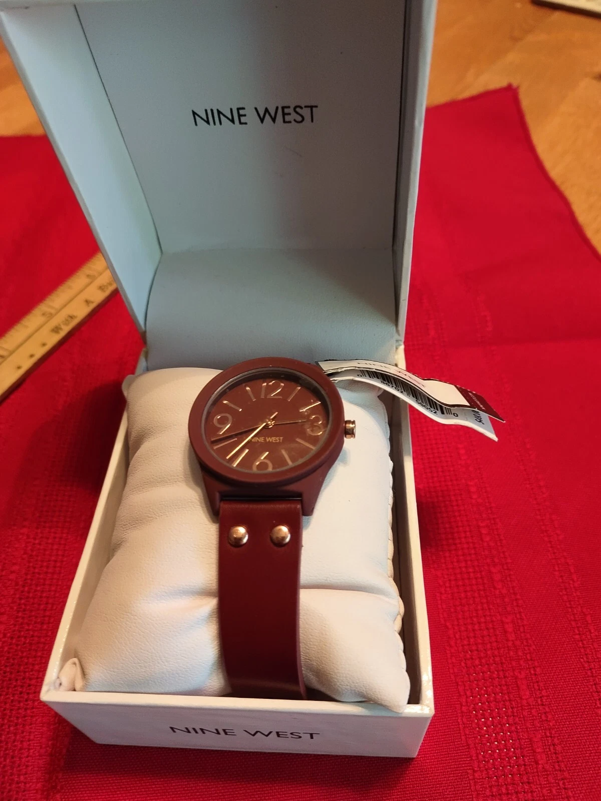 Nine West Women's NW/1932 Burgundy/Red Strap Watch Rose Gold -org $49