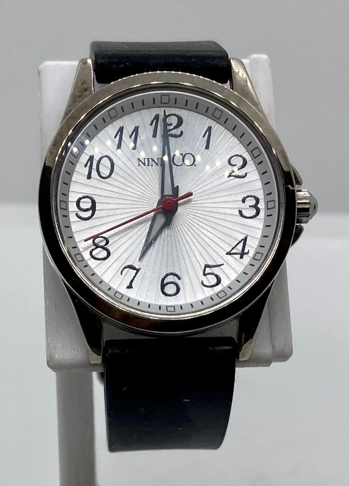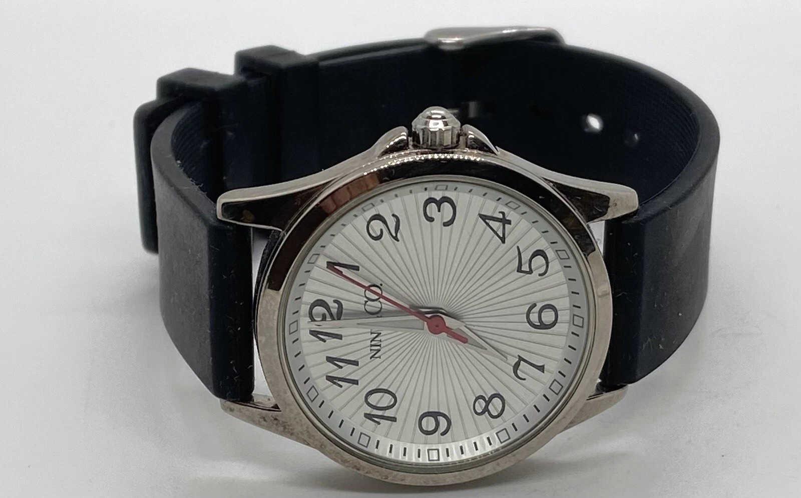 Nine & Co. Ladies Watch New Battery Large Numbers Black Silicone Band