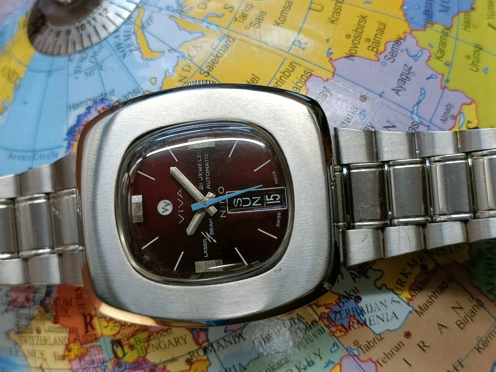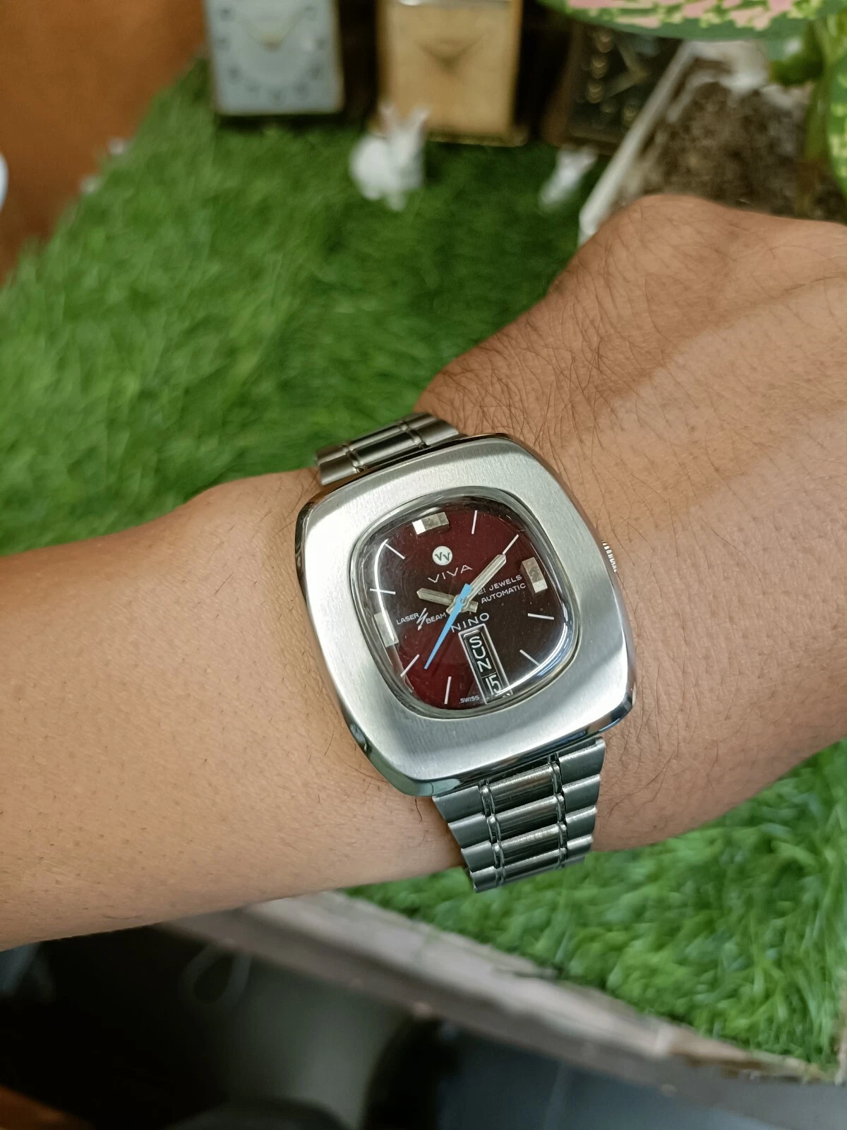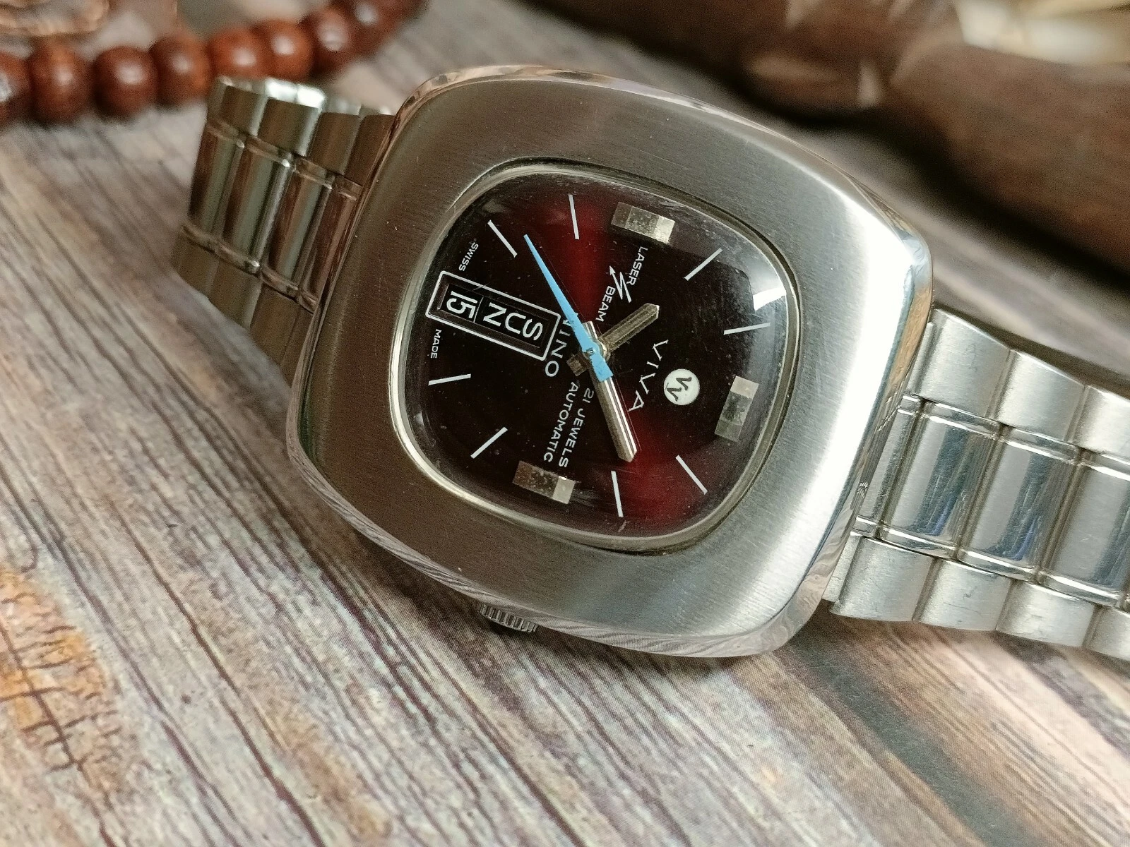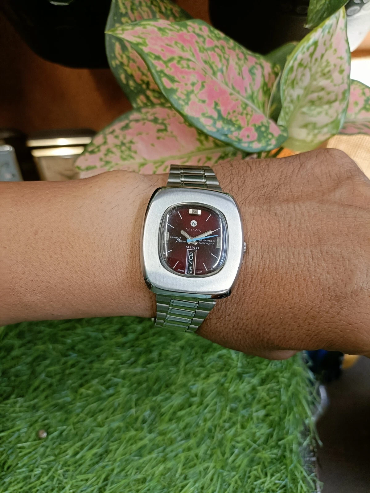 AUTHENTIC NINO VIVA LASER BEAM SWISS AUTOMATIC MENS MINT WINE DIAL VINTAGE WATCH