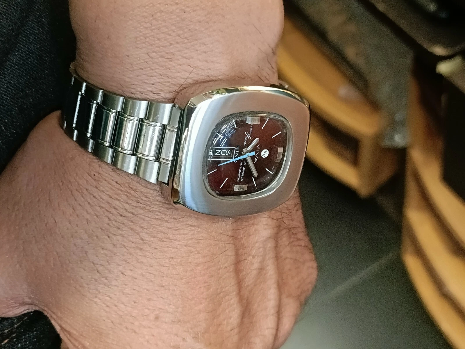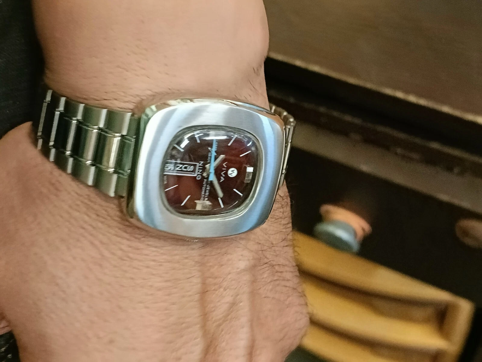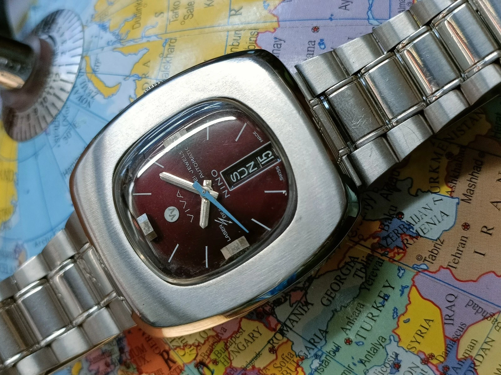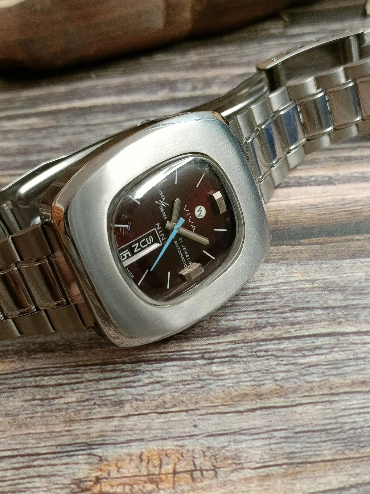 AUTHENTIC NINO VIVA LASER BEAM SWISS AUTOMATIC MENS MINT WINE DIAL VINTAGE WATCH