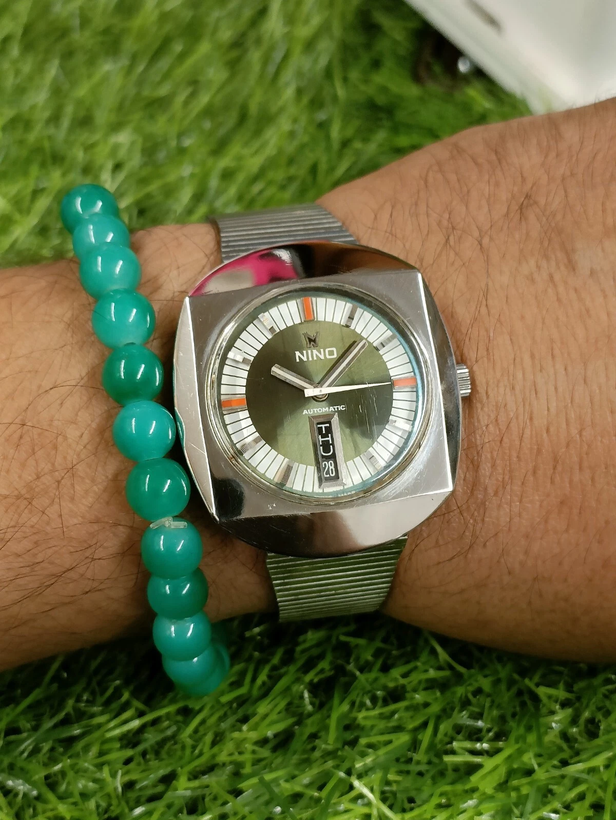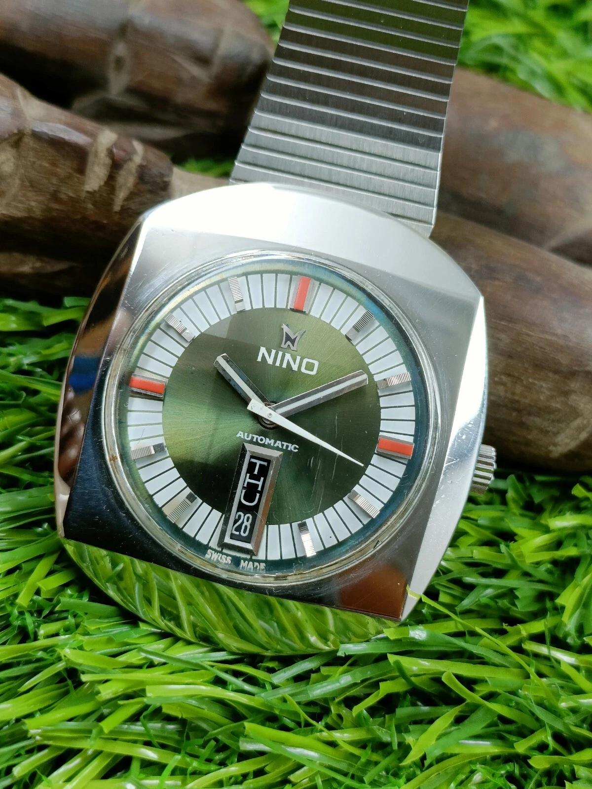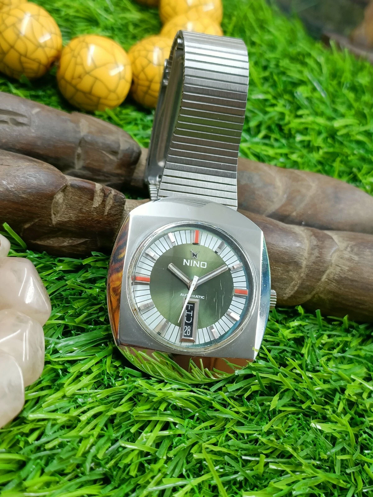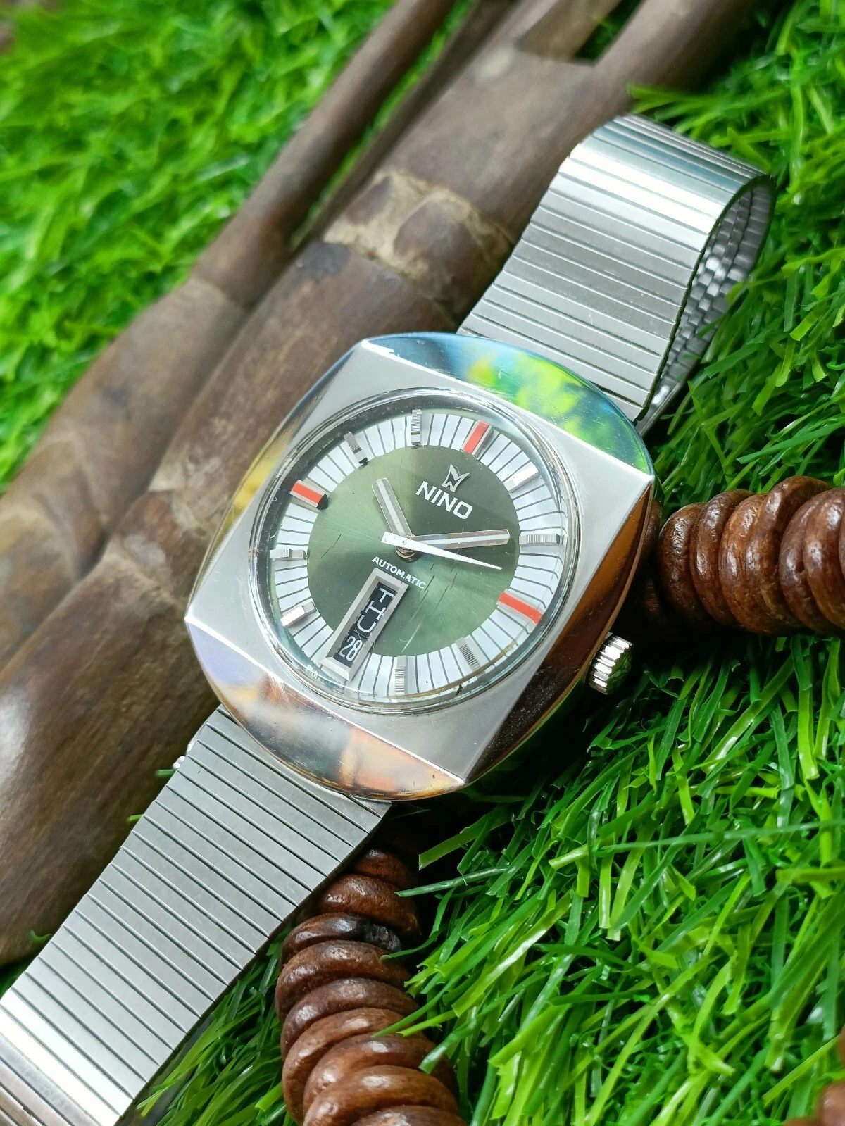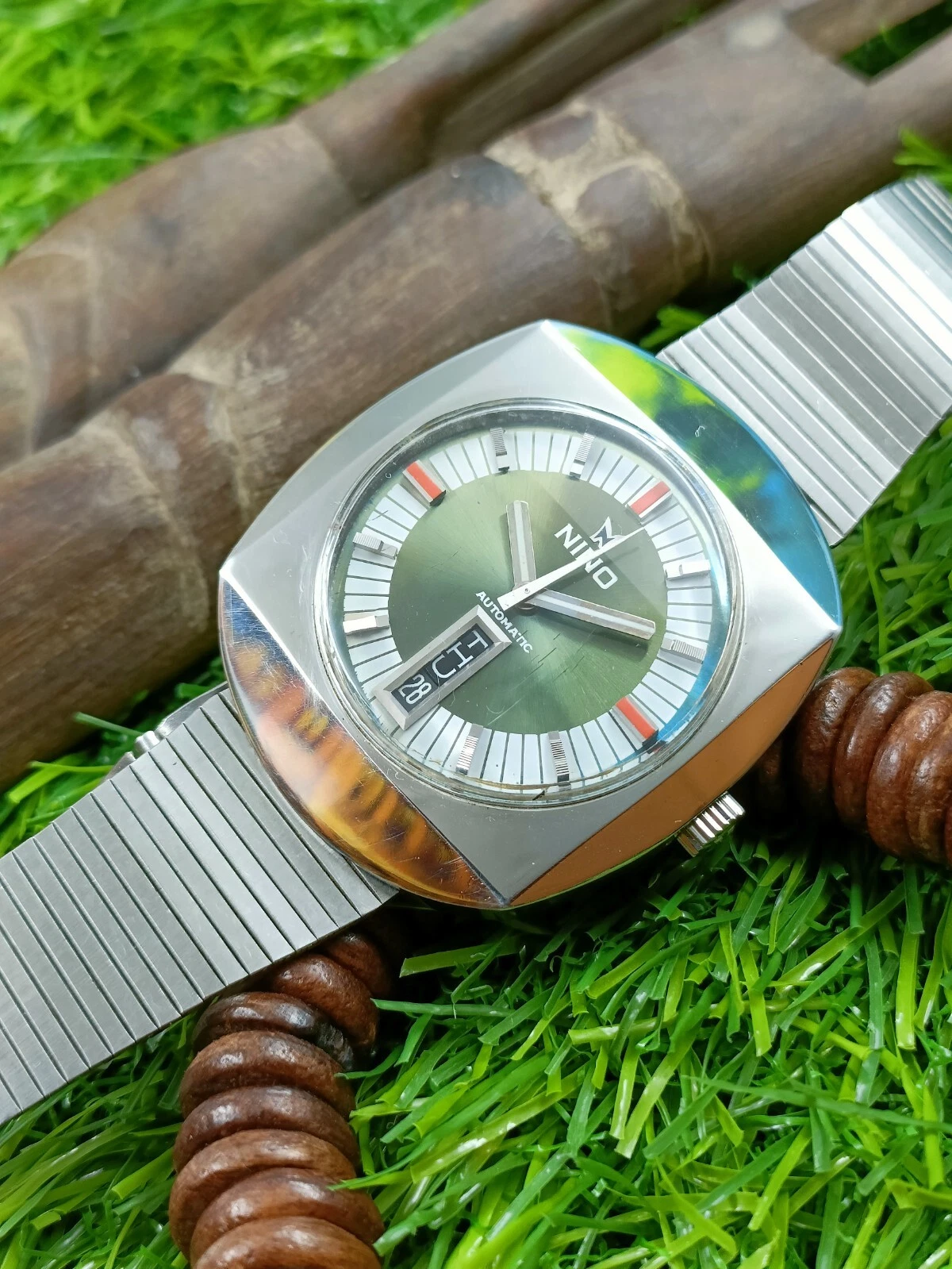 AUTHENTIC NINO AUTOMATIC N-26 SWISS MEN'S MINT GREEN DIAL DAY DATE VINTAGE WATCH
