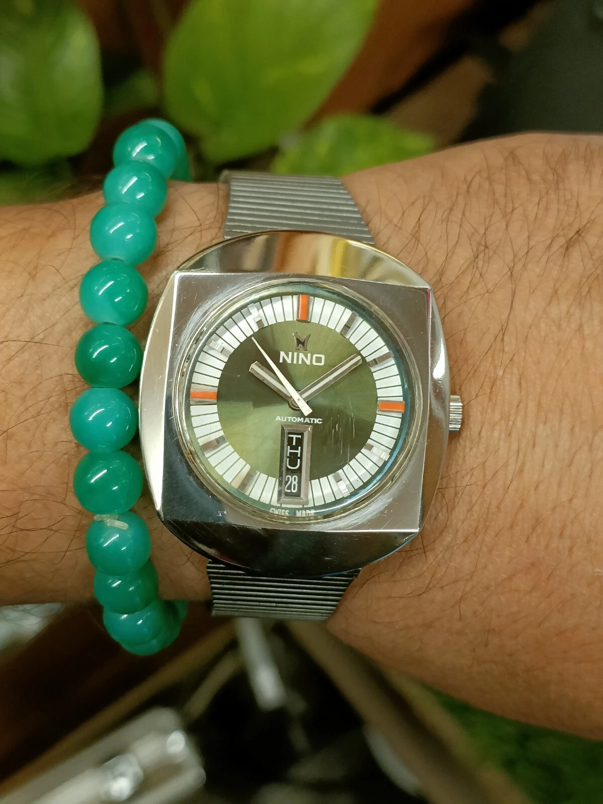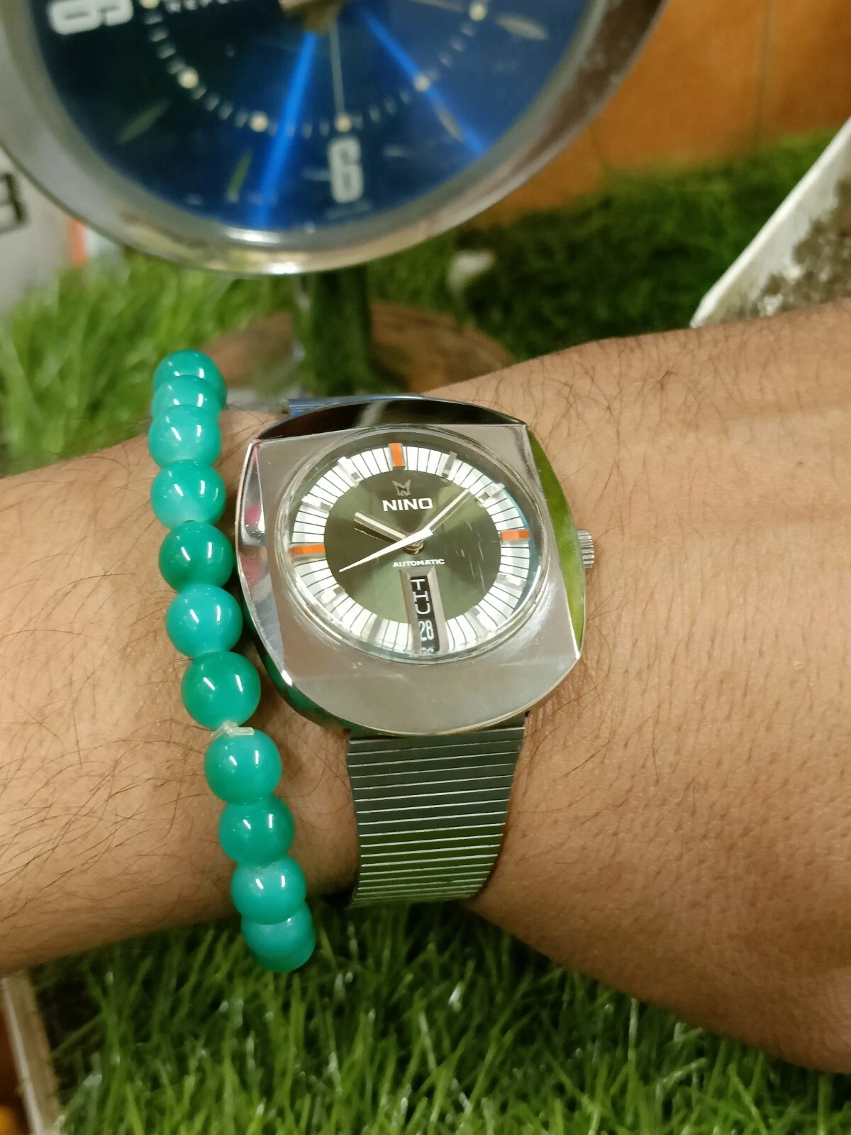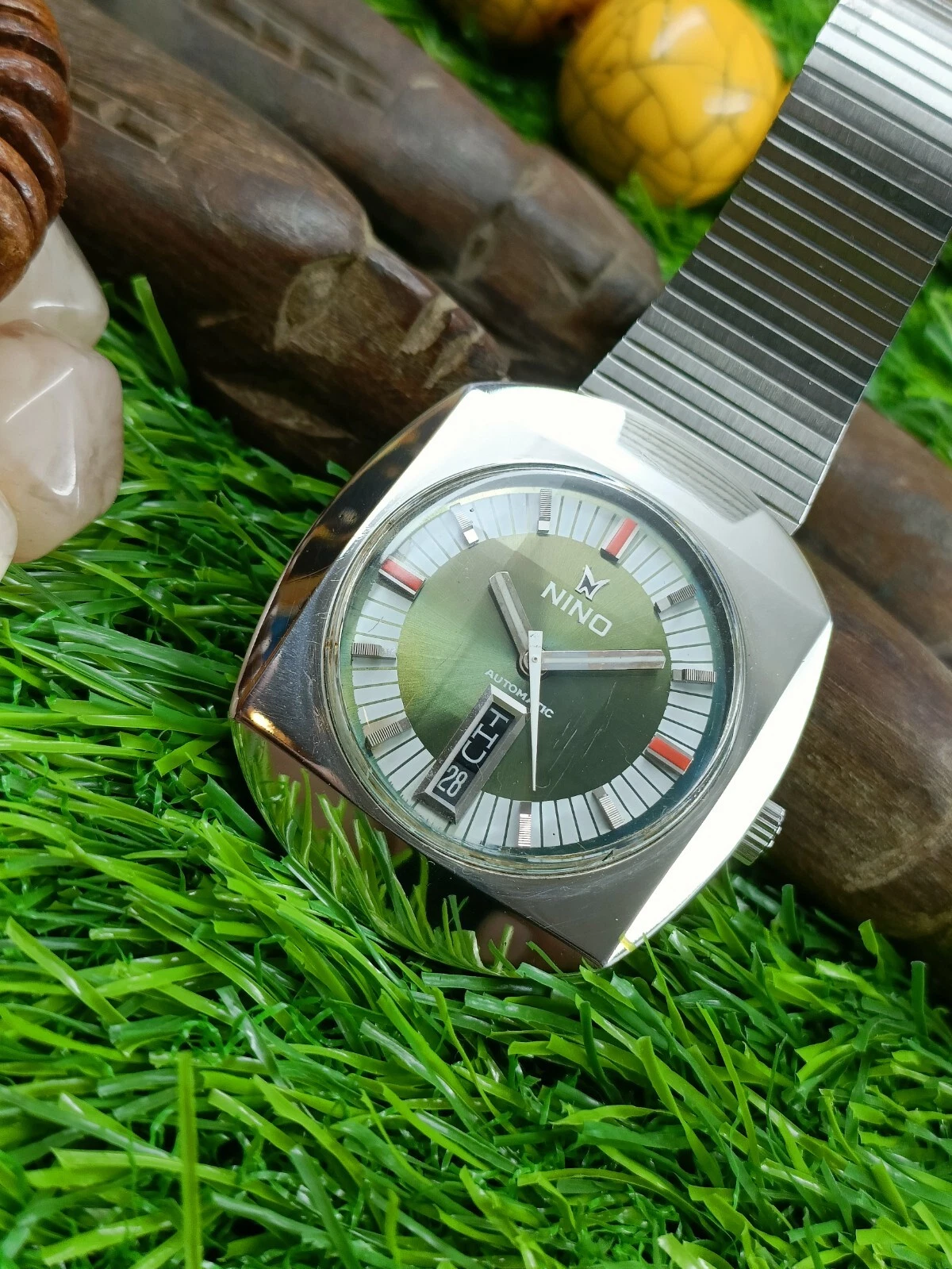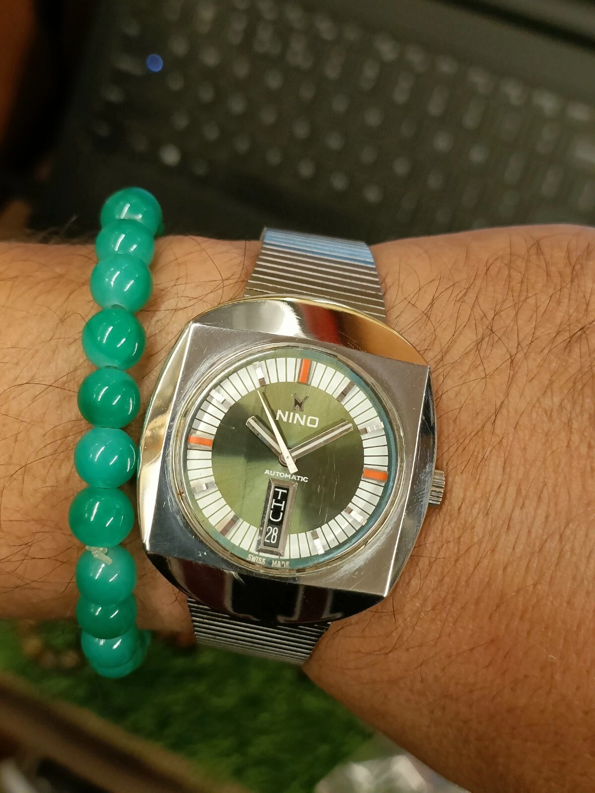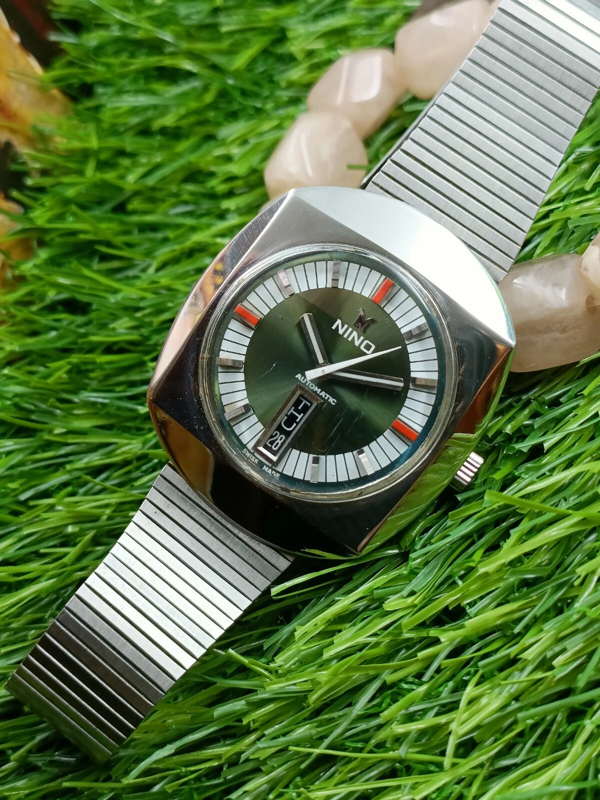 AUTHENTIC NINO AUTOMATIC N-26 SWISS MEN'S MINT GREEN DIAL DAY DATE VINTAGE WATCH