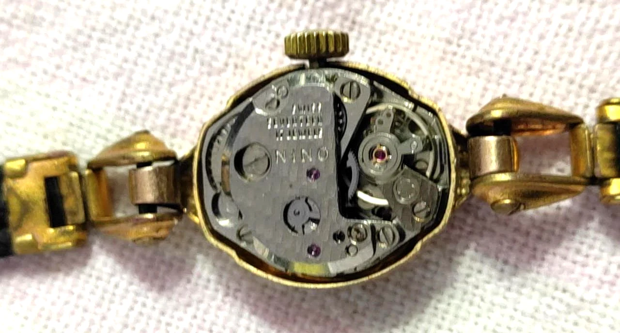 OLD LADIES WINDING  WRIST WATCH ''NINO'' 17 JEWELS SWISS , SS BACK,SUNBURST DIAL