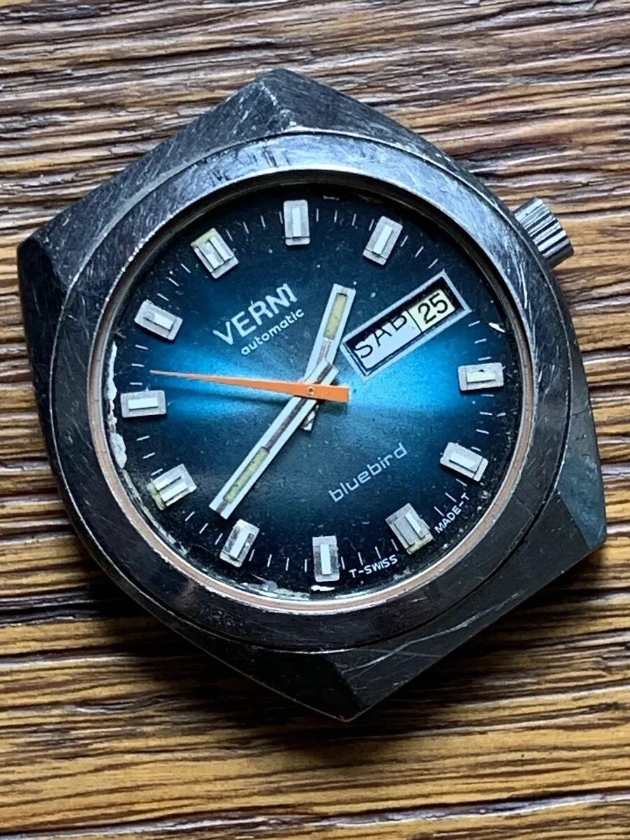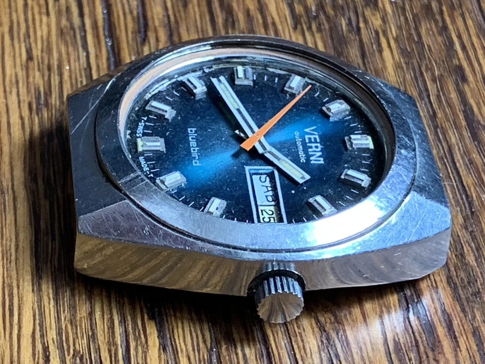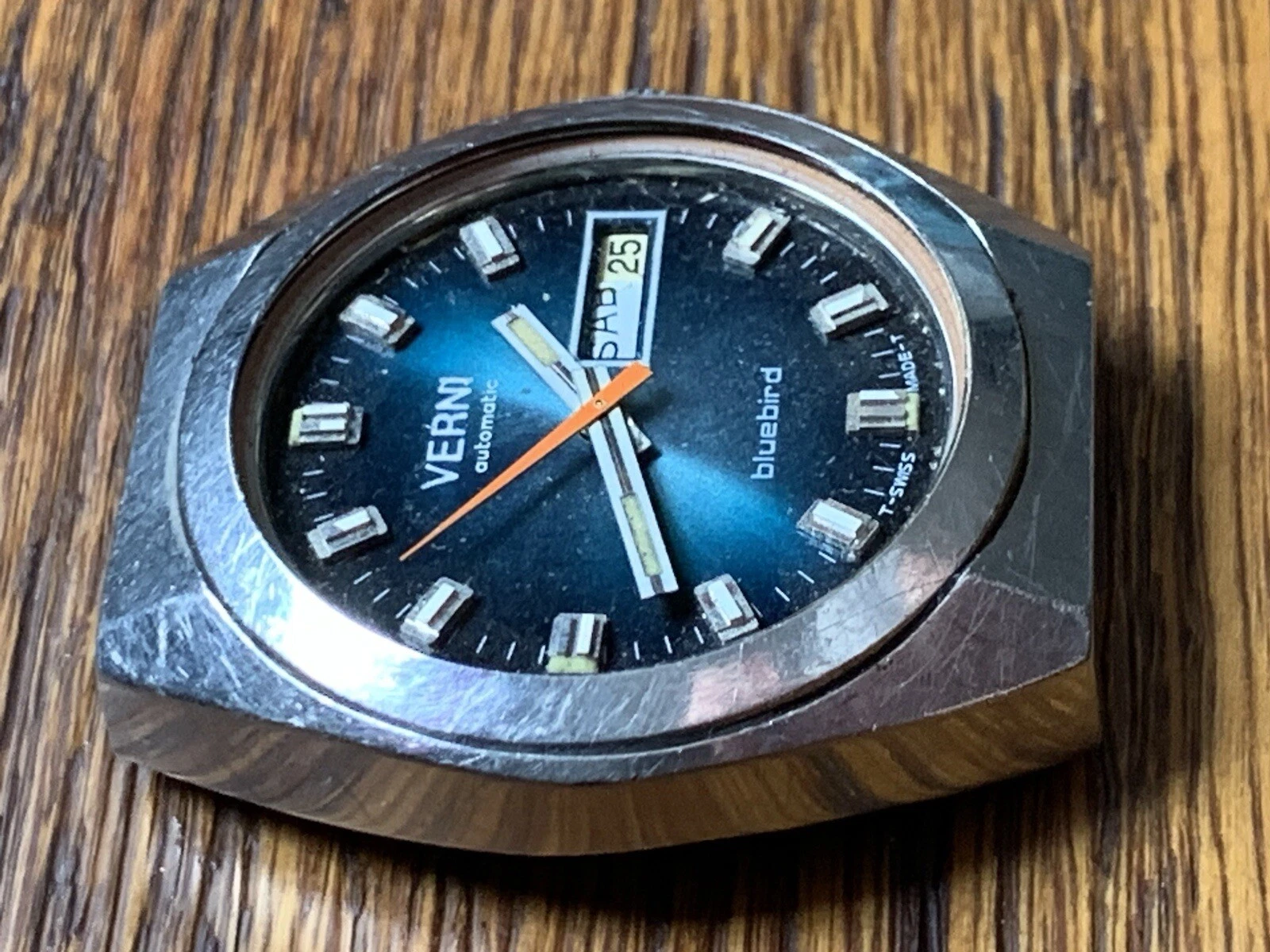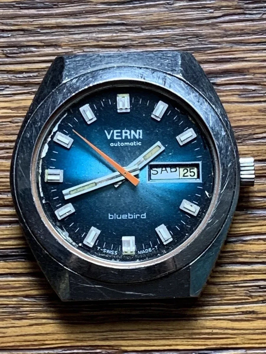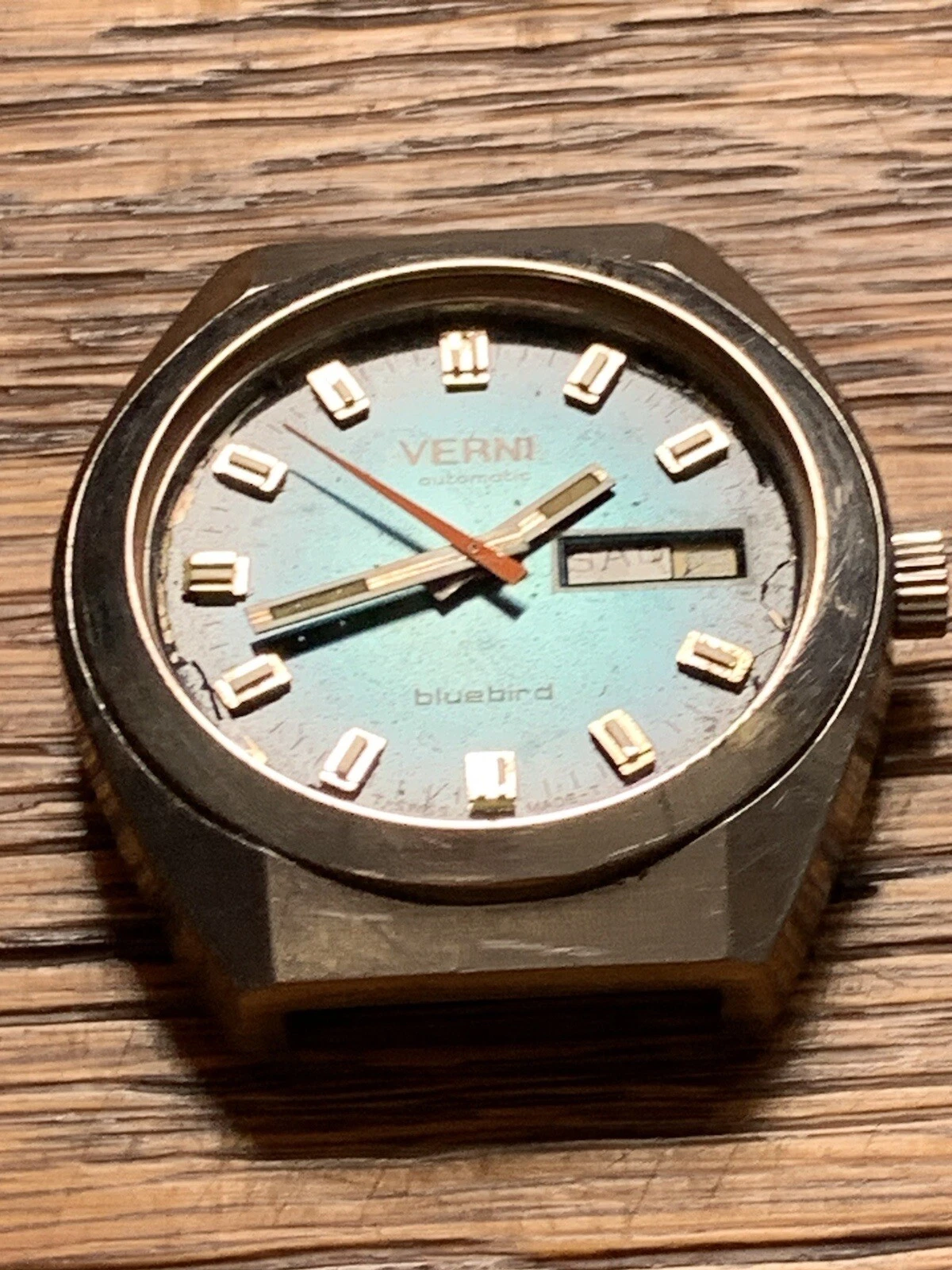 Verni Bluebird Blue Green Orange Hand Gents Mens Automatic Watch Vintage AS 2066