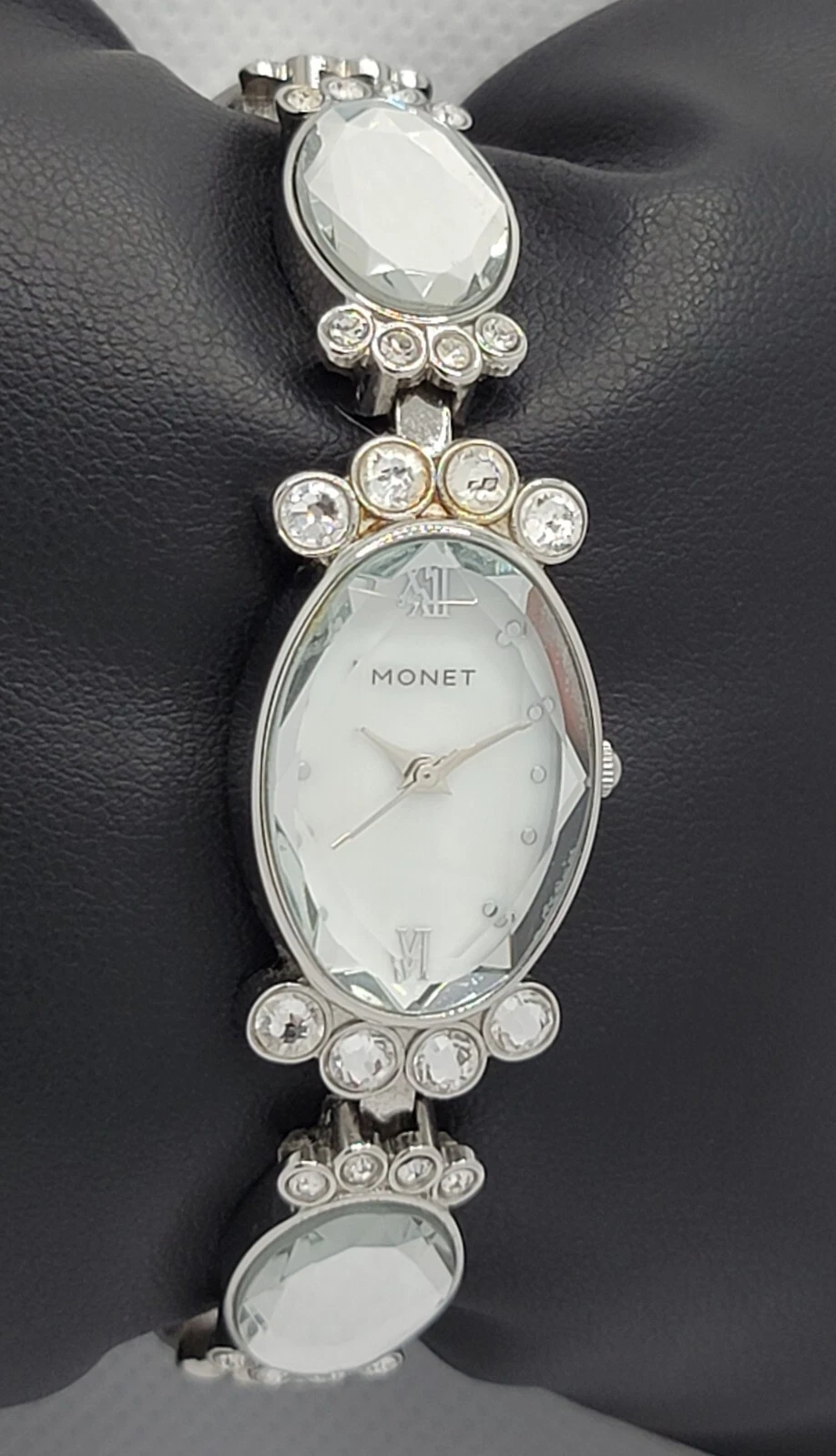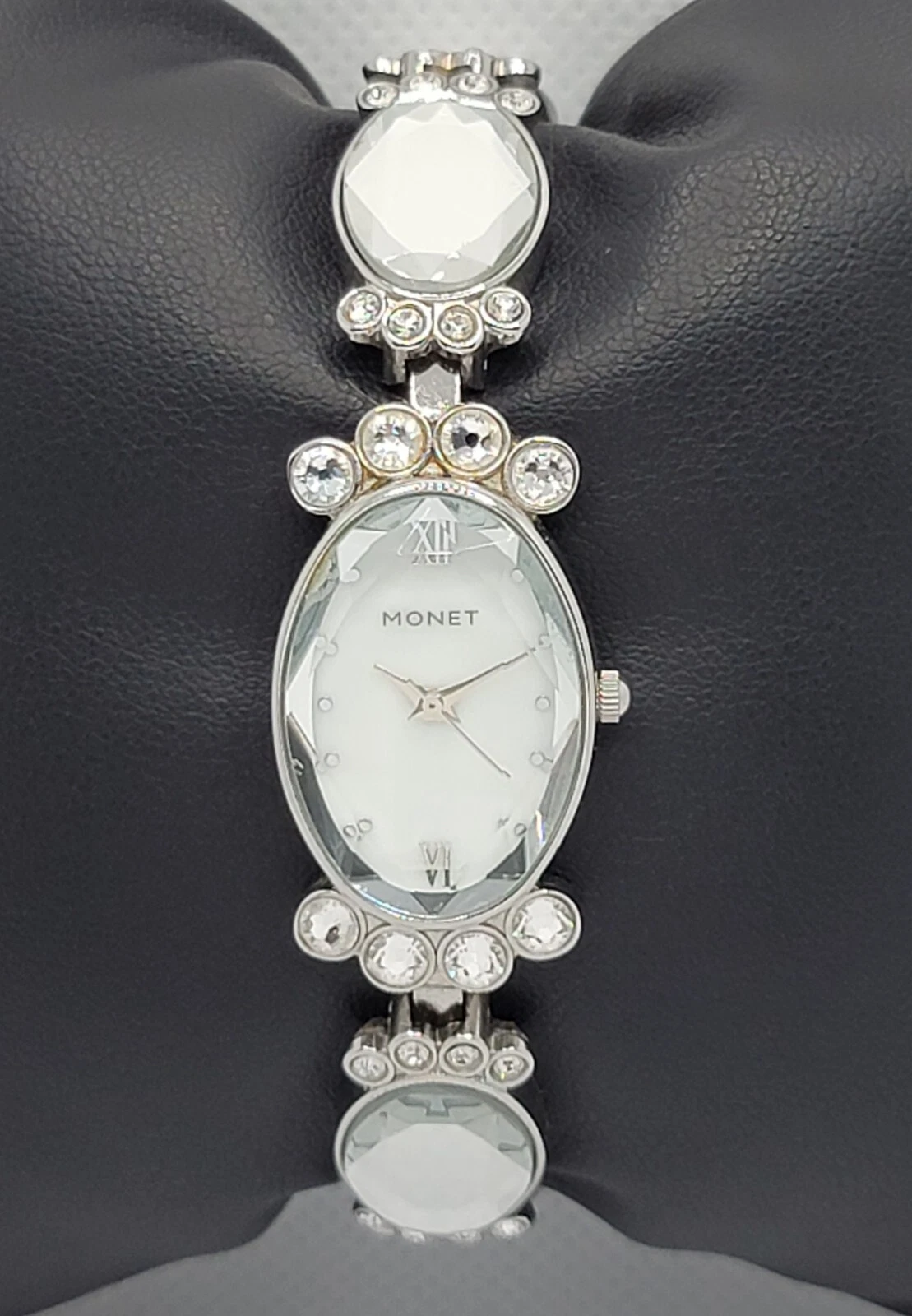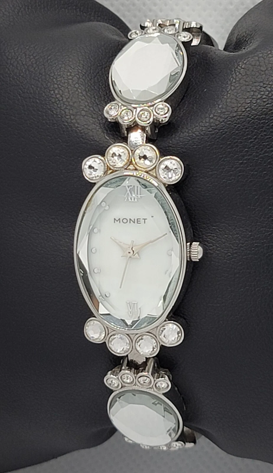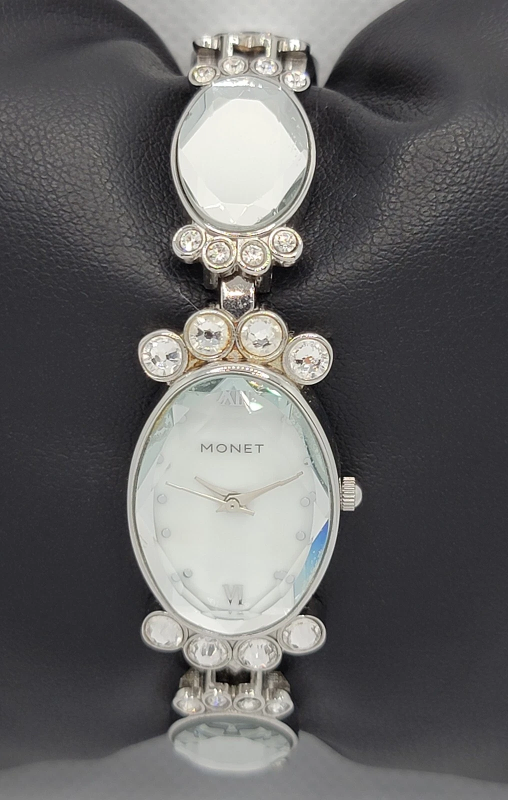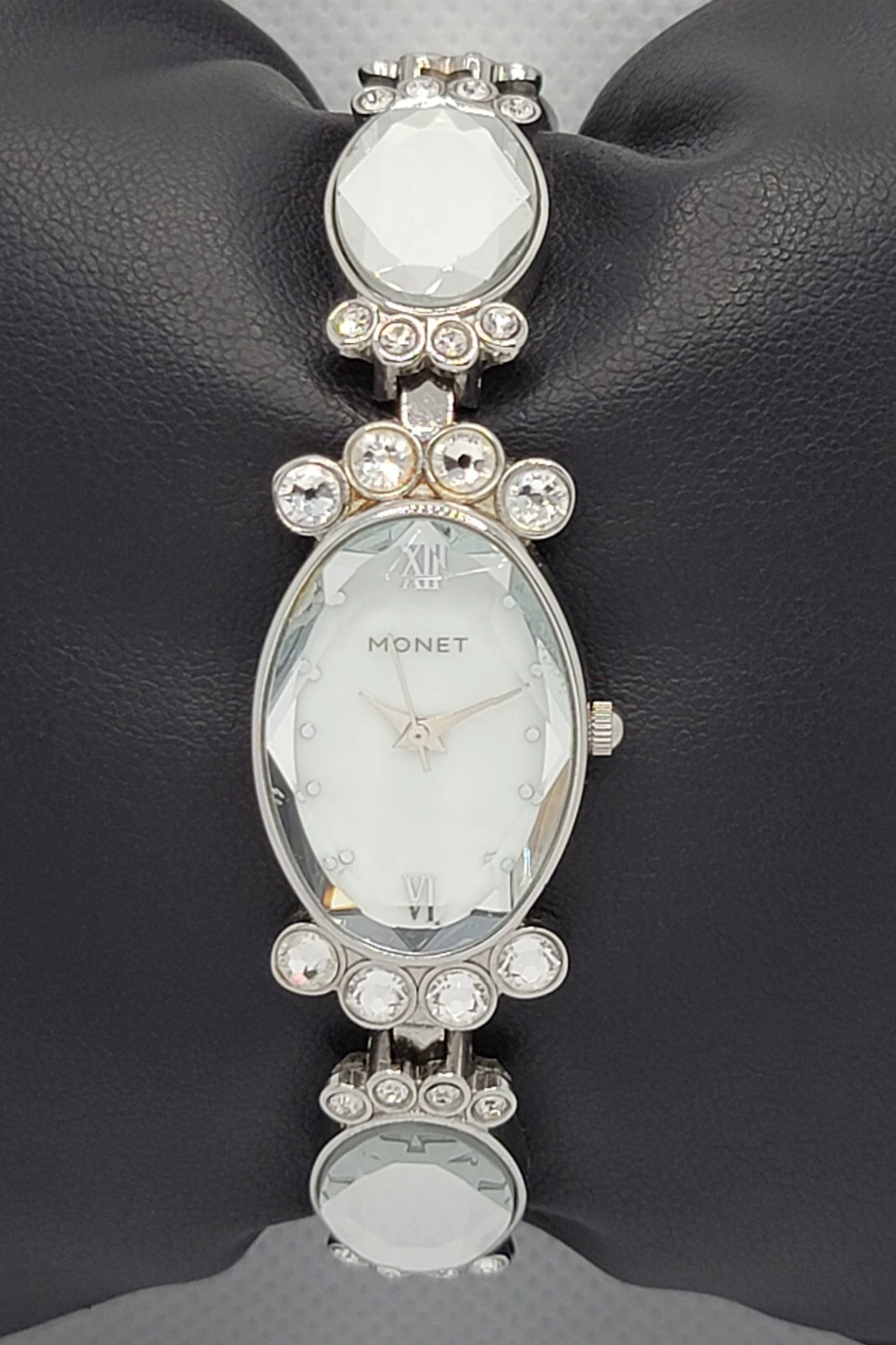 Ladies Monet Dress Stunning Statement Studded Paved Link Bracelet Watch L6