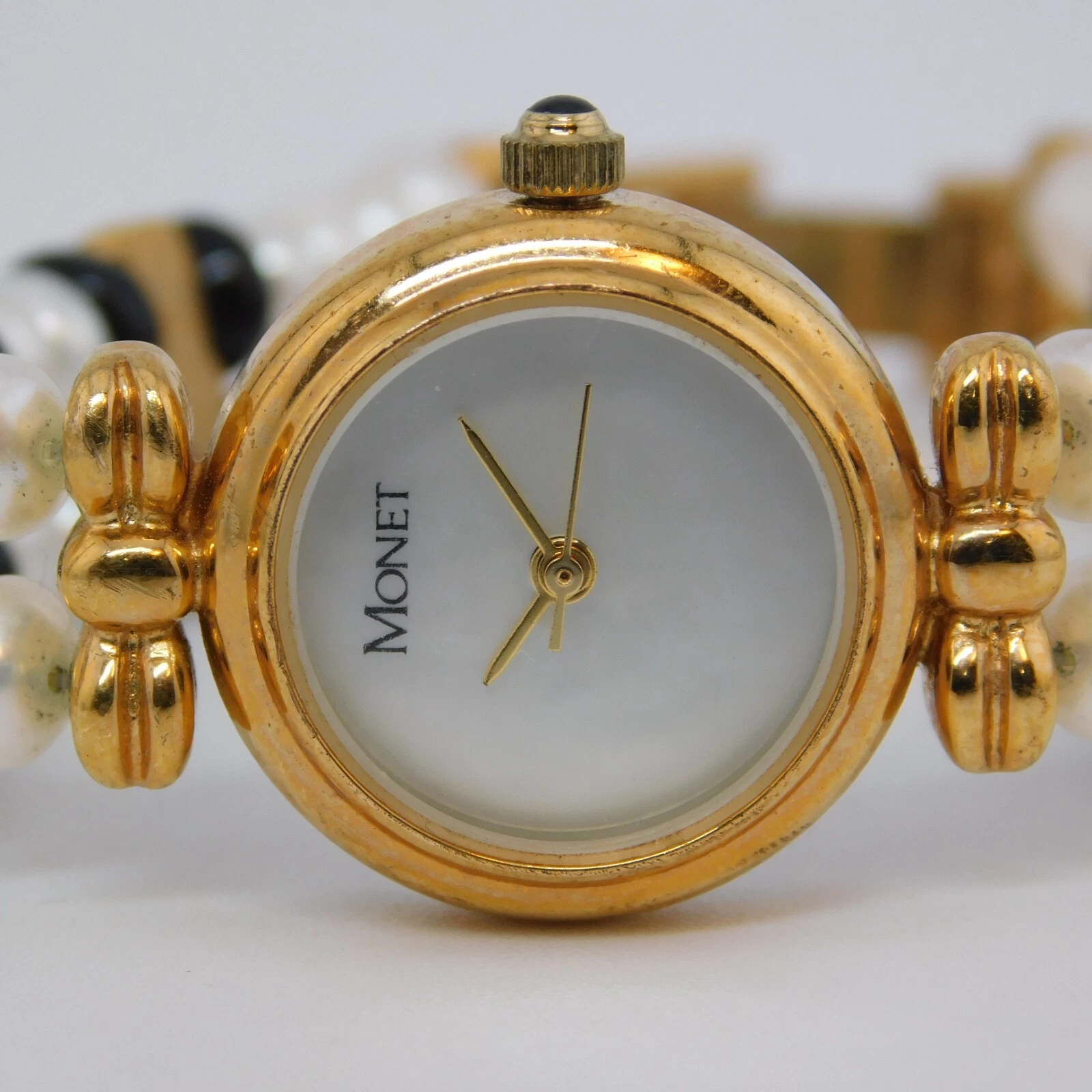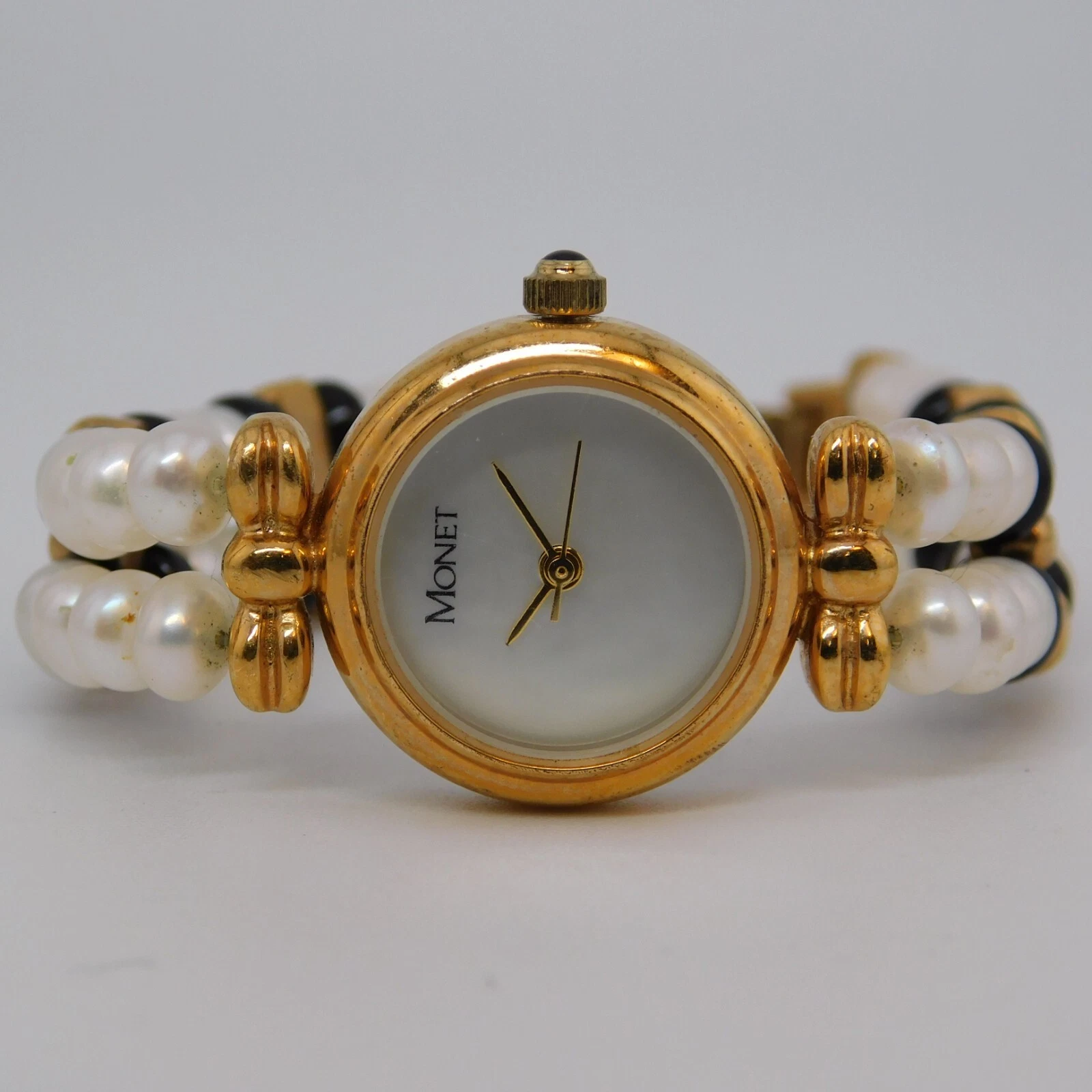Monet Pearl Bracelet Quartz Analog Women's Watch Sz. 6 1/4" New Battery