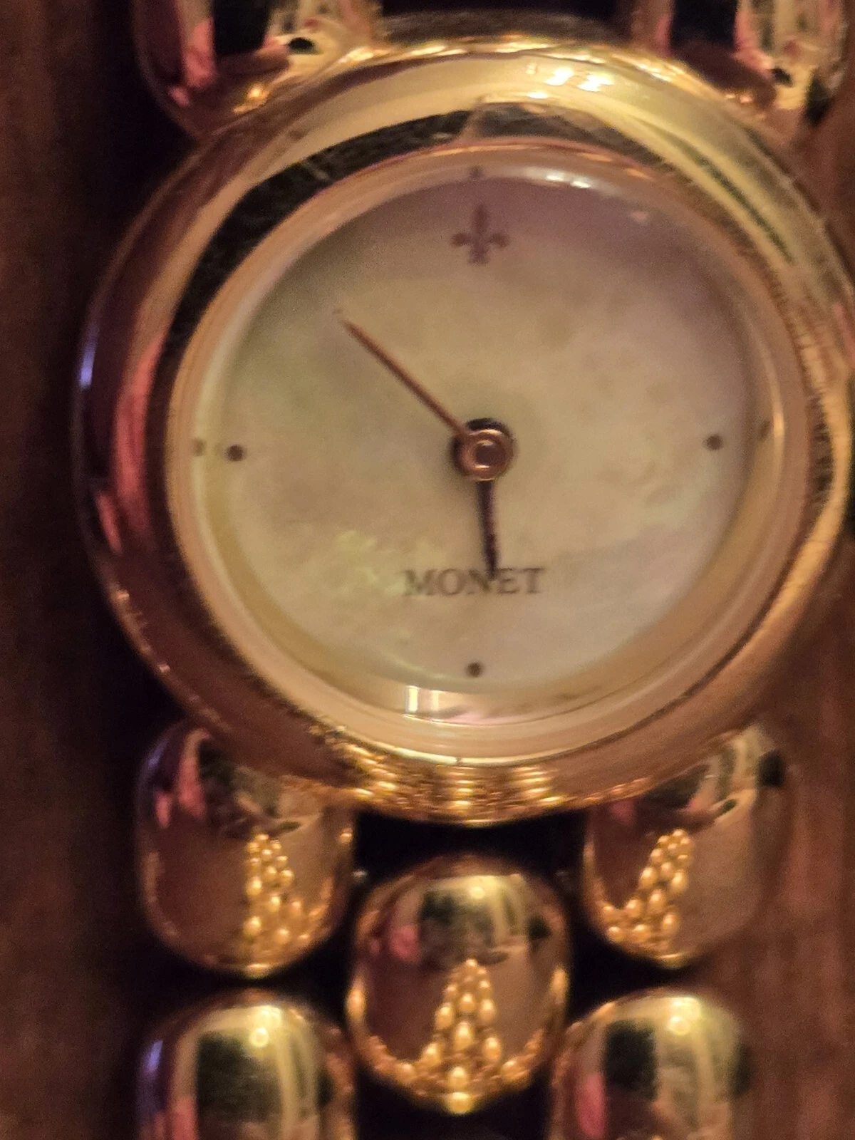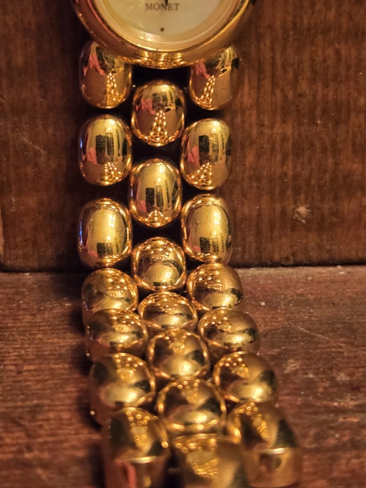 Vintage MONET Bracelet Watch Gold Tone Link Chain