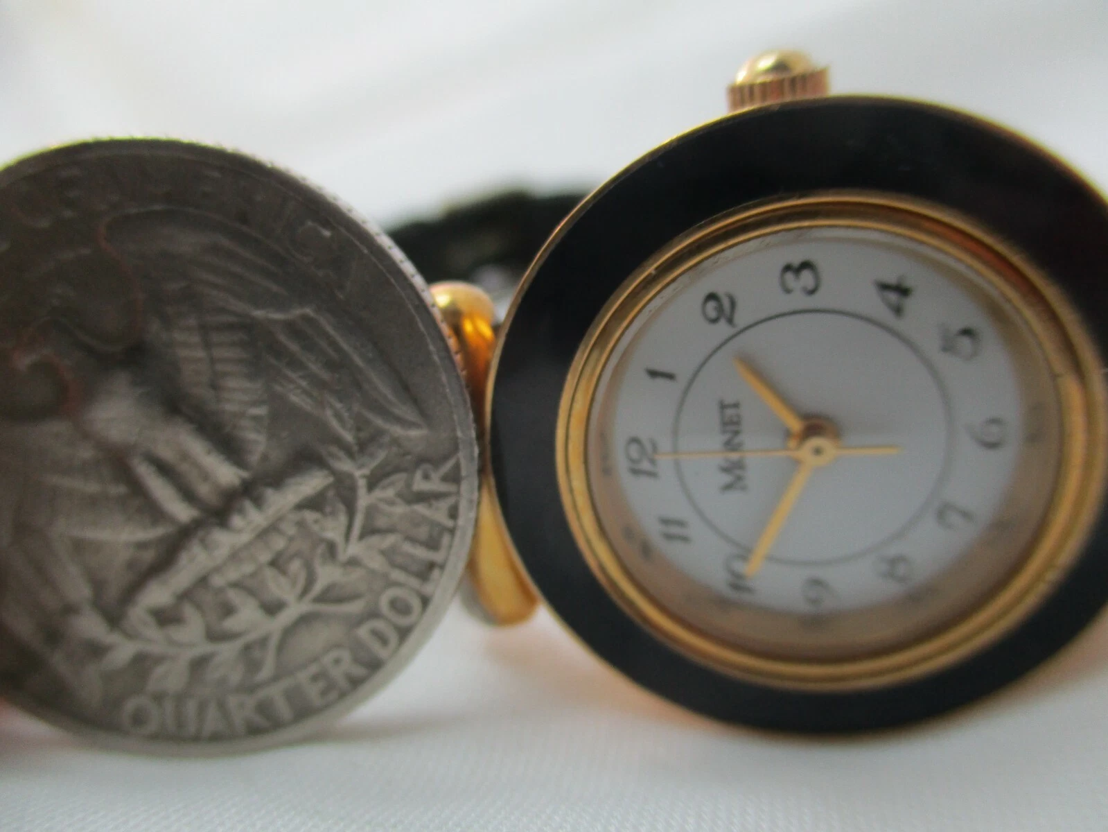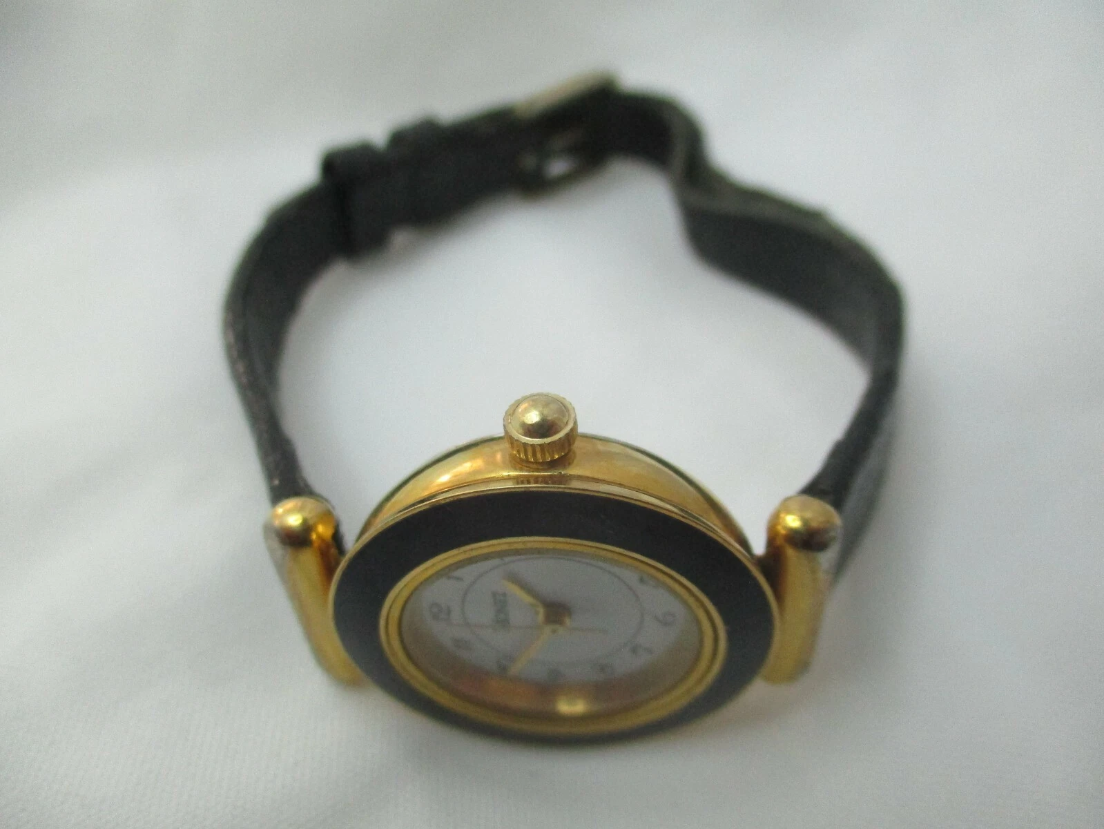 Monet Women's Analog Watch Water Black Leather Buckle Band Vintage