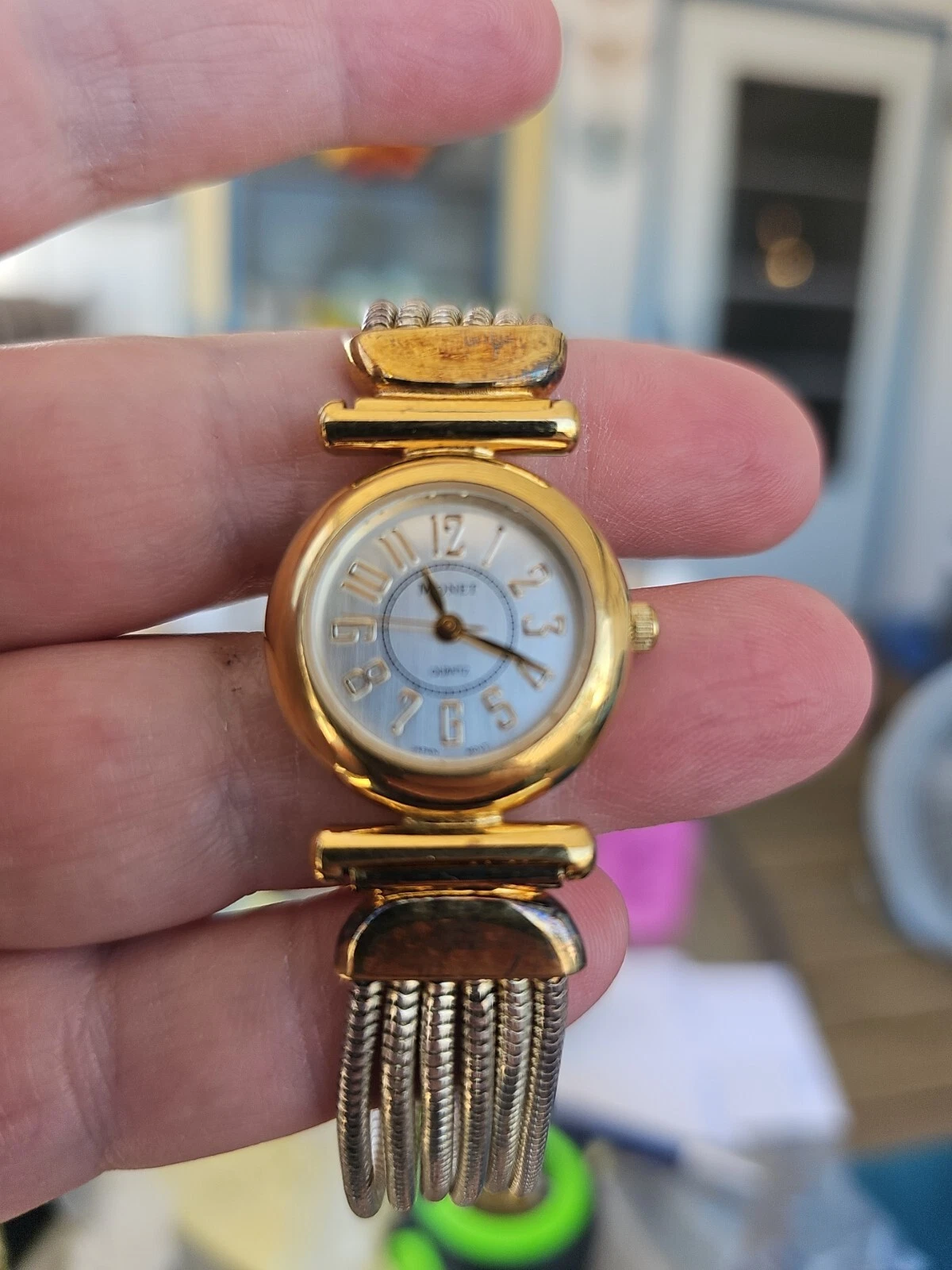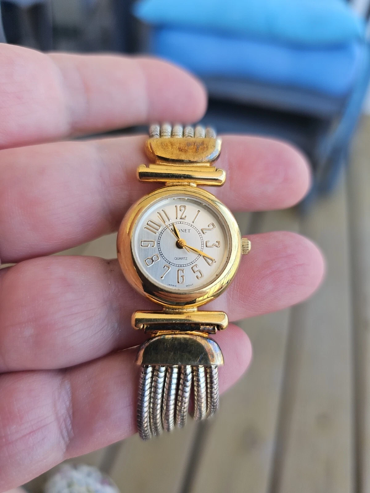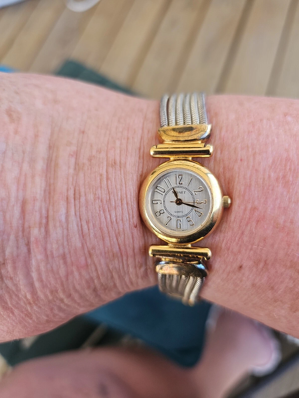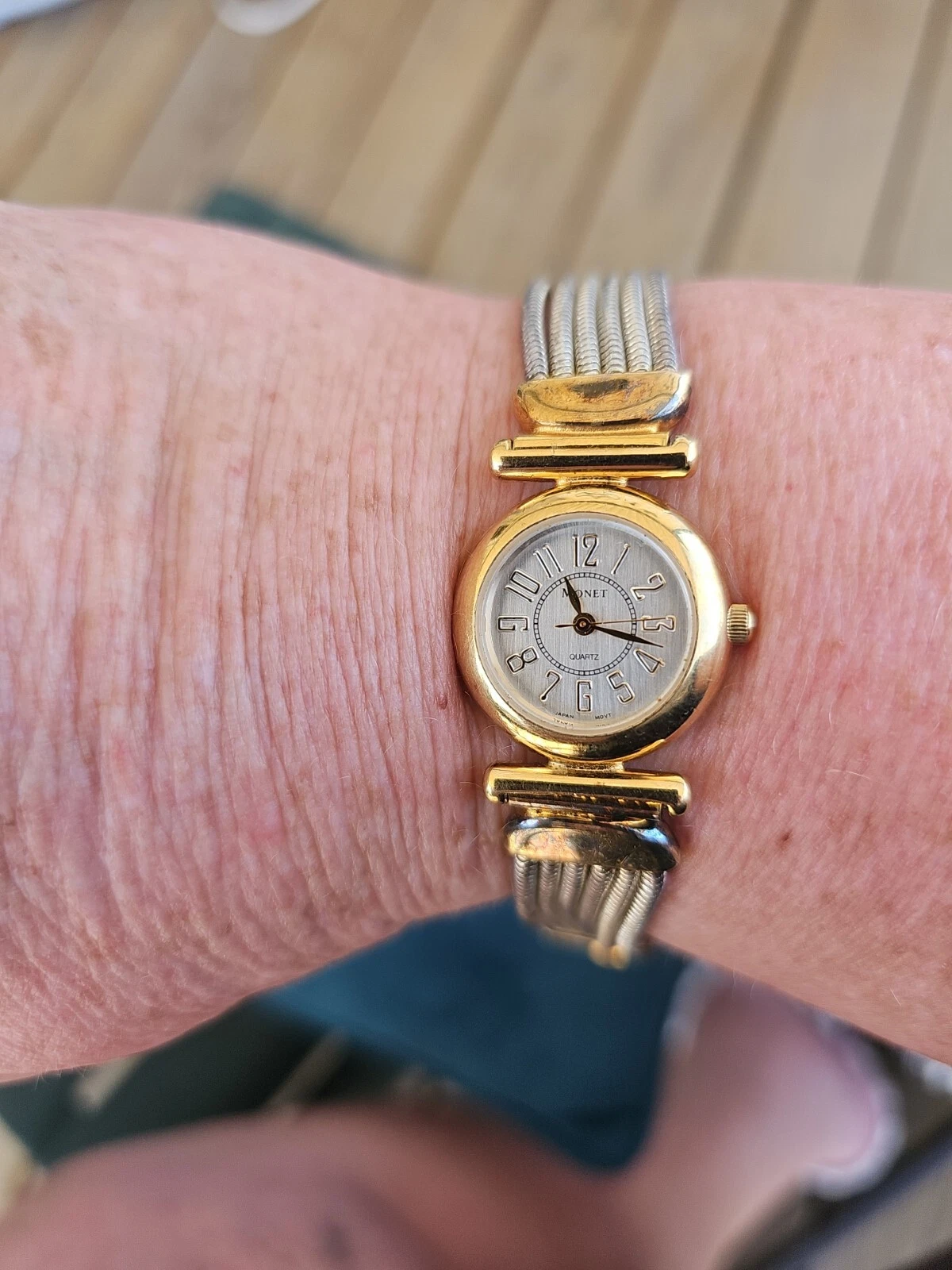 Monet Womens Watch 7" Gold Tone Dressy Watch
