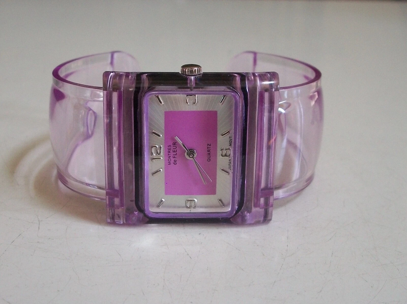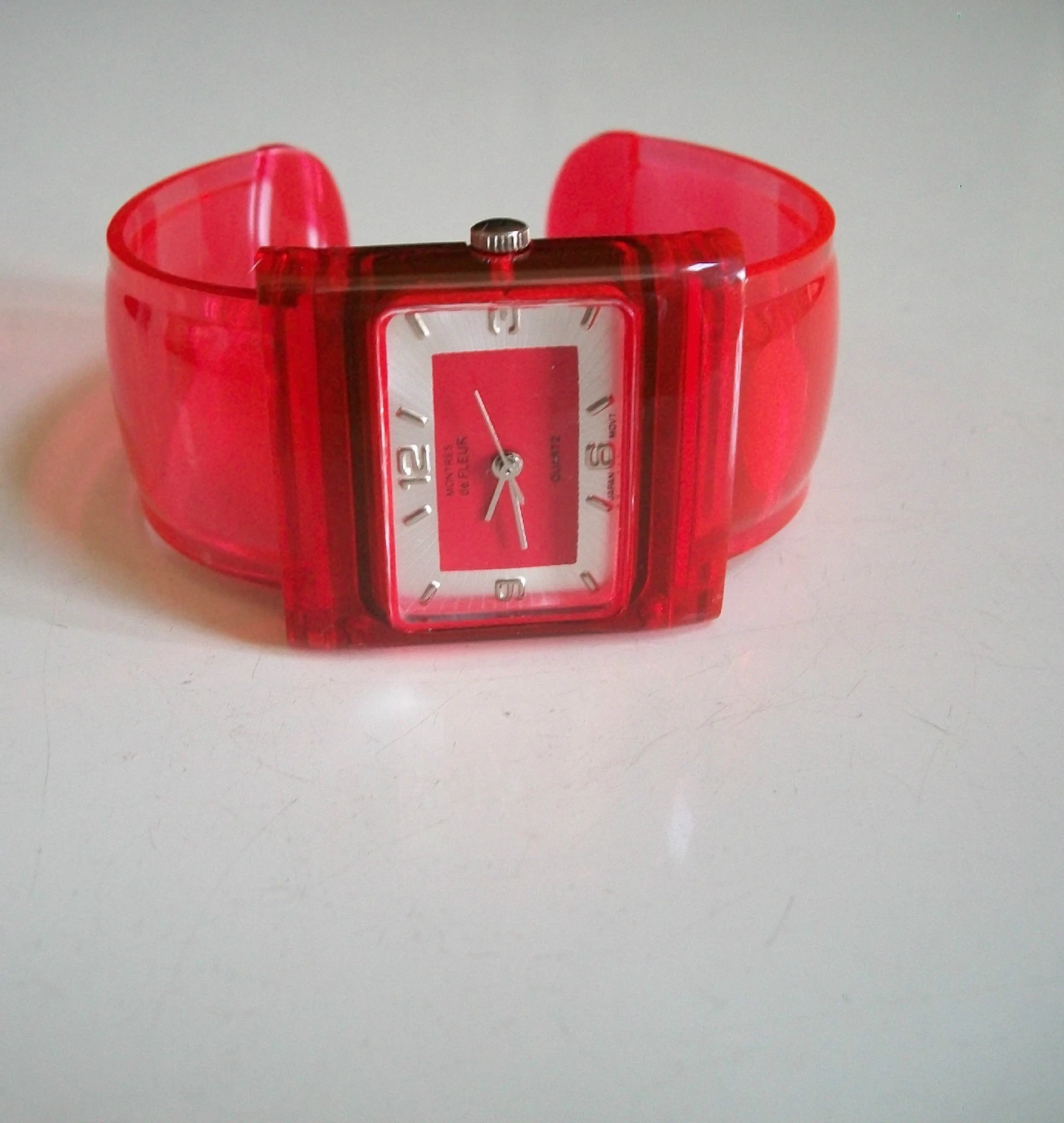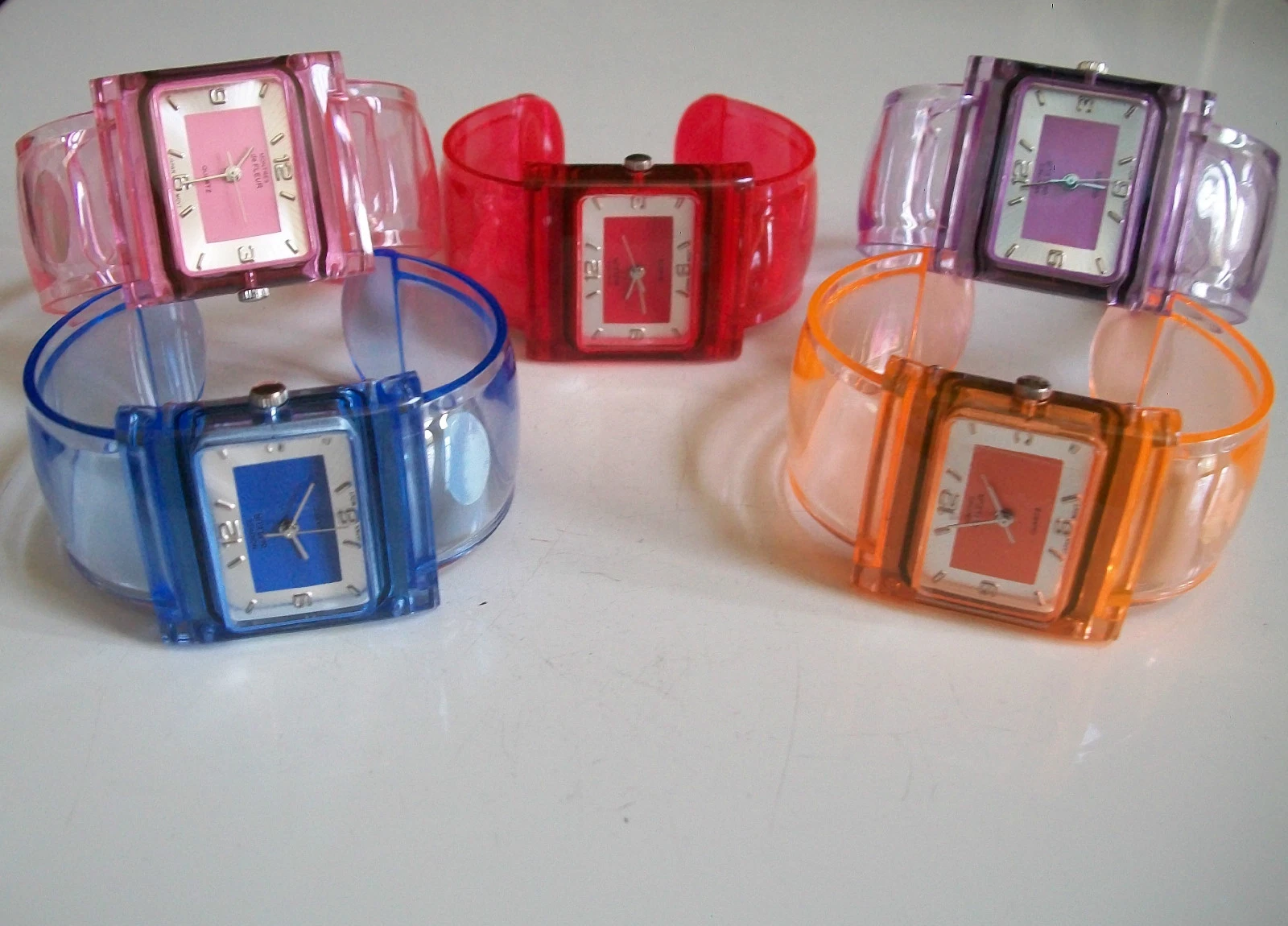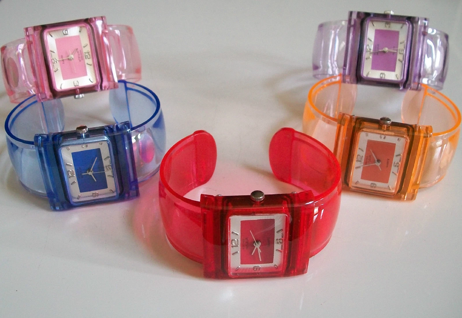 Blue, Purple, Pink, Orange, Red Plastic Cuff Bangle Casual Fashion Women's Watch