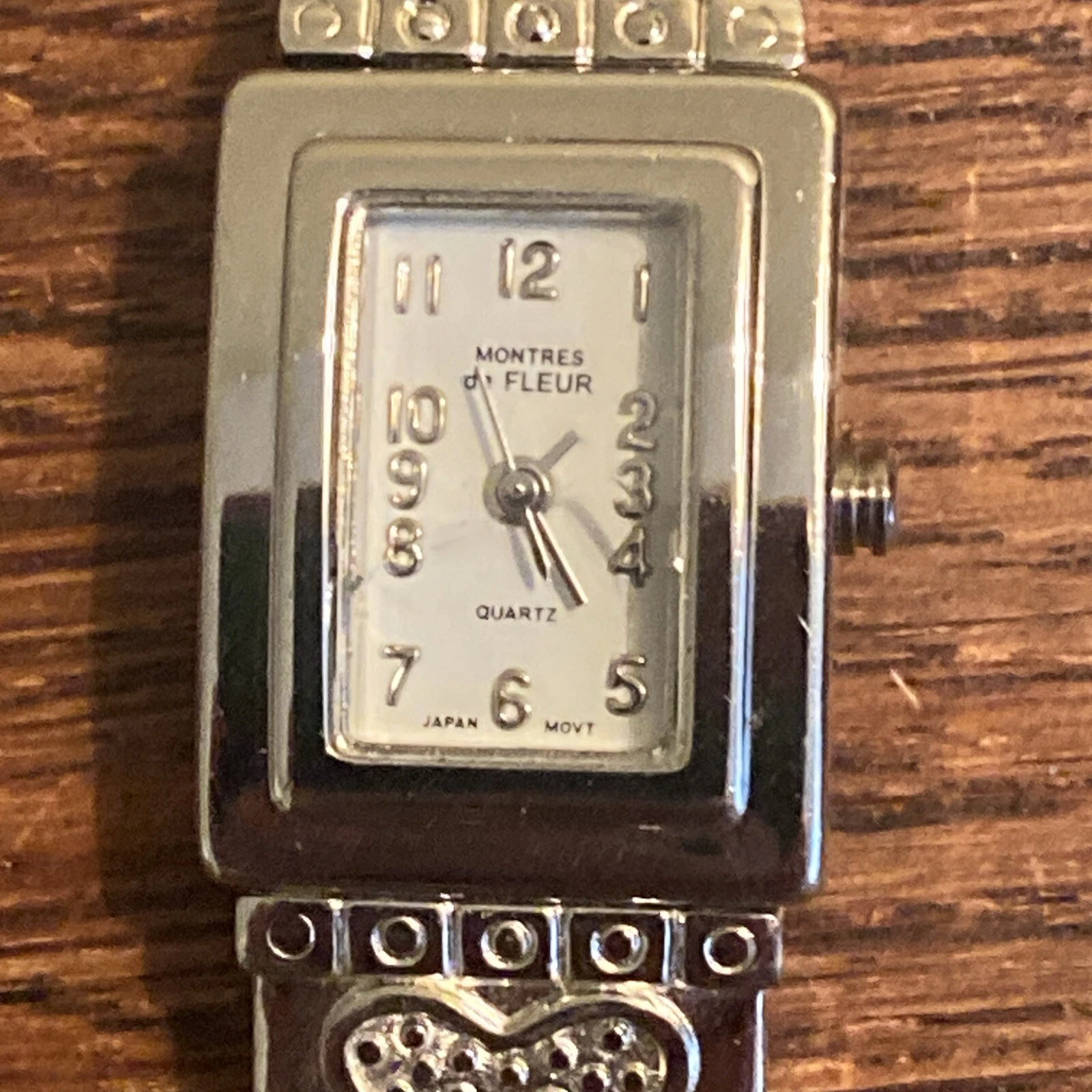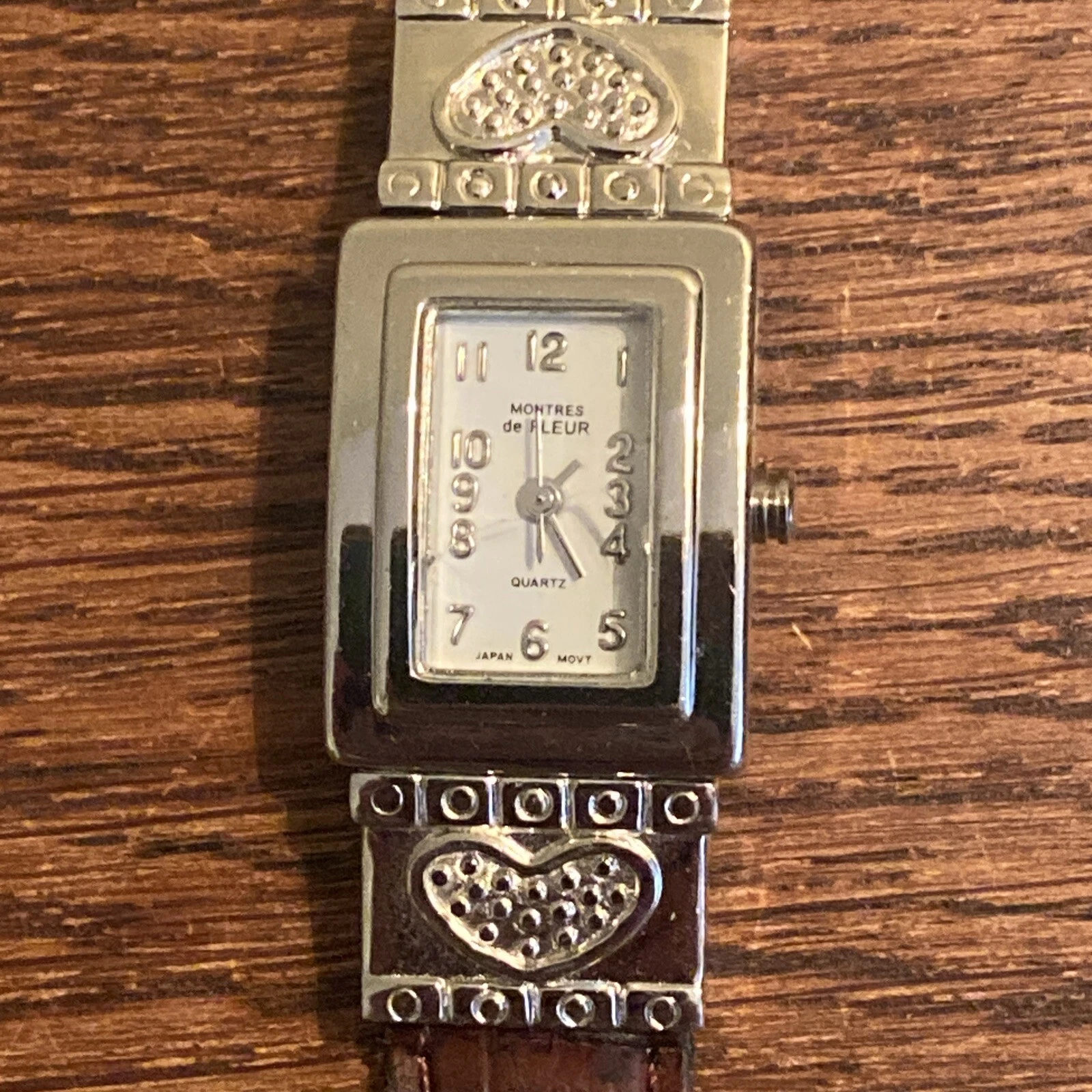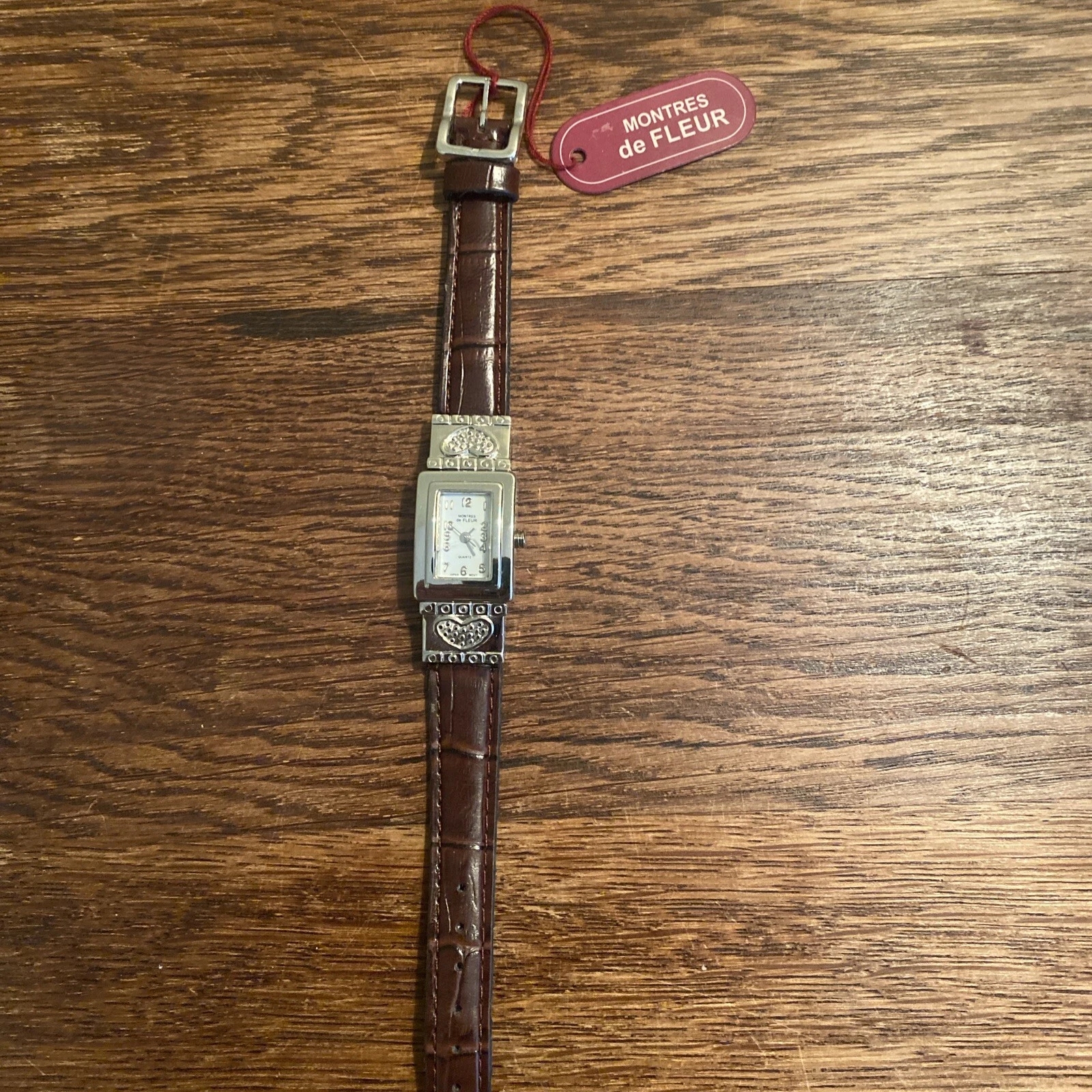 Montres De Fleur Watch Silver Heart Watch Brown Leather Band New