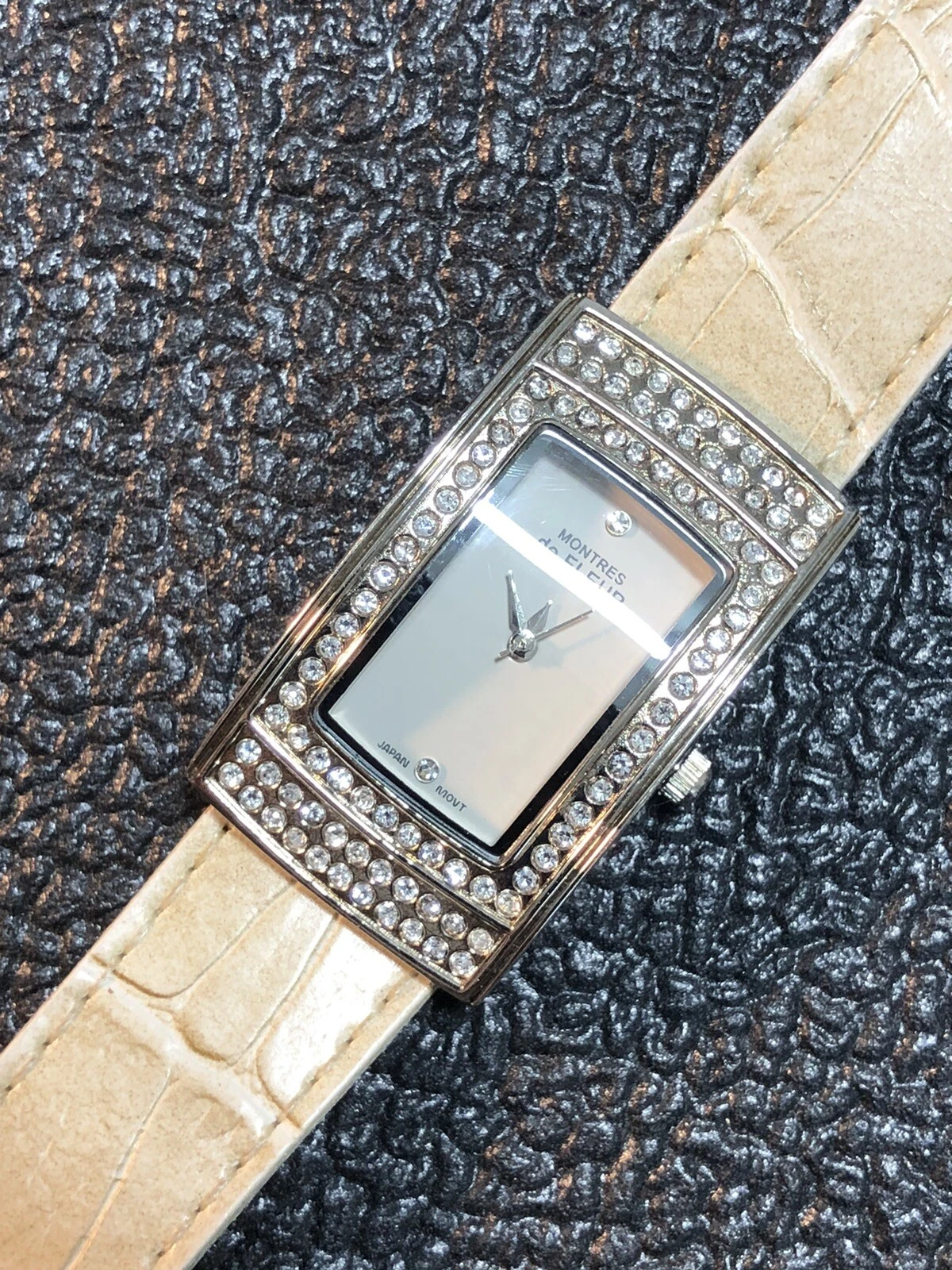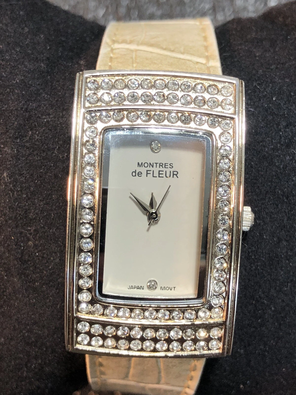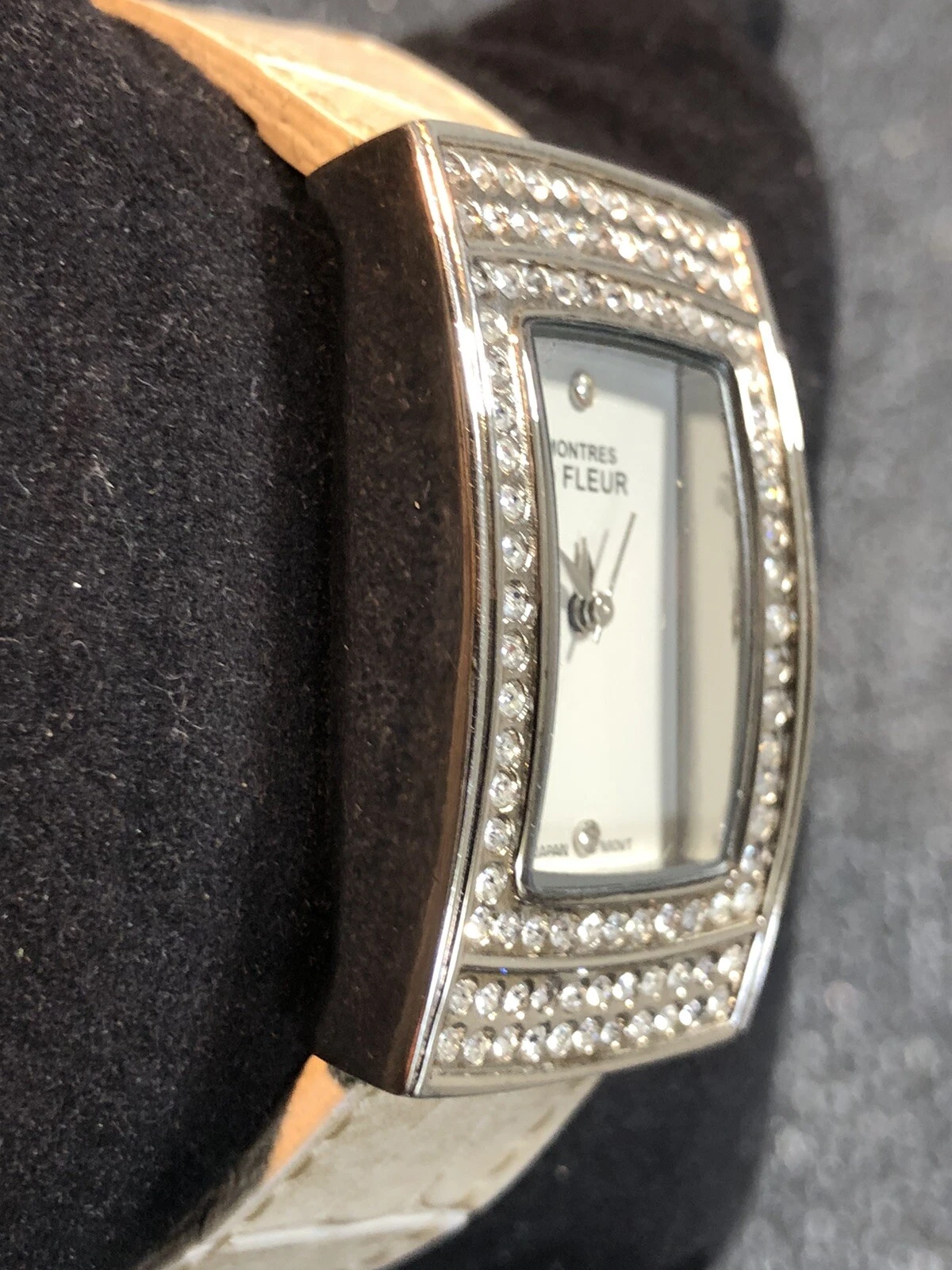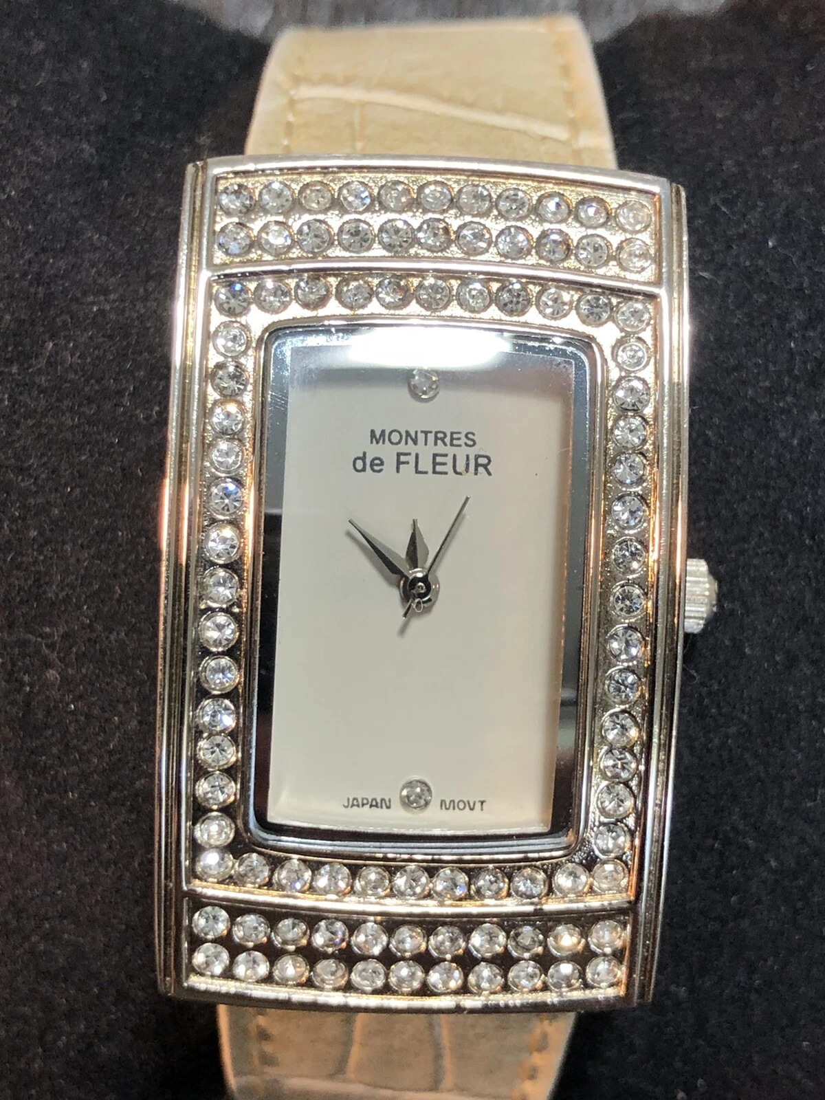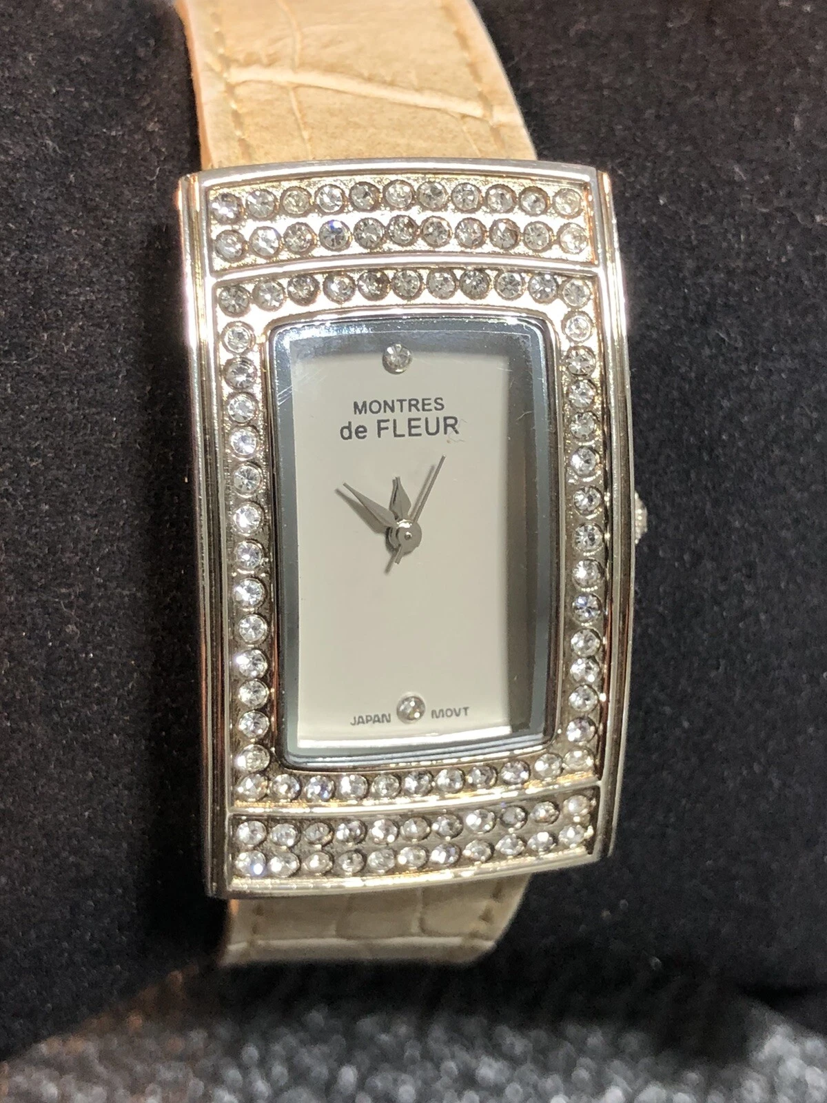 Vintage Ladies Watch Silver Tone Gemmed Bezel Montres de FLEUR New Battery